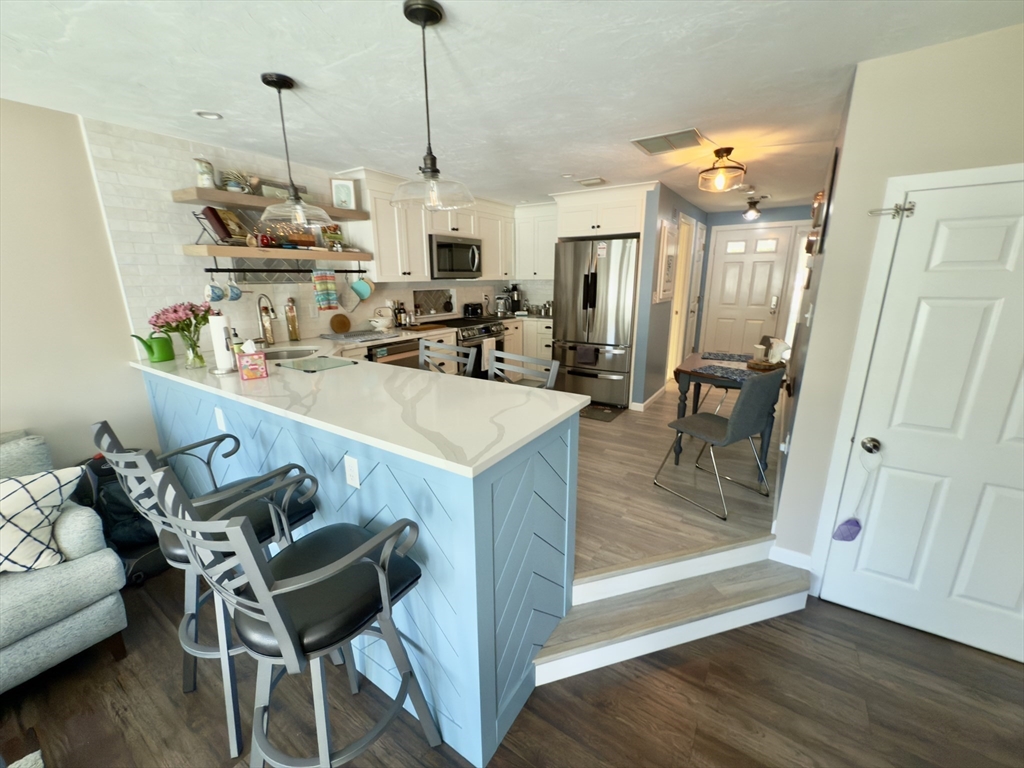 Alternative to single family maintenance. 3 LEVEL TOWNHOUSE! Renovated BRIGHT & SUNNY unit overlooks the 13th hole @ White Cliffs Country Club. Open floor plan features: Living Room, Spacious upgraded eat-in Kitchen/Dining Area with wood floors & fireplace that opens to private deck. 2nd floor has 2 Bedrooms & full bath. Lower level walk-out includes: Family Room (can be used as 3rd Bedroom), full bath, laundry and patio area.. Enjoy all of the amenities of Resort Living in this Private gated Oceanfront Community. Clubhouse overlooking Cape Cod Bay features casual & fine dining, indoor mineral water pool & hot tub, exercise facility, steam rooms & more. Play unlimited golf on this Gary Player 18 hole course or enjoy tennis on the Har-Tru courts. Take the Tram to the beach & relax by the shore or take a stroll on the sandy shoreline. THIS IS THE PLACE TO BE! Only 1 mile to Route 3. Enjoy Cape Cod living without going over the bridge. WHAT ARE YOU WAITING FOR?