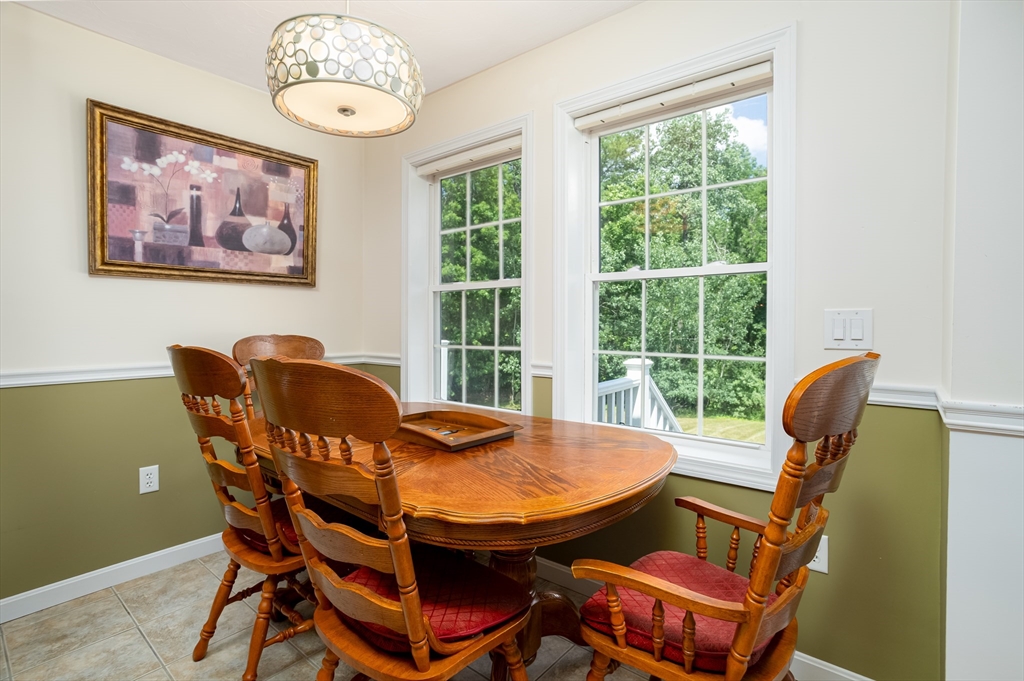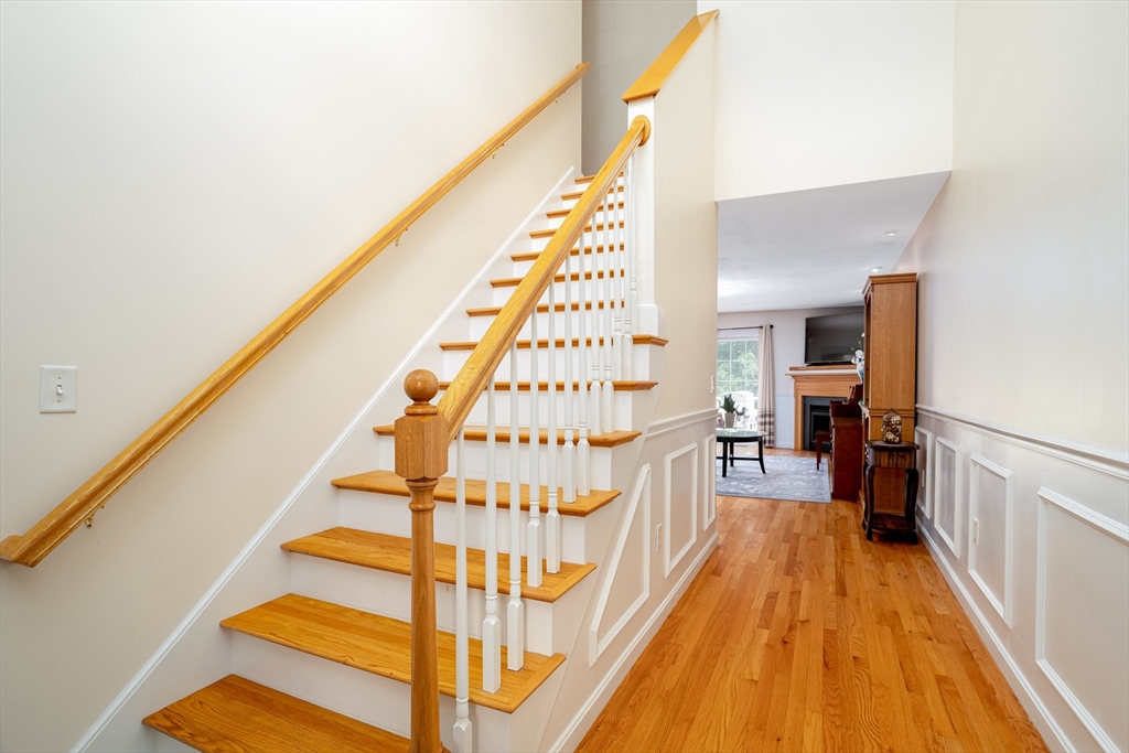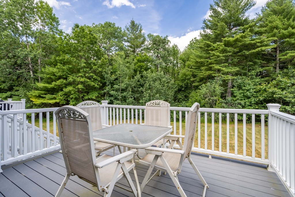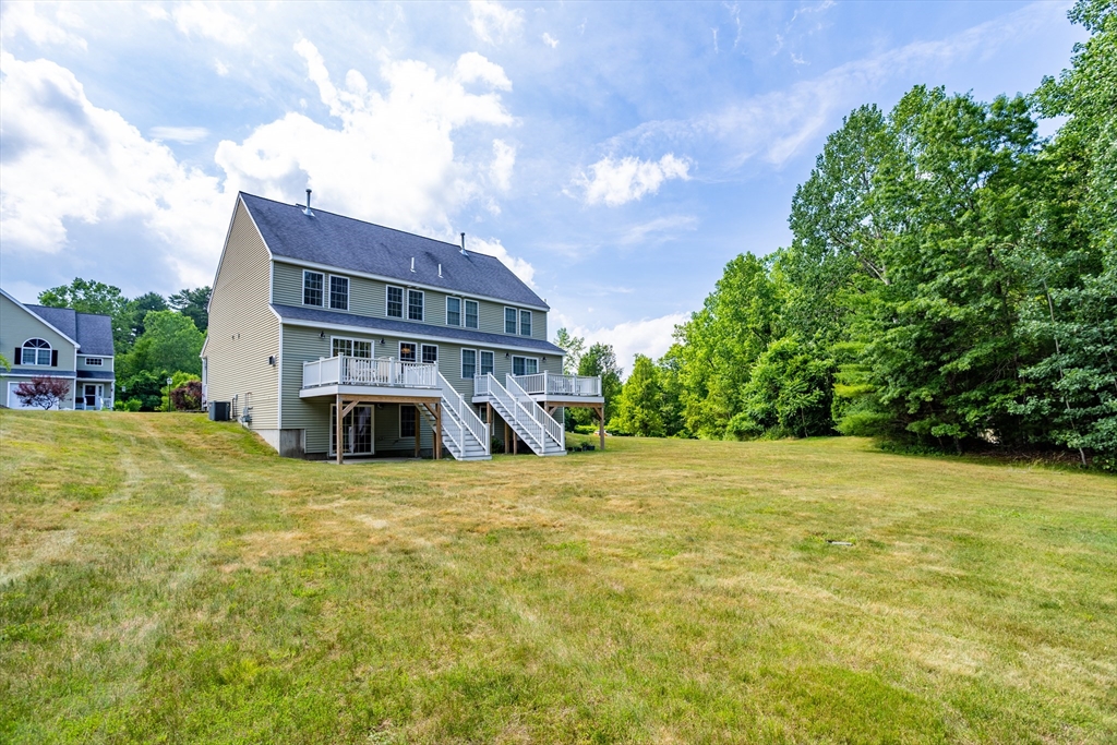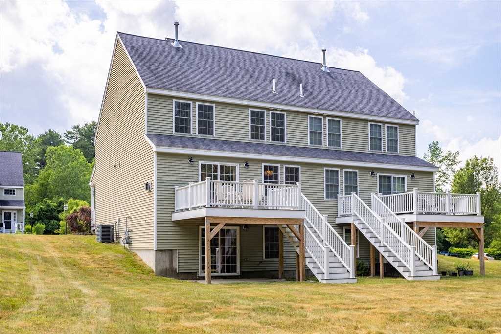 Immaculate 2 bed, 2.5 bath end unit at Whitney Estates in Berlin MA on the Northborough line. Well-designed kitchen with brand new gas stove, cherry cabinets, granite counters & dining area overlooking the expansive backyard skirted by mature woodlands. Living room features shiny hardwood floors, recessed lighting & corner gas fireplace. Slider leads to private, high-rise composite deck only a year young. Upstairs the primary bedroom boasts 2 walk-in closets, one of them naturally lit with 2 full-size windows. En-suite bathroom with double vanity & oversized tub/shower. 2nd bedroom features vaulted ceiling & double closets. Laundry conveniently located on the second floor next to the 2nd full bathroom. Unfinished walk-out basement provides ample storage, extra space & potential for buildouts tailored to your own desire! Attached one car garage & central air. Pet friendly HOA. Great commuter location right off Rt 290, 495 & 62, in conjunction with Northborough, Hudson & Marlborough!