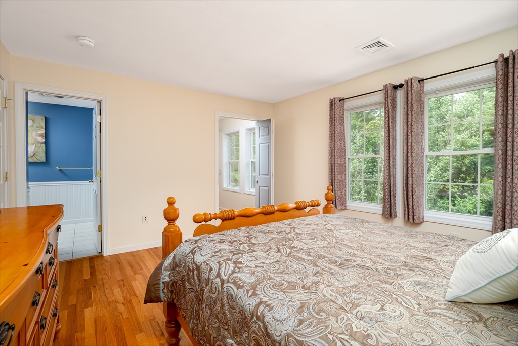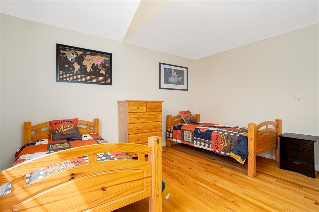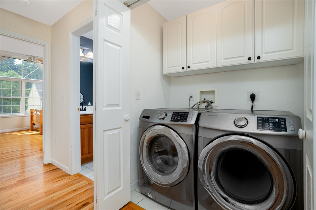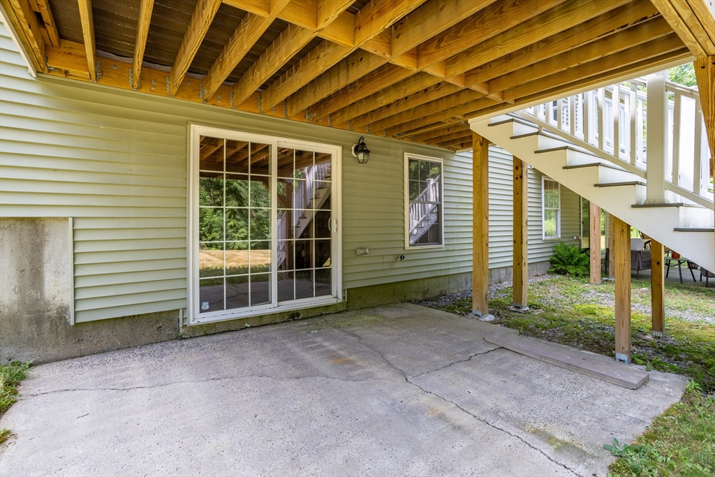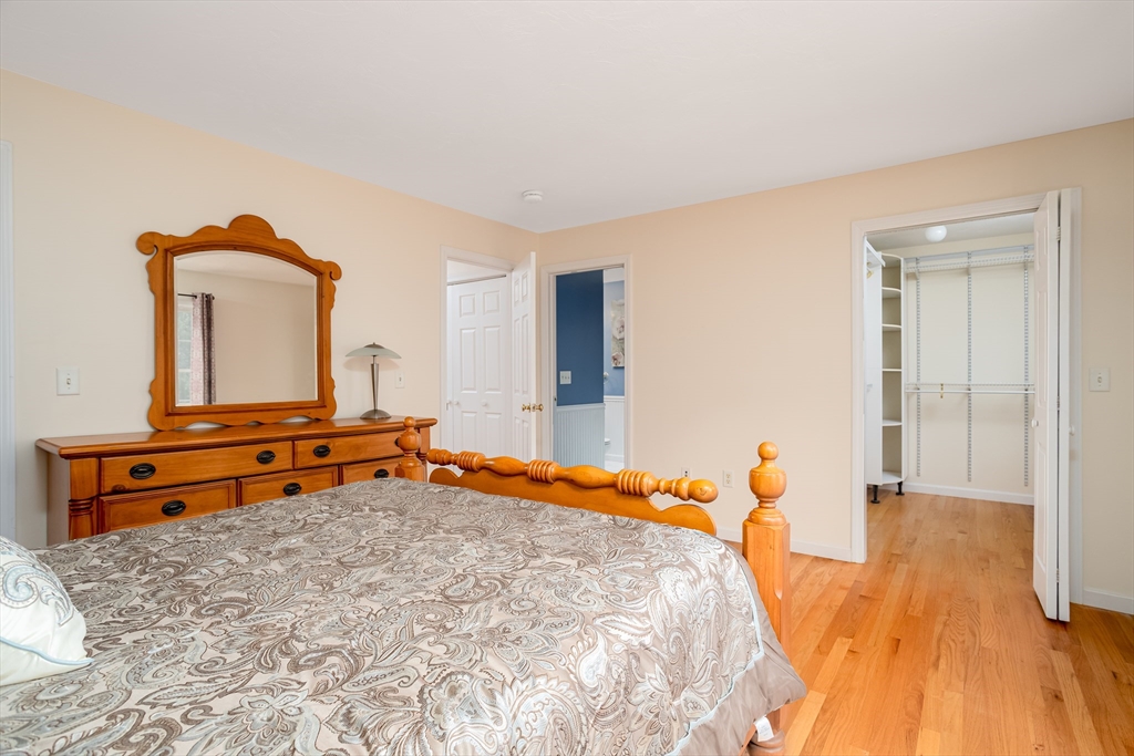 Immaculate 2 bed, 2.5 bath end unit at Whitney Estates in Berlin MA on the Northborough line. Well-designed kitchen with brand new gas stove, cherry cabinets, granite counters & dining area overlooking the expansive backyard skirted by mature woodlands. Living room features shiny hardwood floors, recessed lighting & corner gas fireplace. Slider leads to private, high-rise composite deck only a year young. Upstairs the primary bedroom boasts 2 walk-in closets, one of them naturally lit with 2 full-size windows. En-suite bathroom with double vanity & oversized tub/shower. 2nd bedroom features vaulted ceiling & double closets. Laundry conveniently located on the second floor next to the 2nd full bathroom. Unfinished walk-out basement provides ample storage, extra space & potential for buildouts tailored to your own desire! Attached one car garage & central air. Pet friendly HOA. Great commuter location right off Rt 290, 495 & 62, in conjunction with Northborough, Hudson & Marlborough!