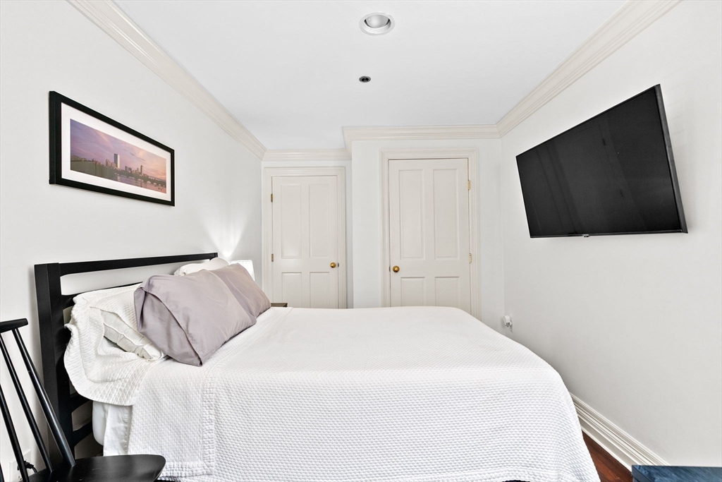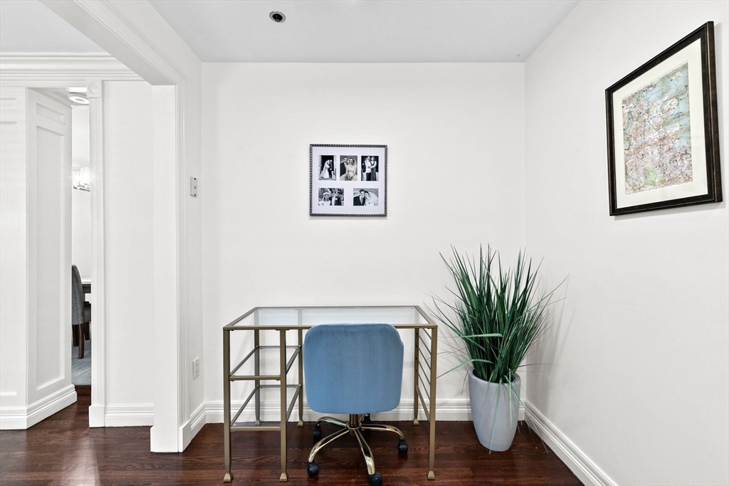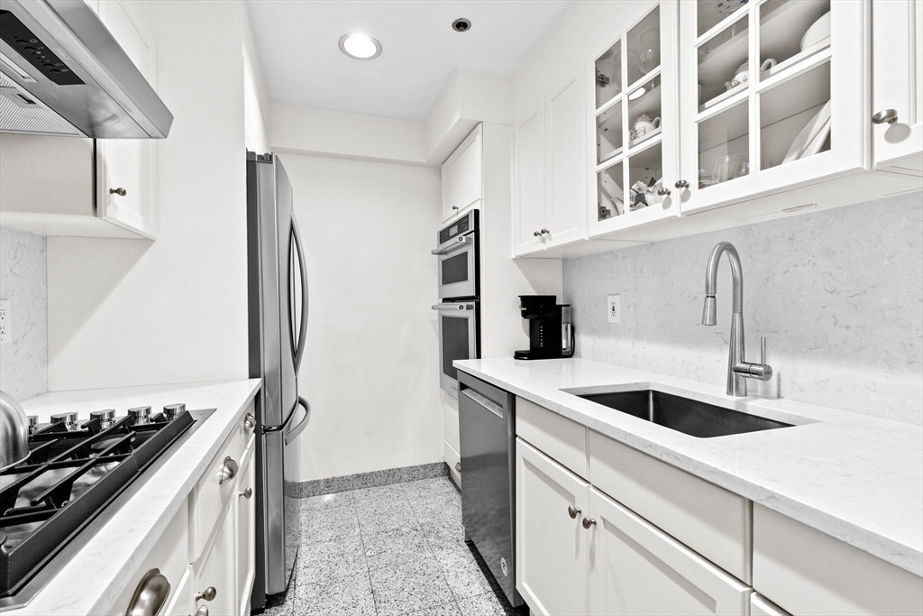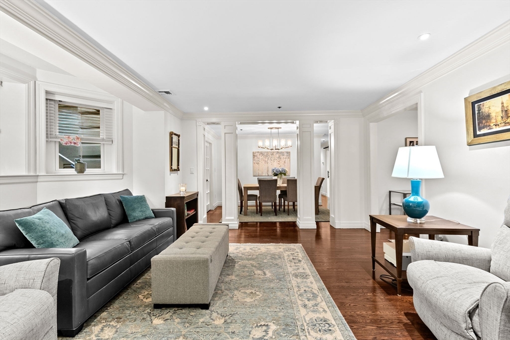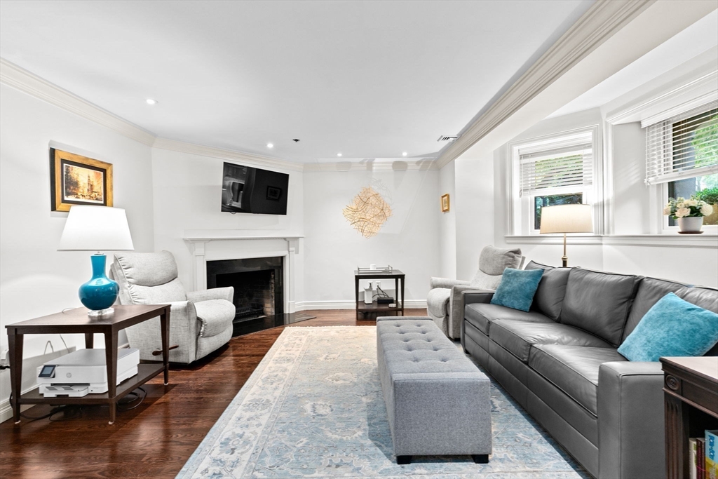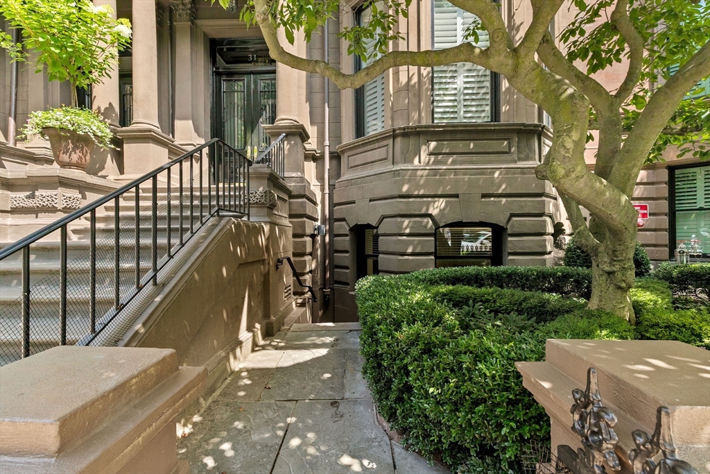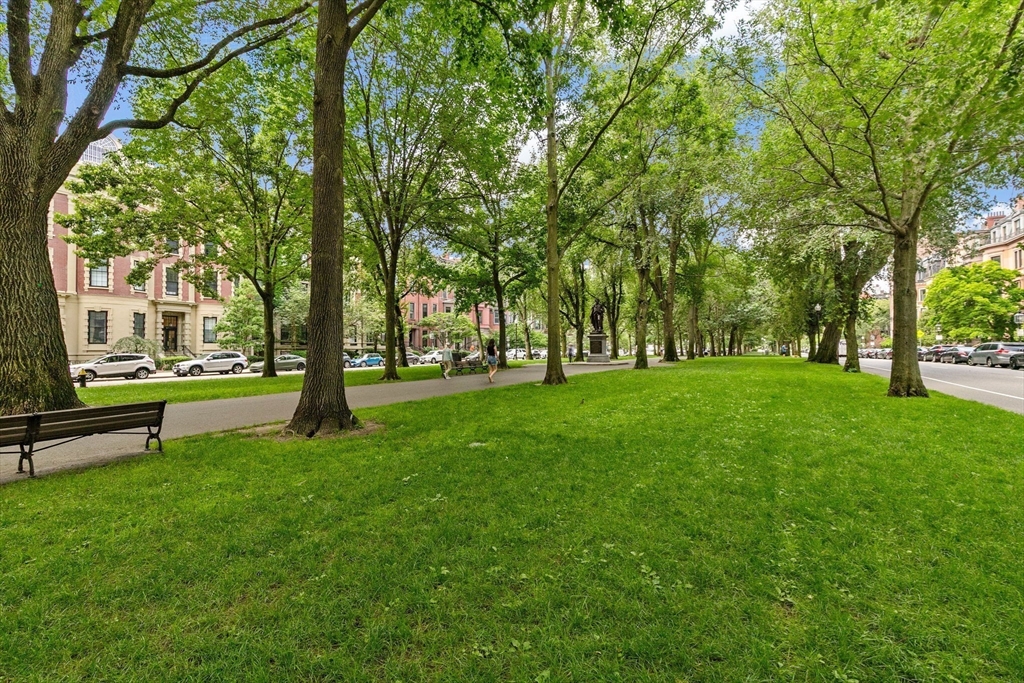 Step into a world straight out of Robert McCloskey's "Make Way For Ducklings"! Just steps from Boston's iconic Public Garden, Newbury Street and Beacon Hill, 31-33 Commonwealth Ave. boasts a picturesque private entrance graced by lovely landscaped gardens. An elegant and spacious dining room and oversized living room with graceful crown moulding, fireplace, bay window and gleaming hardwood flooring greet you upon entry. An efficient galley kitchen with all newer appliances, refurbished cabinets and recently installed marble countertops make meal prep a dream! Two generously sized bedrooms, including a primary bedroom with bay window, two ample sized closets and spacious seating area provide respite from the hustle and bustle of the city. Two beautifully designed full bathrooms complete the look and feel of modern luxury living. Recently renovated common areas, including an elevator that provides service to the lobby, add a sense of ease and comfort in this dream-come-true property.