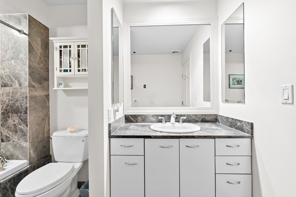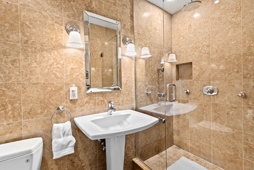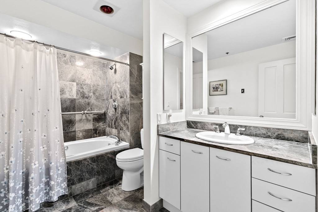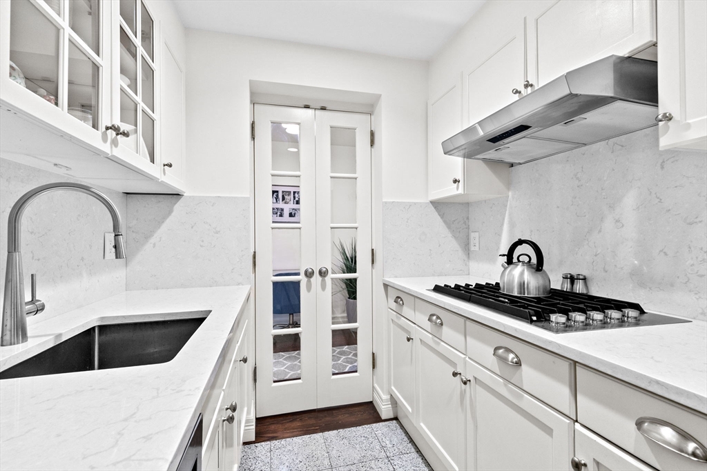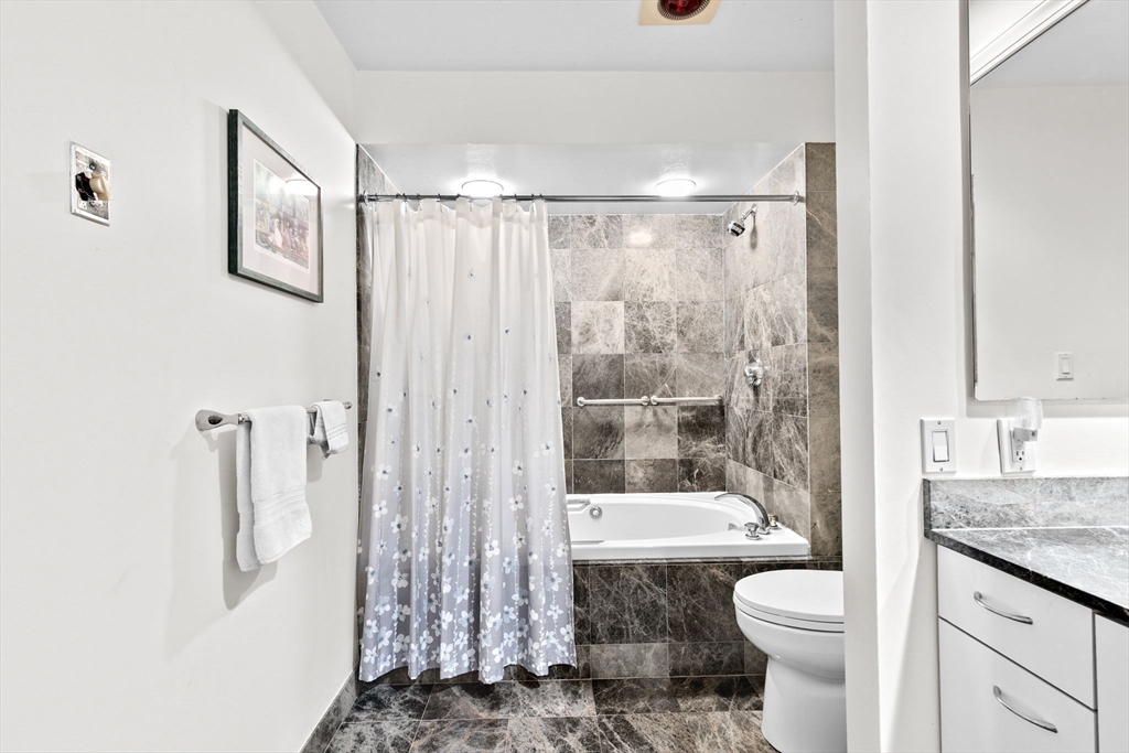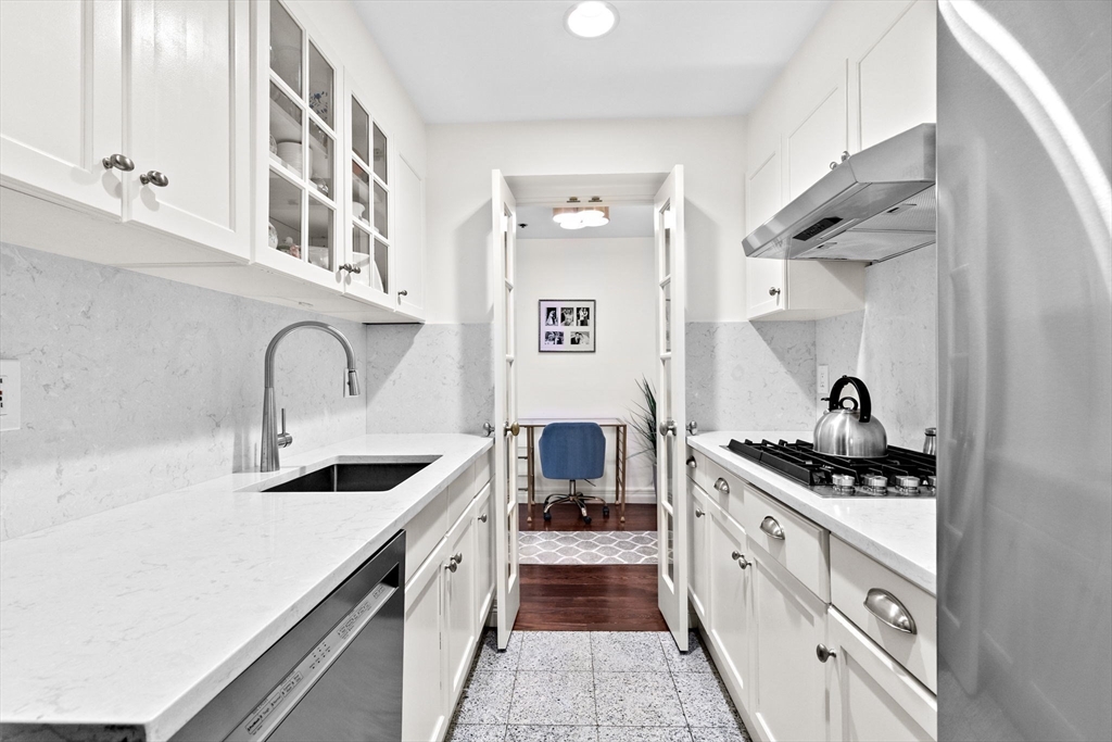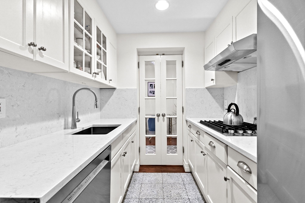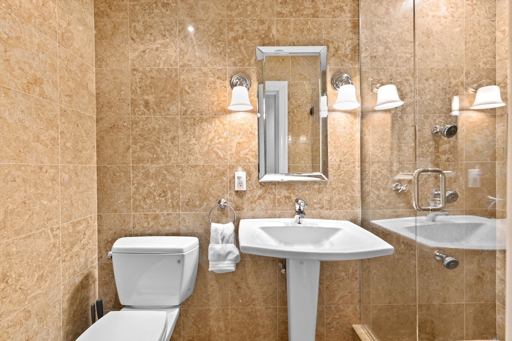 Step into a world straight out of Robert McCloskey's "Make Way For Ducklings"! Just steps from Boston's iconic Public Garden, Newbury Street and Beacon Hill, 31-33 Commonwealth Ave. boasts a picturesque private entrance graced by lovely landscaped gardens. An elegant and spacious dining room and oversized living room with graceful crown moulding, fireplace, bay window and gleaming hardwood flooring greet you upon entry. An efficient galley kitchen with all newer appliances, refurbished cabinets and recently installed marble countertops make meal prep a dream! Two generously sized bedrooms, including a primary bedroom with bay window, two ample sized closets and spacious seating area provide respite from the hustle and bustle of the city. Two beautifully designed full bathrooms complete the look and feel of modern luxury living. Recently renovated common areas, including an elevator that provides service to the lobby, add a sense of ease and comfort in this dream-come-true property.