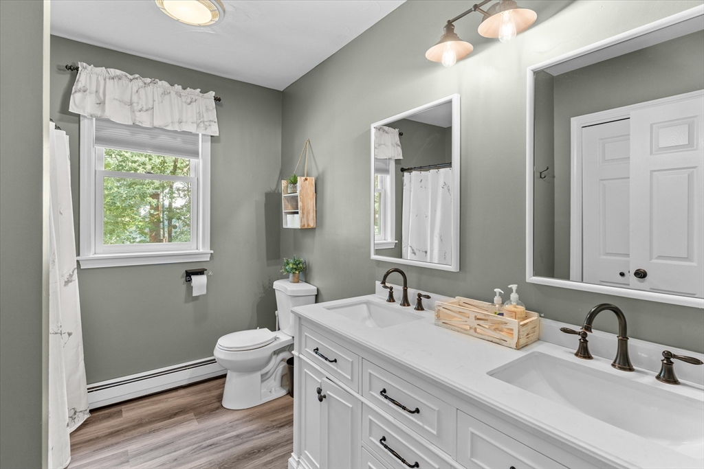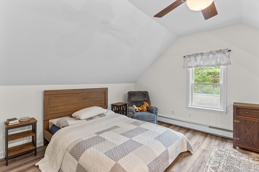 ** PRICE IMPROVEMENT ** Unique colonial on a serene 1.84-acre lot just minutes from major routes. The updated eat-in kitchen features granite counters, a peninsula, and opens to a bright living area with a stunning fieldstone wood-burning fireplace, skylights, and loads of windows. The main level also includes a mudroom with access to the oversized 3-car garage, a laundry room, a large office with custom built-ins, a carpeted bonus room that can serve as a bedroom and a large deck off the dining area. Upstairs offers a spacious primary suite with ensuite bath and walk-in closet, plus two more bedrooms and a full bath. The finished walk-up attic includes a large bedroom and huge Game room or multi-level flex space. The basement offers a partially finished hangout space and ample storage. Outside, a massive +/- 3000sf fully finished barn with heat, AC, electric, radiant floors, and a finished second level provides endless possibilities.