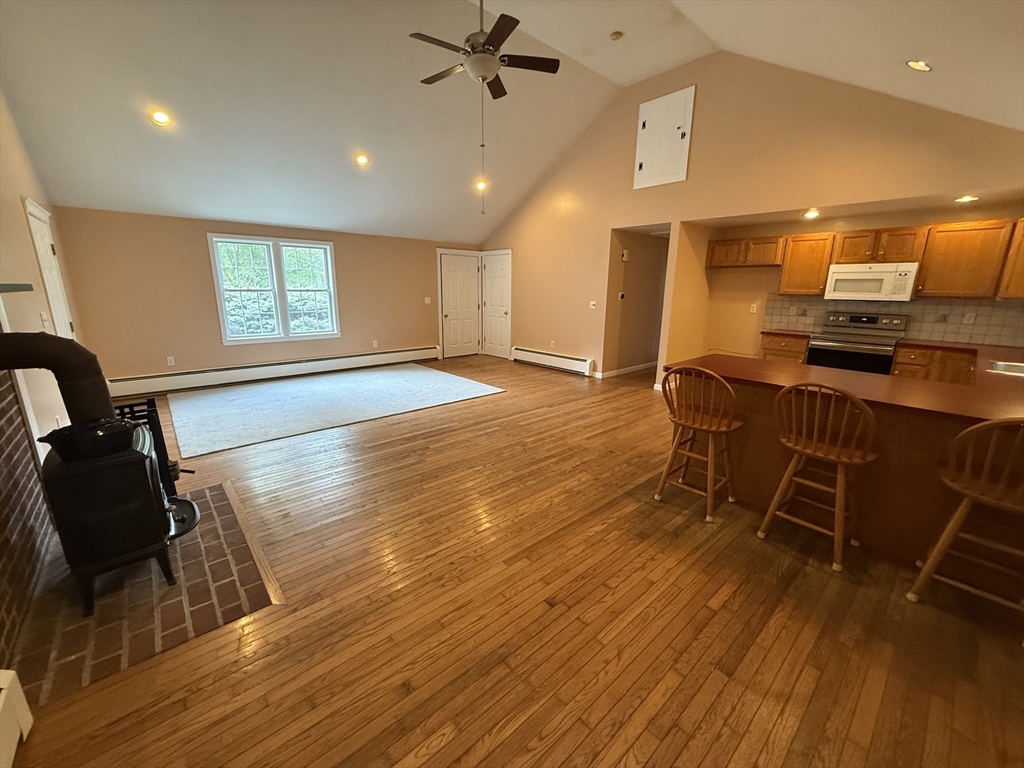 Charming and energy-efficient 3-bed, 1-bath ranch on 1.04 private acres in Milford, MA. Approx. 1,300 sq ft with a bright, single-level layout, updated with solar panels, heat pump, and wood stove for year-round comfort and reduced energy costs. Built in 1996 and well-maintained, this home features spacious bedrooms, a full bath, open living and dining areas, and ample natural light throughout. The updated systems offer eco-friendly living with long-term savings. Step outside to enjoy the large backyard—perfect for entertaining, gardening, or relaxing in nature. A handy shed provides great storage or workspace for tools, equipment, or hobbies. Located on a quiet, residential street just minutes from Milford’s thriving downtown, shopping centers, top-rated schools, walking trails, and commuter routes including I-495. Peaceful setting with everyday convenience—this home checks all the boxes for comfort, efficiency, and location.