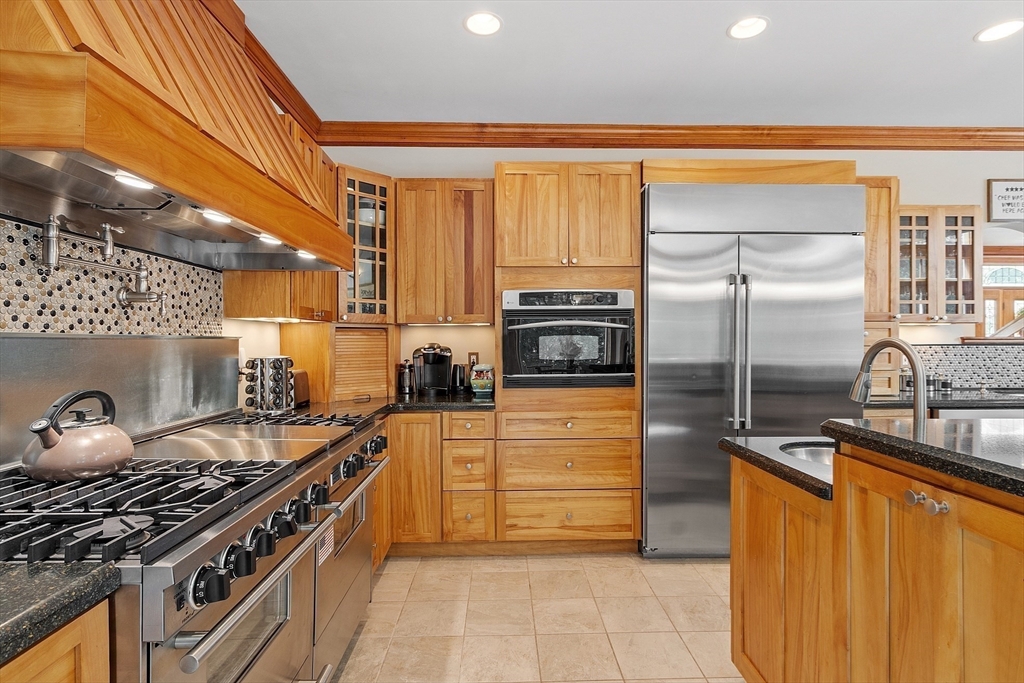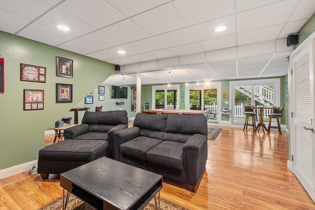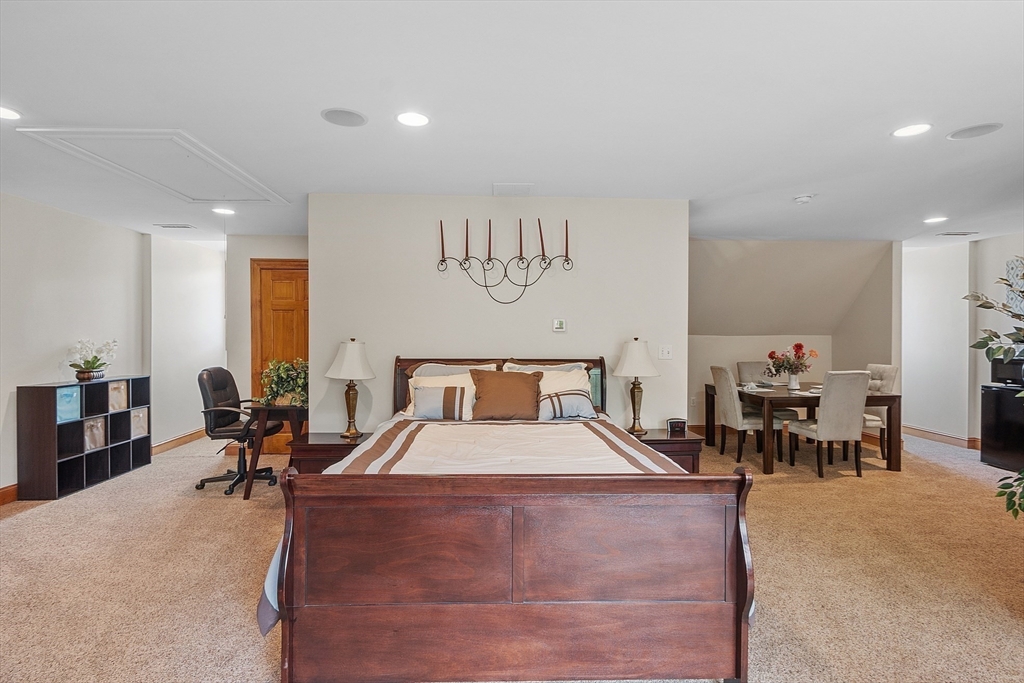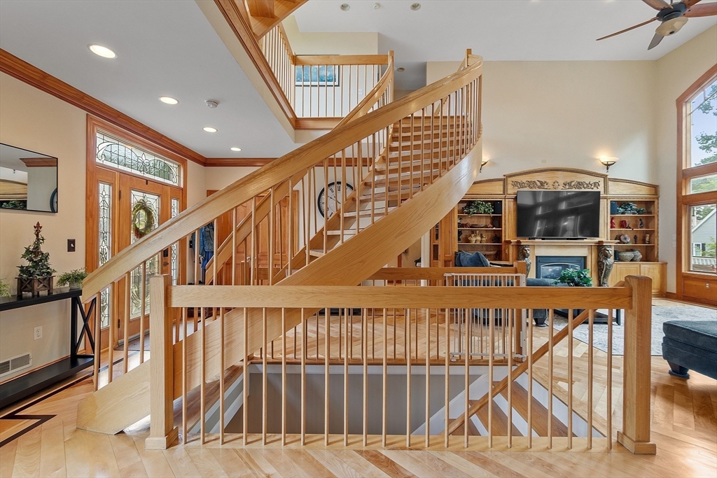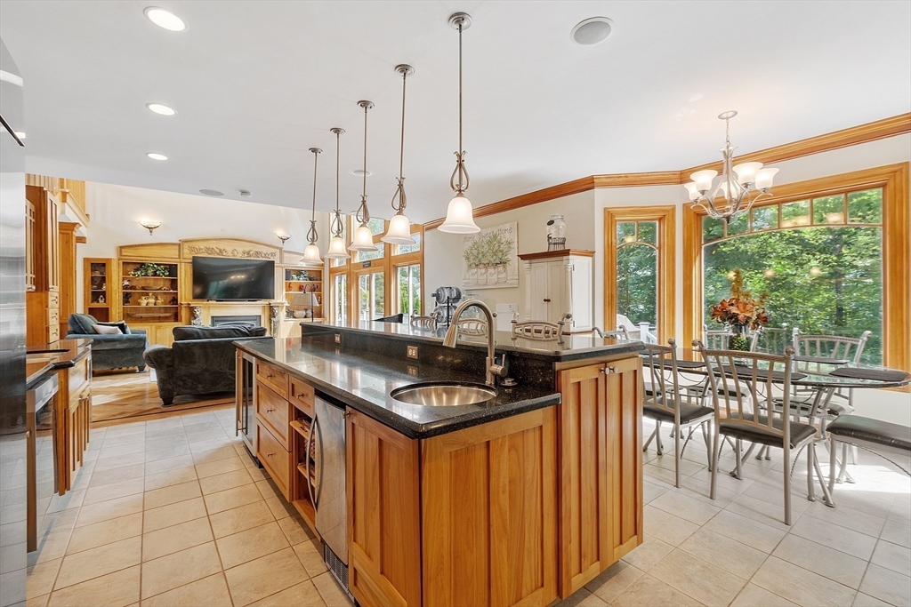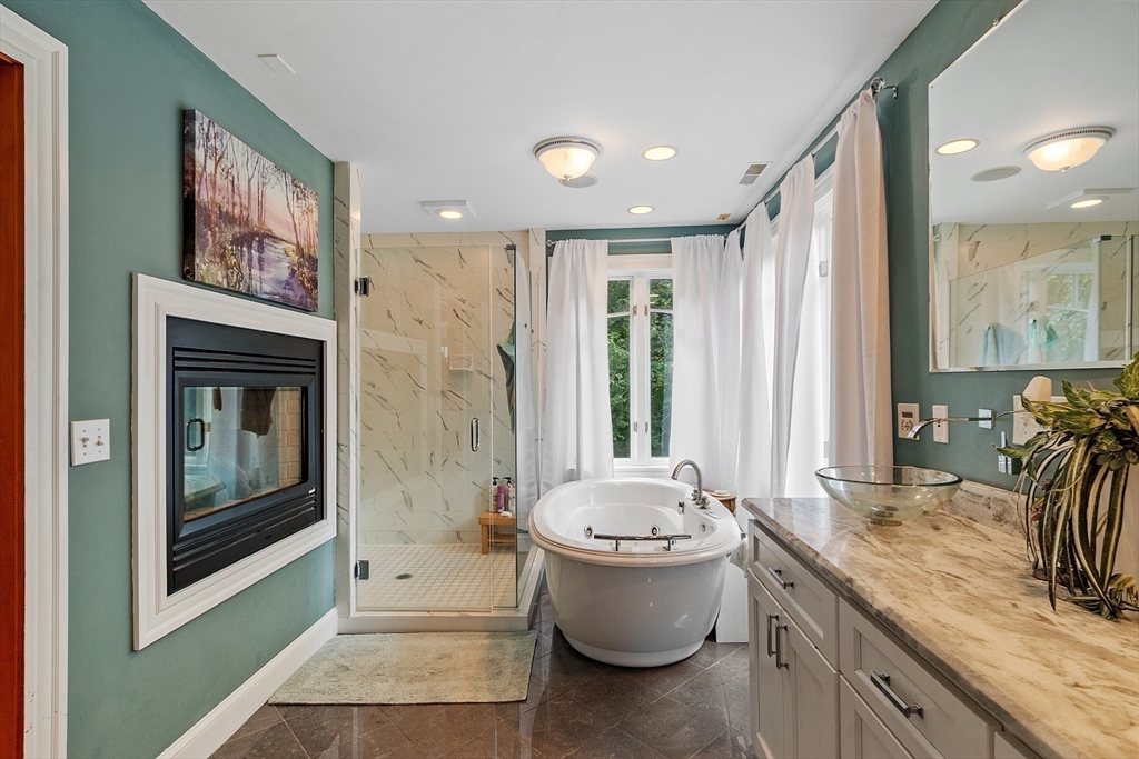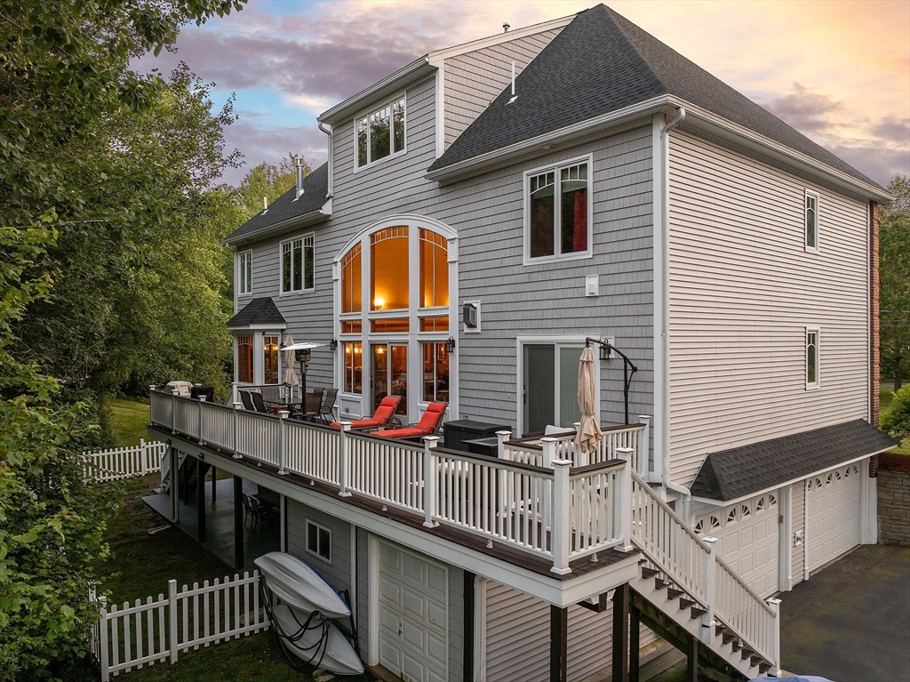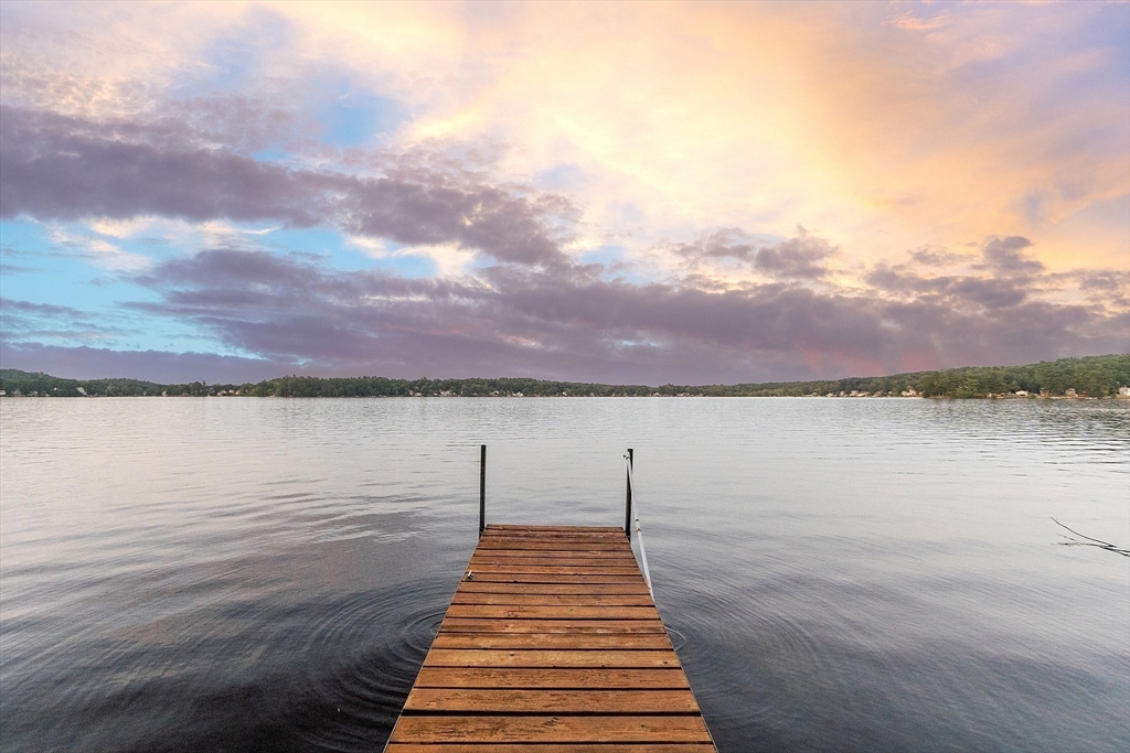 Stunning waterfront home on Lake Attitash! Nestled on a quiet dead-end street, this exceptional property offers a private dock w/ breathtaking lake views & direct water access. The expansive open-concept 1st floor boasts a chef’s kitchen featuring a massive island, gas stove, double dishwashers, & built-in ice machine-perfect for entertaining. The spacious living room opens to a back deck. Upstairs, the luxurious primary suite features a double-sided fireplace, spa-like en suite w/ soaking tub, double vanity, & custom shower, plus a dream dressing room w/ in-unit laundry. Two additional bedrooms & a full bath complete the second floor. The third floor offers a private suite ideal for guests, in-laws, or a second primary bedroom, w/ its own full bath. The finished basement is the ultimate hangout space w/ a game room, full bath, second laundry area, utility closet, and walk-out access to the patio. Enjoy whole-home WiFi-controlled surround sound. SHOWINGS TO BEGIN AT OPEN HOUSE 7/24