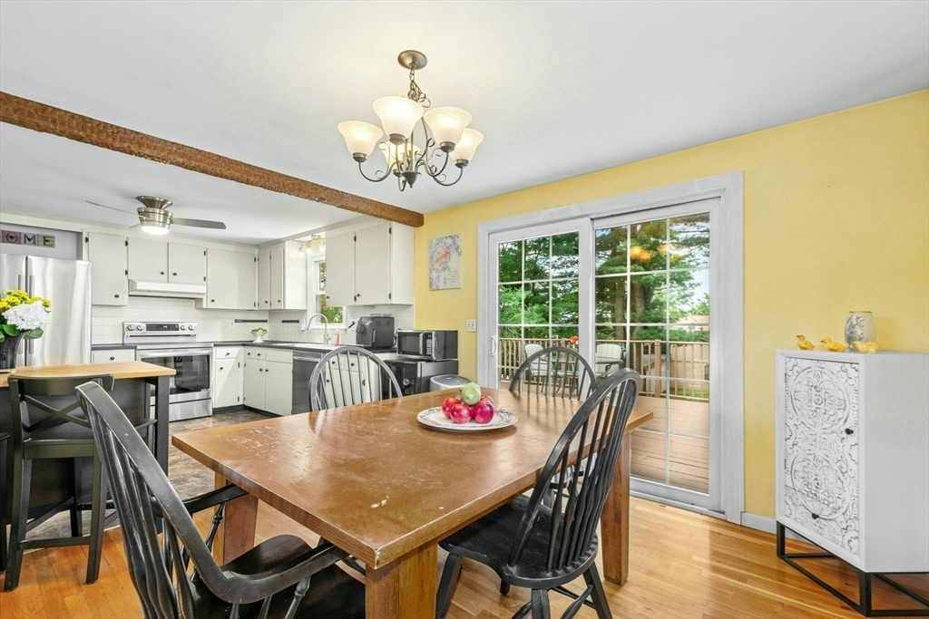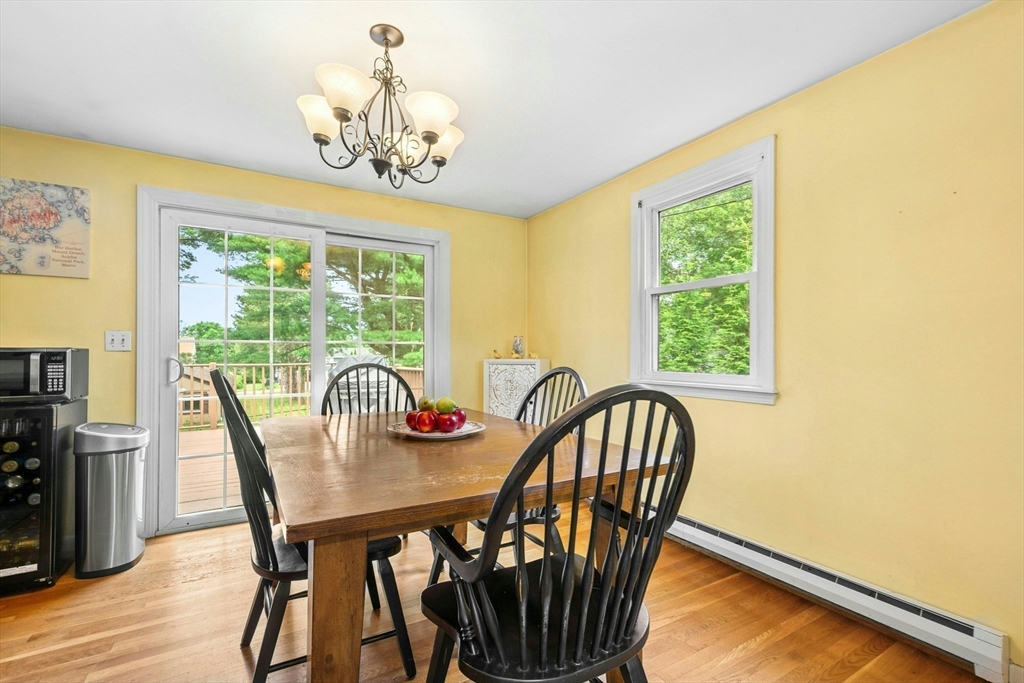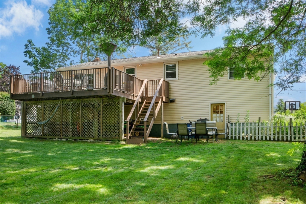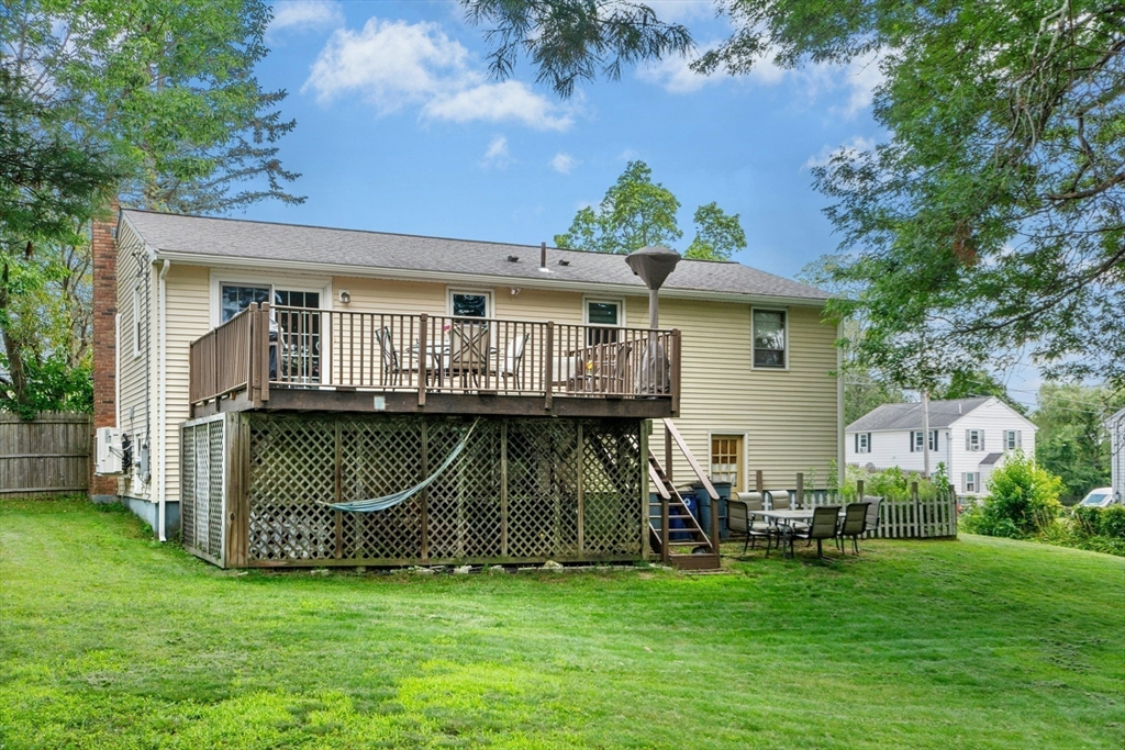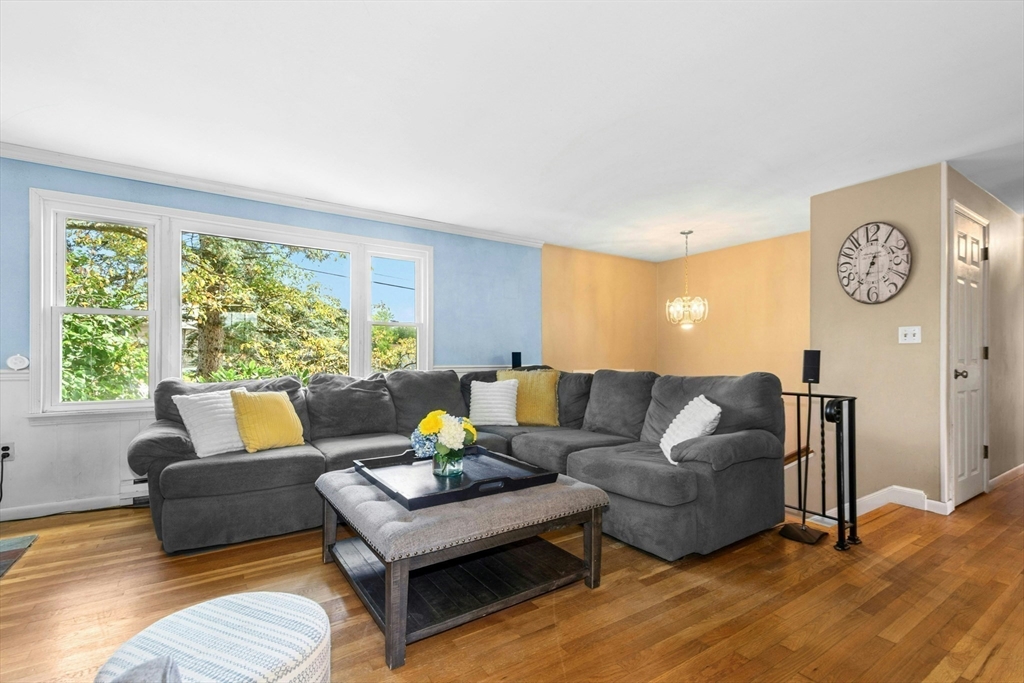 Best value in a desirable location!!! Here is your opportunity to own this well-maintained home filled with natural light and hardwood floors throughout. The main level features an open kitchen and dining with newer stainless steel appliances and a living room with large windows overlooking mature trees & flowers. Three bedrooms and a gorgeous updated full bath complete this level. The finished lower level provides great flexibility with an additional (4th) bedroom, half bath, cozy family room with fireplace, office area, laundry room, and mudroom-ideal for storage or workspace and easy garage access. Enjoy your morning coffee on the spacious wood deck overlooking the large level, fenced-in backyard-perfect for play or entertaining. Just minutes to local shops, restaurants, trails, and easy access to Boston, Providence, and Worcester. Whether you're starting out or downsizing, this home is move-in ready and full of warmth and possibility!