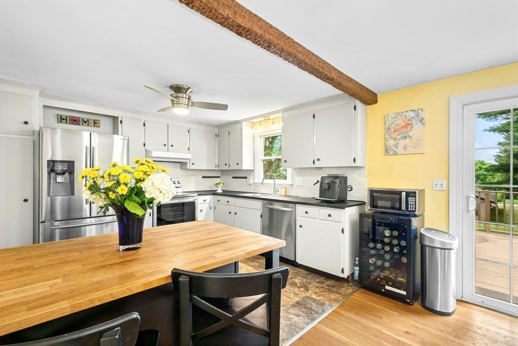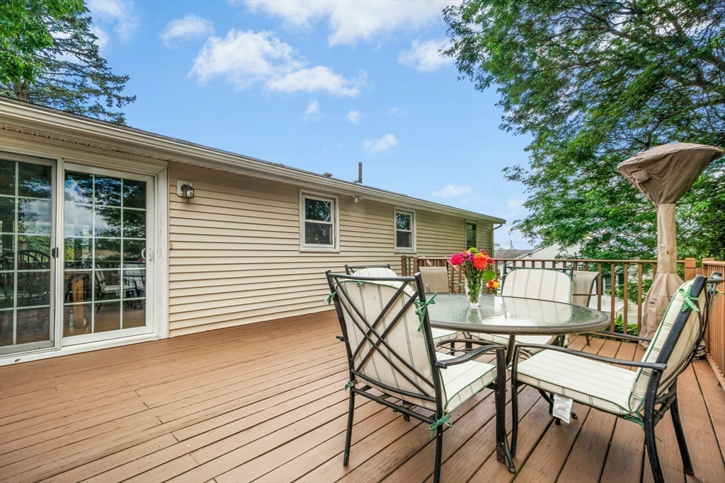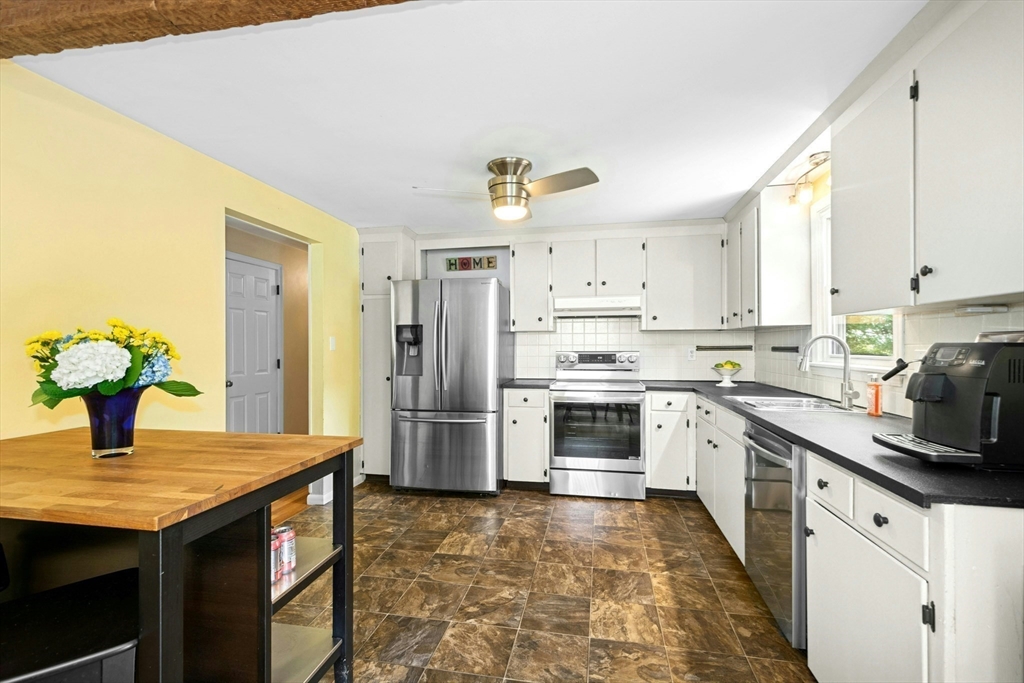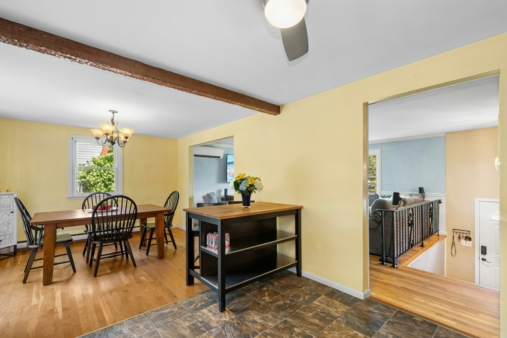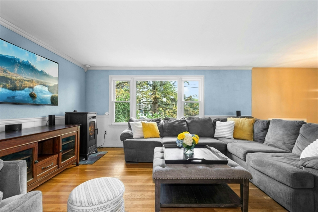 Best value in a desirable location!!! Here is your opportunity to own this well-maintained home filled with natural light and hardwood floors throughout. The main level features an open kitchen and dining with newer stainless steel appliances and a living room with large windows overlooking mature trees & flowers. Three bedrooms and a gorgeous updated full bath complete this level. The finished lower level provides great flexibility with an additional (4th) bedroom, half bath, cozy family room with fireplace, office area, laundry room, and mudroom-ideal for storage or workspace and easy garage access. Enjoy your morning coffee on the spacious wood deck overlooking the large level, fenced-in backyard-perfect for play or entertaining. Just minutes to local shops, restaurants, trails, and easy access to Boston, Providence, and Worcester. Whether you're starting out or downsizing, this home is move-in ready and full of warmth and possibility!