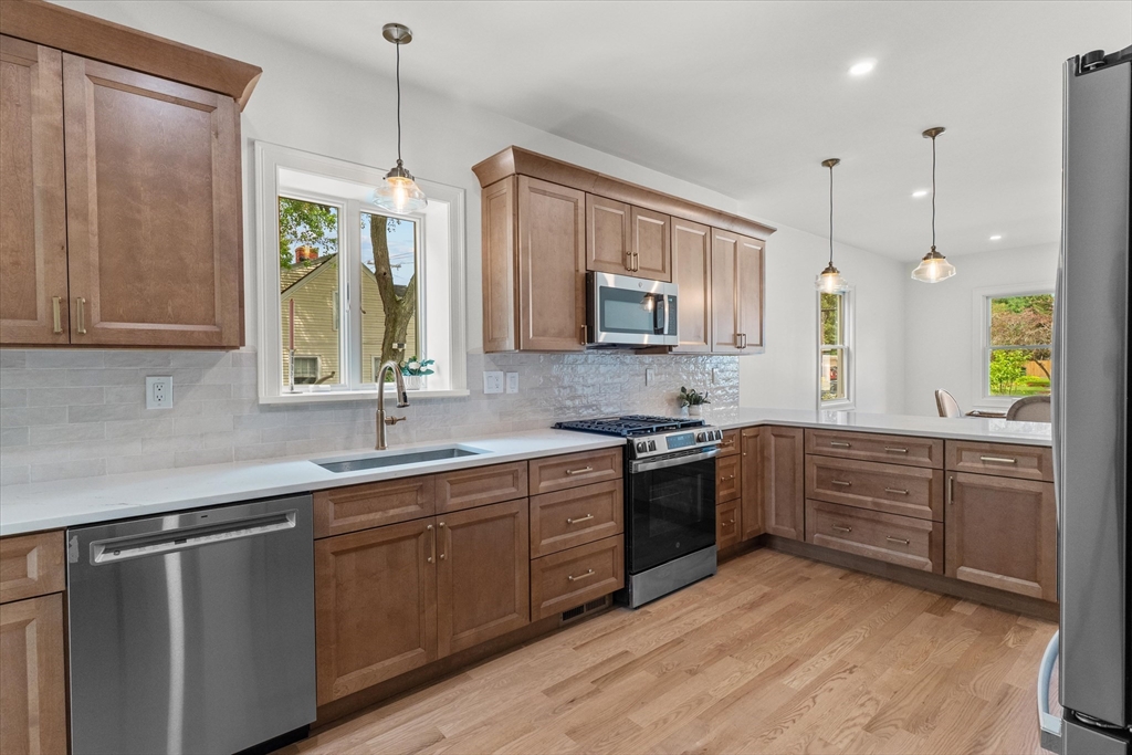 It is with great pleasure I present to you 1179 Bay St! A Stunning 2025 Custom Built Colonial Home designed with the perfect blend of modern comfort & 1st class finishes. The interior Features over 3,200 Sq. Ft. of living space, 9’ ceilings, 5 Bedrooms (2 Master BR’s, 1 on 1st Fl, 1 on 2nd), 3 Full Baths, Open Floor Plan Kitchen/Dining Room, Shaker Style cabinets, Granite CT’s, SS Appliances, Central Air, Oak HW Floors throughout, Fireplace, Anderson 400 Series Windows, solid core doors & a fully finished basement w/ its own egress. Natural Gas for Heat/HW/Cooking will keep monthly bills cost effective. The exterior was designed to last and be as maintenance free as possible utilizing vinyl siding, composite decking, railings, trim moldings, fencing. The lot has a freshly paved driveway, professional landscape w/ irrigation system & parking for 8+ vehicles. As a bonus, there are city approved plans for a 2 level double garage with finished living space available. Absolute must see!