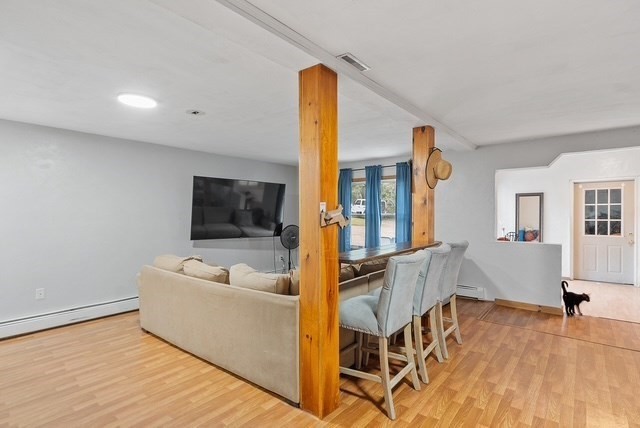 This oversized dormered Cape offers the perfect blend of space, charm, and versatility. Step inside and immediately feel at home. The first floor features a spacious living room, a flexible bedroom that can also serve as a home office, a formal dining room, and a large open kitchen with stainless steel appliances. Upstairs, you’ll find a generous primary bedroom with double closets, two additional nicely sized bedrooms, and a full bathroom. Beautiful pine flooring adds warmth and character to many of the rooms. The finished basement offers great potential for an in-law suite, office, or media room. Enjoy the convenience of an oversized 2-car garage with semi-finished bonus space above—ideal for a game room, studio, or gym. The exterior features two large storage sheds, a huge driveway & your very own pond—perfect for nature lovers or outdoor gatherings. IIdeally located near major highways, shops & some of Sturbridge’s most beloved attractions. OPEN HOUSE Thur, July 24th 5:00-6:00PM