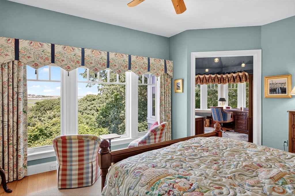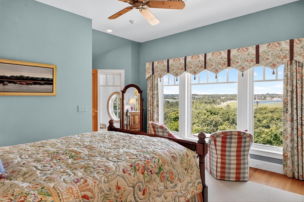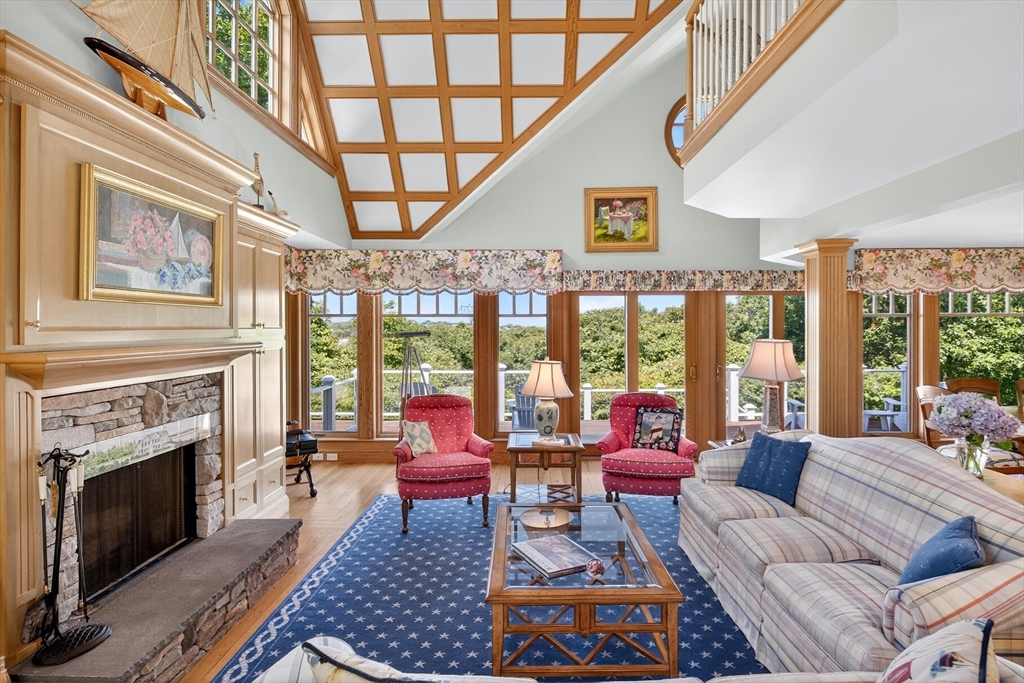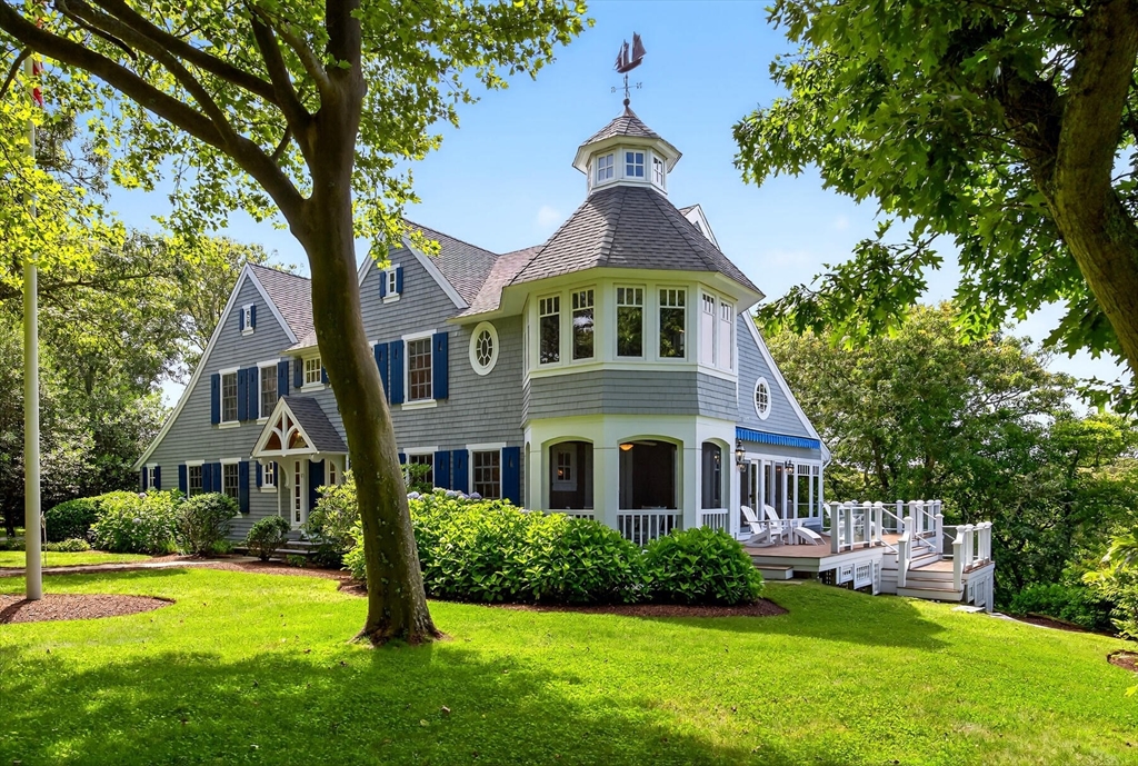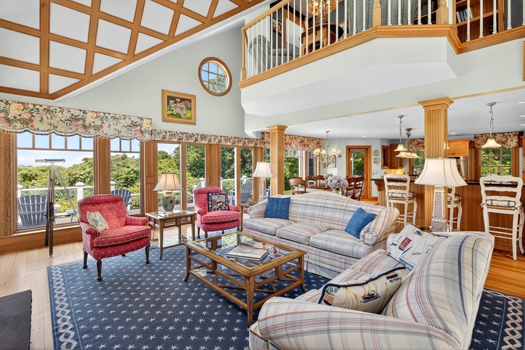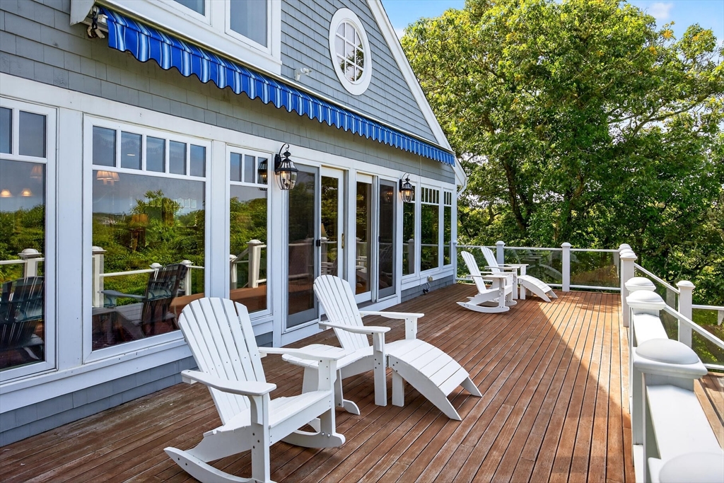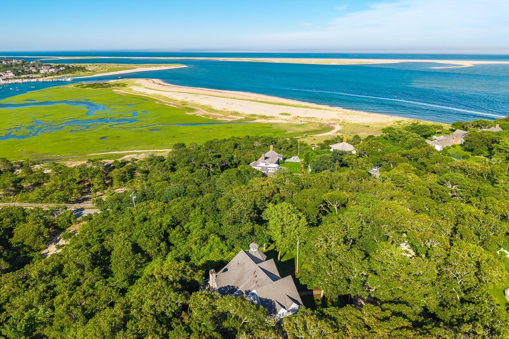 Perched on 1.68 acres high above Chatham Harbor on Morris Island, this shingle-style home offers panoramic views of the Chatham Light and Pleasant Bay. It is part of the private Quitnesset Association, located within the Monomoy National Wildlife Refuge. It is situated within the Monomoy National Wildlife Refuge and is part of the private Quitnesset Association, offering deeded access to pristine beaches, walking trails, and two harbors. Designed and built by the renowned firm of Polhemus, Savory, and DaSilva, this 2,821 sf, 3-BR, 3.5 Bath home thoughtfully captures the sweeping harbor views through an open floor centered around a chef’s kitchen, living room with a vaulted ceiling and custom fireplace, a dining room that opens to a mahogany deck, and a screened porch. The primary suite on the second floor offers stunning harbor and lighthouse views, featuring an office, an oversized bathroom, and a walk-in closet. Two additional en-suite bedrooms round out the second floor.