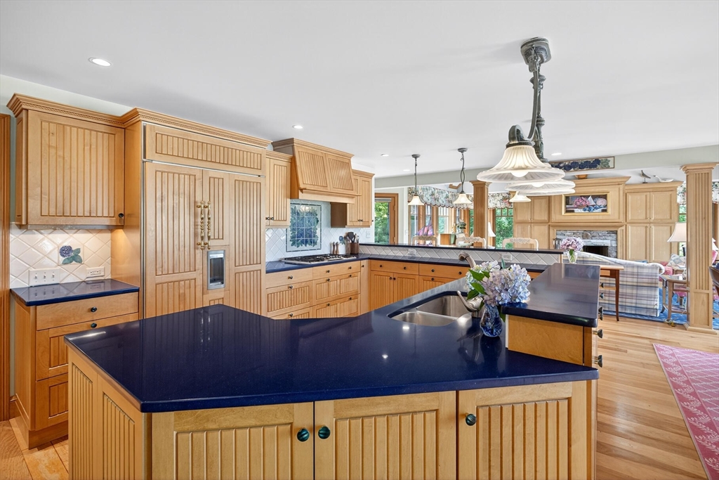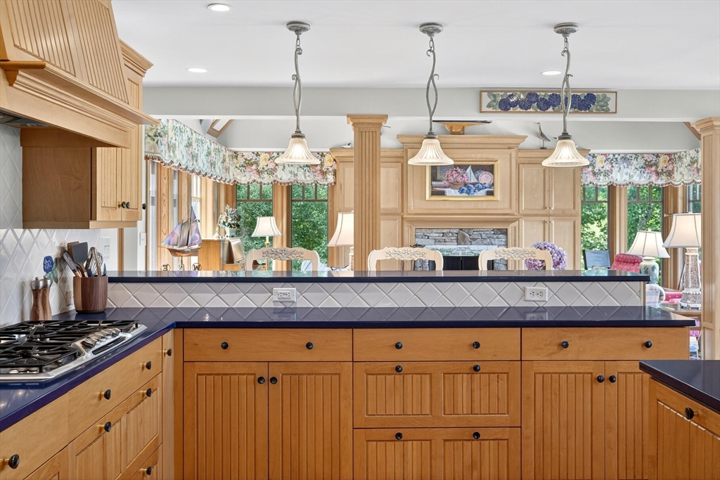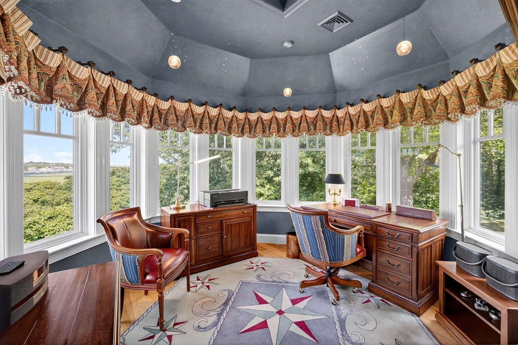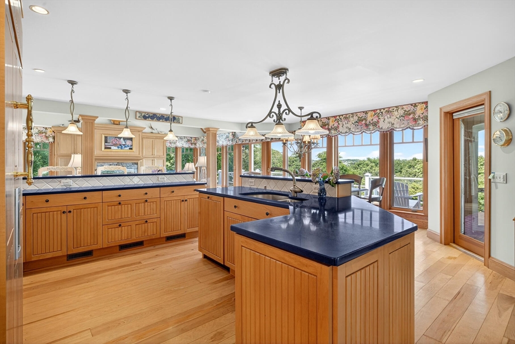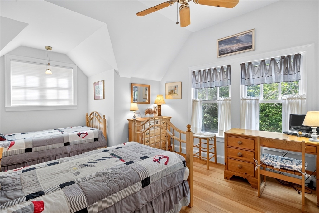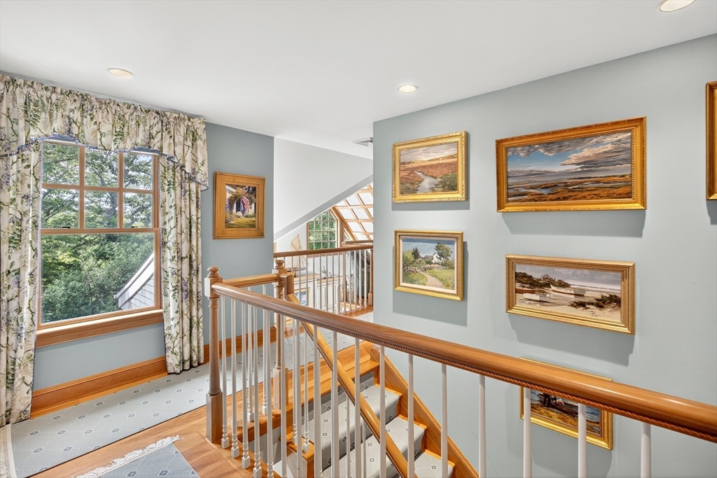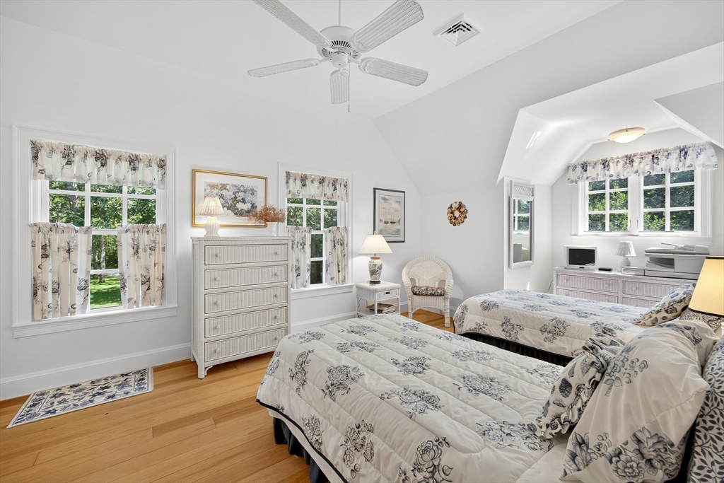 Perched on 1.68 acres high above Chatham Harbor on Morris Island, this shingle-style home offers panoramic views of the Chatham Light and Pleasant Bay. It is part of the private Quitnesset Association, located within the Monomoy National Wildlife Refuge. It is situated within the Monomoy National Wildlife Refuge and is part of the private Quitnesset Association, offering deeded access to pristine beaches, walking trails, and two harbors. Designed and built by the renowned firm of Polhemus, Savory, and DaSilva, this 2,821 sf, 3-BR, 3.5 Bath home thoughtfully captures the sweeping harbor views through an open floor centered around a chef’s kitchen, living room with a vaulted ceiling and custom fireplace, a dining room that opens to a mahogany deck, and a screened porch. The primary suite on the second floor offers stunning harbor and lighthouse views, featuring an office, an oversized bathroom, and a walk-in closet. Two additional en-suite bedrooms round out the second floor.