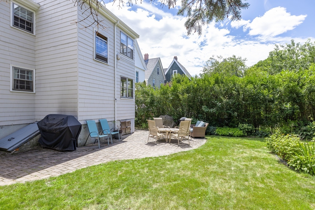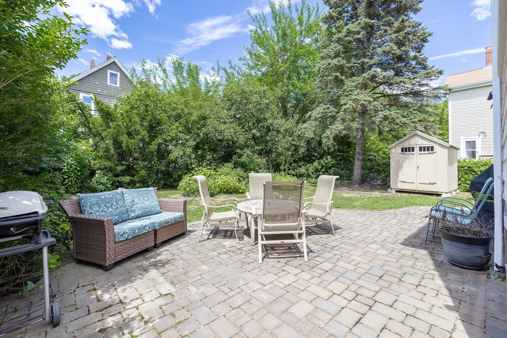 Nestled on a quiet, tree-lined side street just outside Roslindale Village, this beautifully updated top-floor condo offers an inviting open layout with spacious rooms, hardwood floors and an amazing yard. The fireplaced living room flows into a formal dining room and a stunning kitchen featuring granite countertops, abundant wood cabinetry, newer appliances, and breakfast bar seating. A bonus office nook off the living room provides the ideal work from home setup. Both bedrooms are generously sized, and full bathroom was fully renovated in 2020 with modern finishes. Enjoy morning coffee or evening drink on the cozy 3-season porch, or entertain in the expansive fenced yard with patio and new shed. The basement includes private storage and laundry. 1 off-street parking space. Exterior recently painted and newer front steps. Only a mile to Arnold Arboretum; 0.2 mile to shops, restaurants, library, commuter rail; 1 block to new Sarah Roberts school/playground, and mins to downtown Boston!