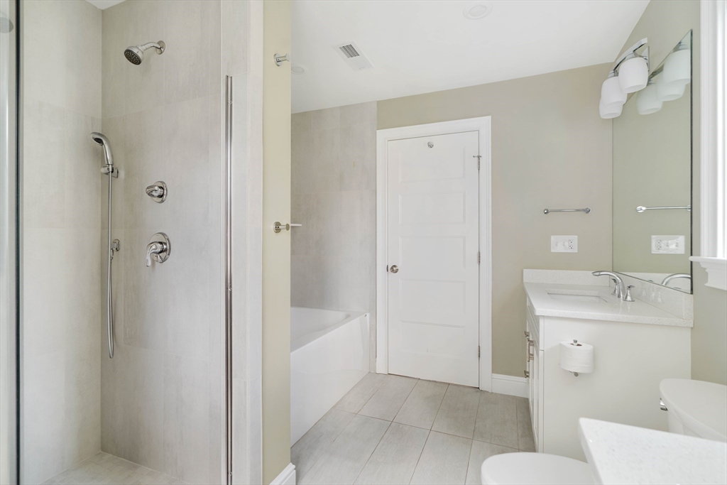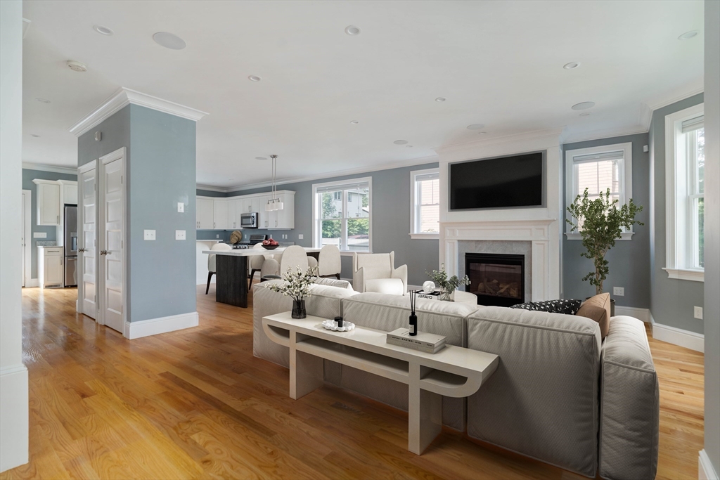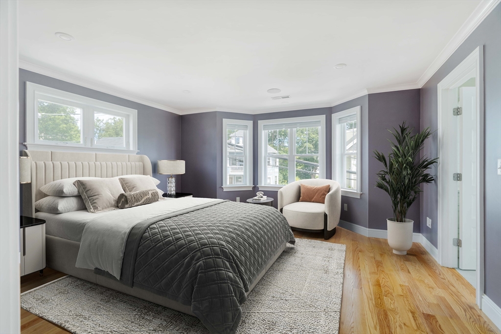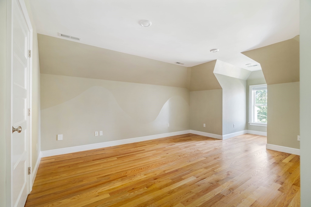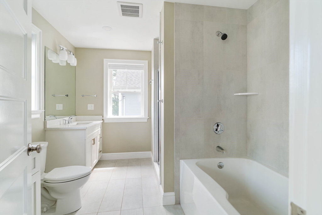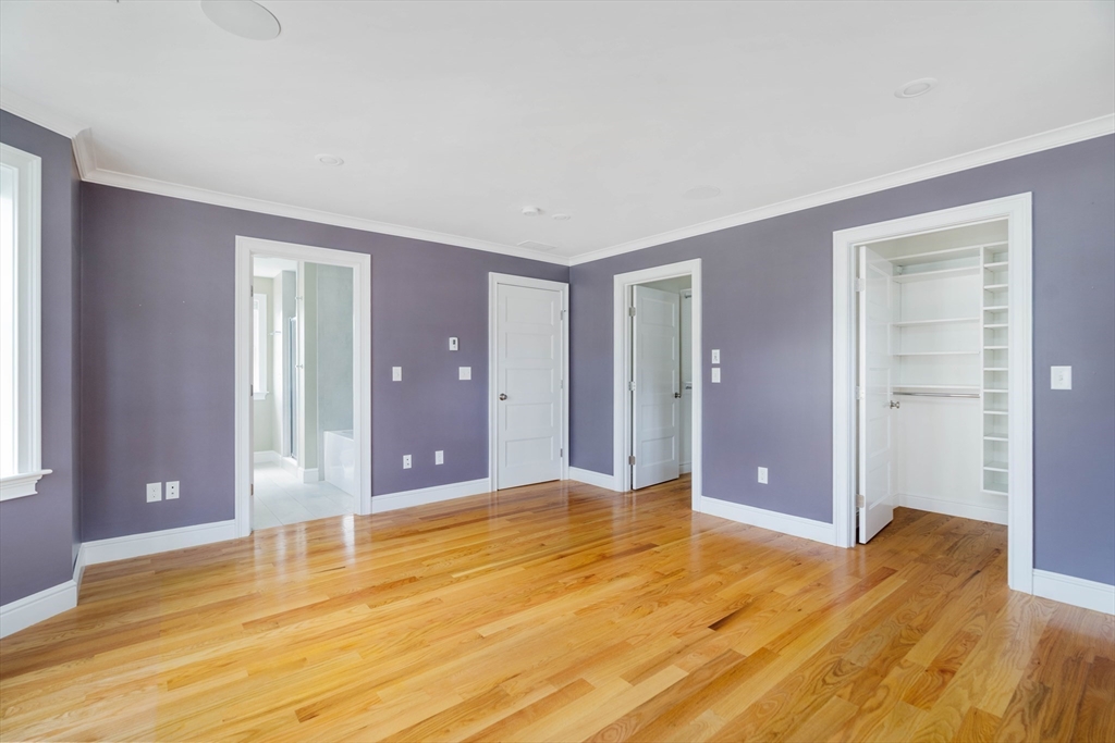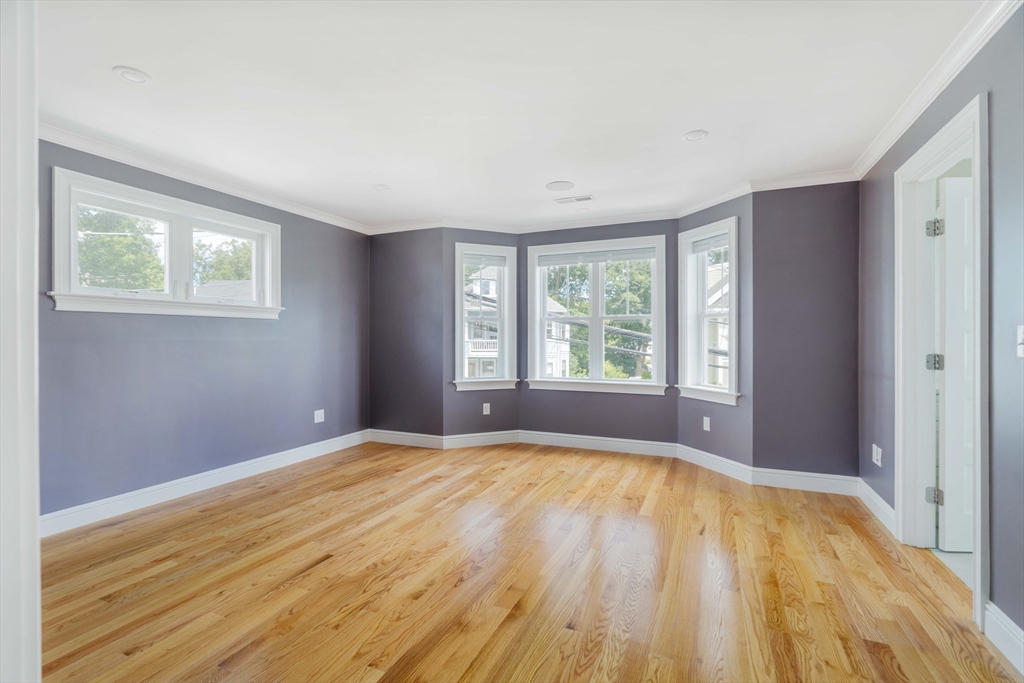 Bathed in natural light, this newer construction Colonial in Roslindale offers 3 bedrooms plus a spacious third-floor suite, an open layout, and a fully fenced backyard perfect for summer fun. The main level includes a stylish kitchen, dining area, and living room with a cozy gas fireplace. A dream laundry room and generous closets add everyday ease. Upstairs, the expansive primary suite features bay windows, walk-in closet, soaking tub and glass shower, with two more bedrooms and a full bath close by. The third floor offers flexible space for a bedroom, office, or playroom, plus a large storage room with potential for a bath or studio. Additional highlights include central A/C, built-in sound system, smart security, irrigation, central vac, off-street parking, and a walk-out basement. Ideally located near the Arboretum and Roslindale Village with easy access to the T, this home combines modern comfort, space, and convenience.