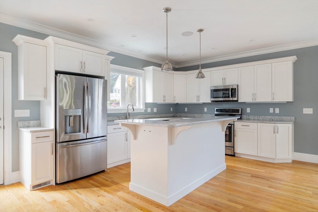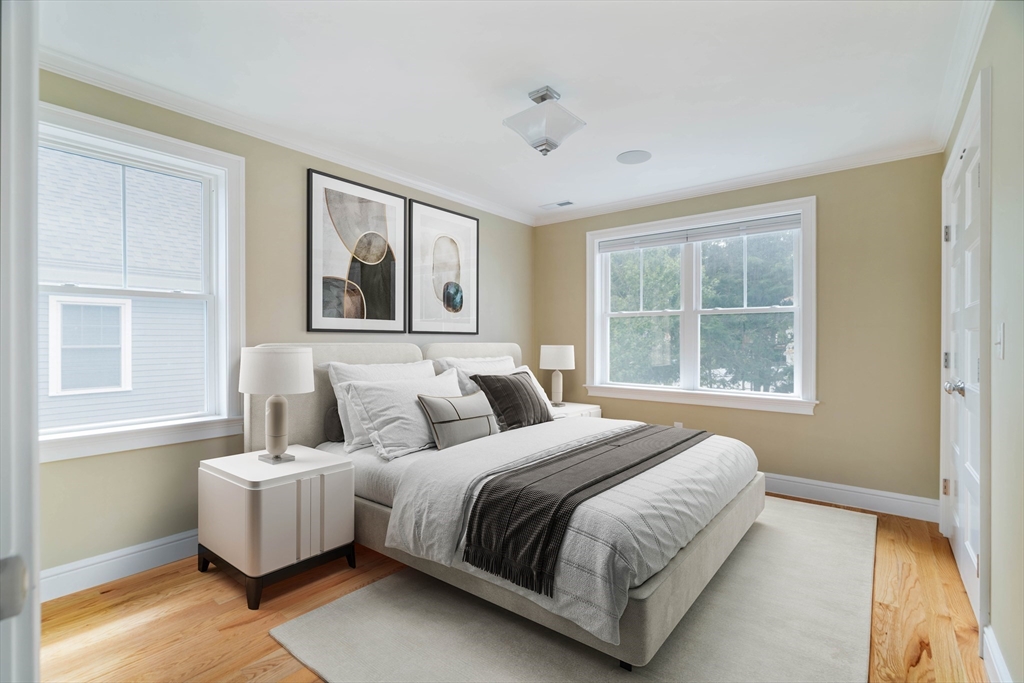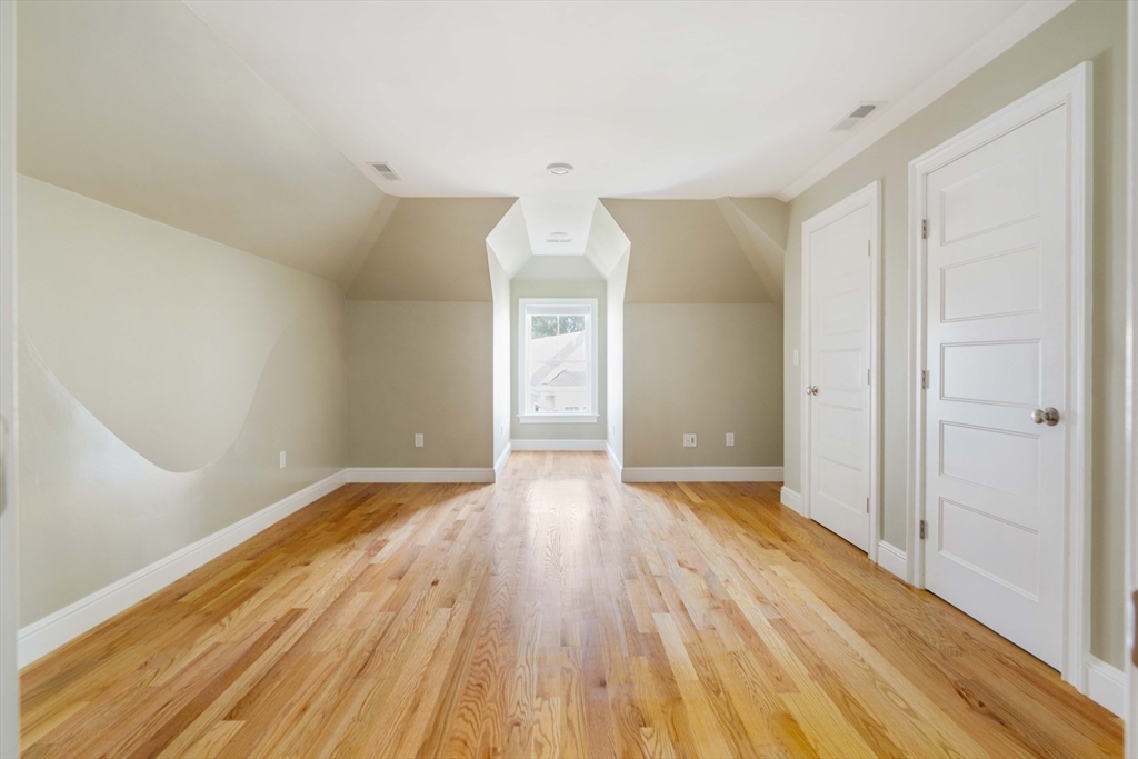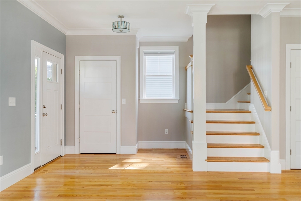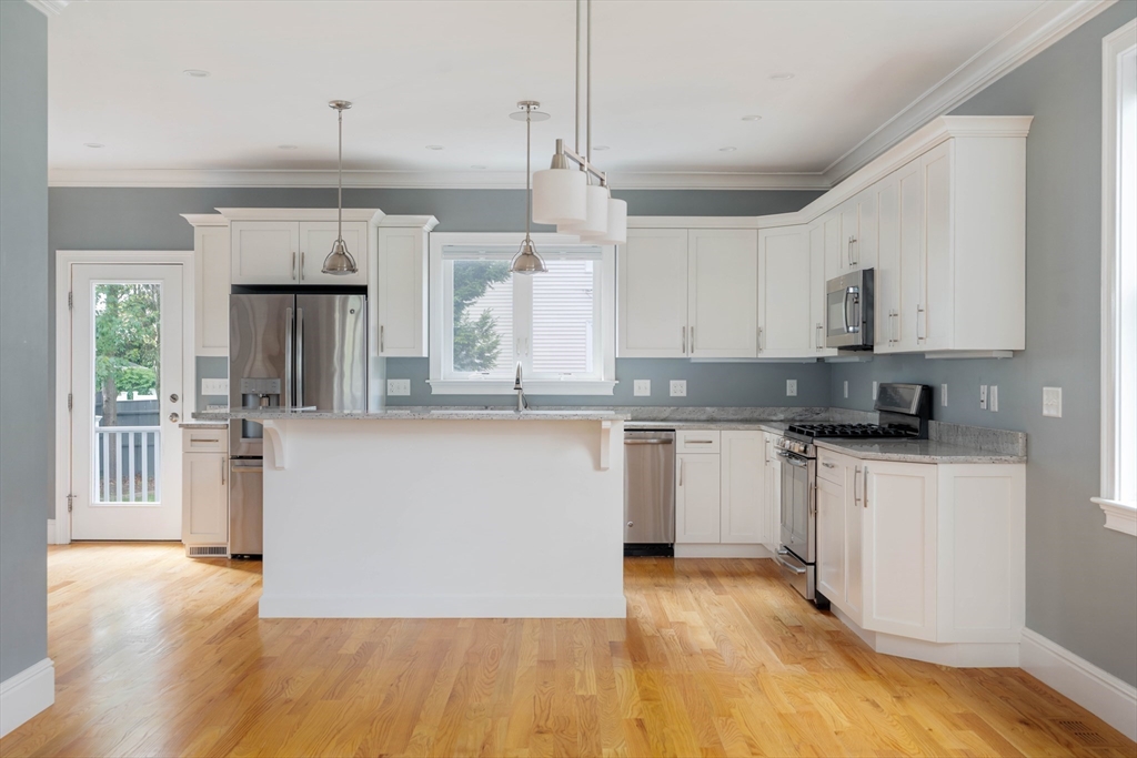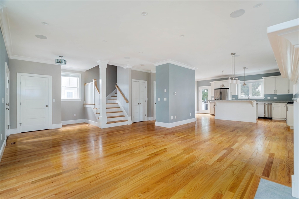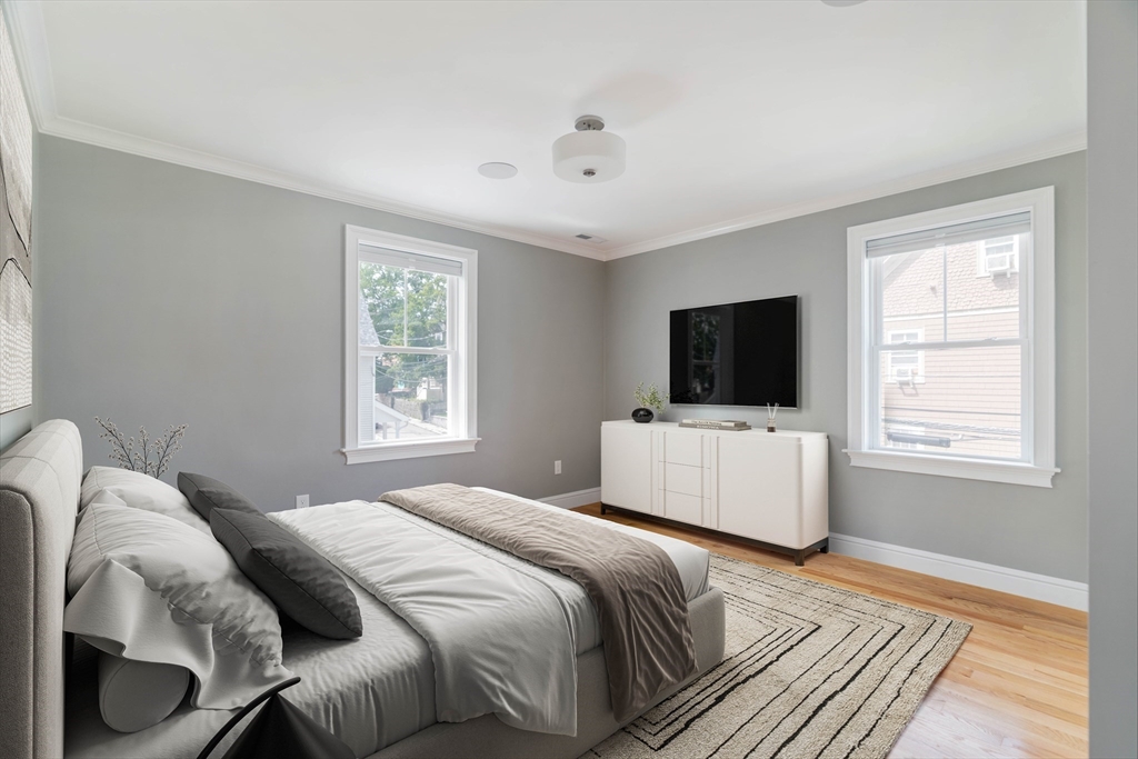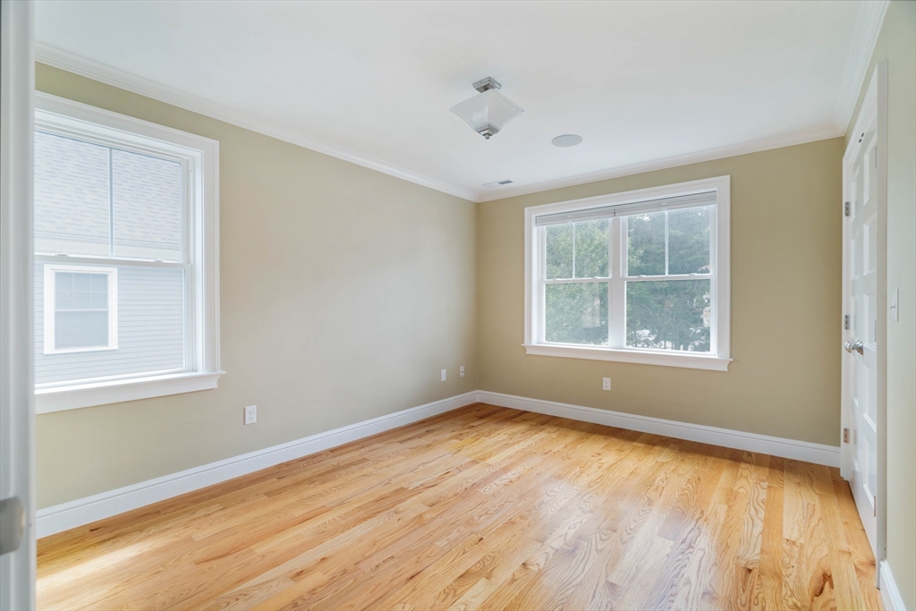 Bathed in natural light, this newer construction Colonial in Roslindale offers 3 bedrooms plus a spacious third-floor suite, an open layout, and a fully fenced backyard perfect for summer fun. The main level includes a stylish kitchen, dining area, and living room with a cozy gas fireplace. A dream laundry room and generous closets add everyday ease. Upstairs, the expansive primary suite features bay windows, walk-in closet, soaking tub and glass shower, with two more bedrooms and a full bath close by. The third floor offers flexible space for a bedroom, office, or playroom, plus a large storage room with potential for a bath or studio. Additional highlights include central A/C, built-in sound system, smart security, irrigation, central vac, off-street parking, and a walk-out basement. Ideally located near the Arboretum and Roslindale Village with easy access to the T, this home combines modern comfort, space, and convenience.