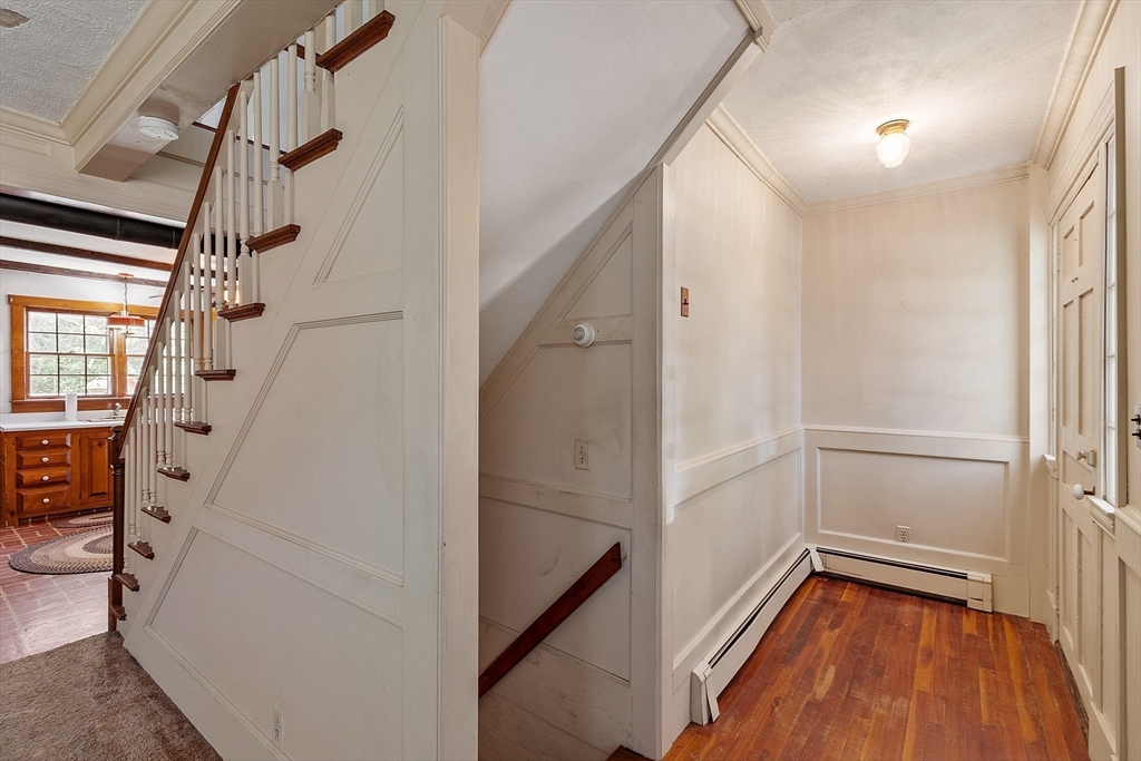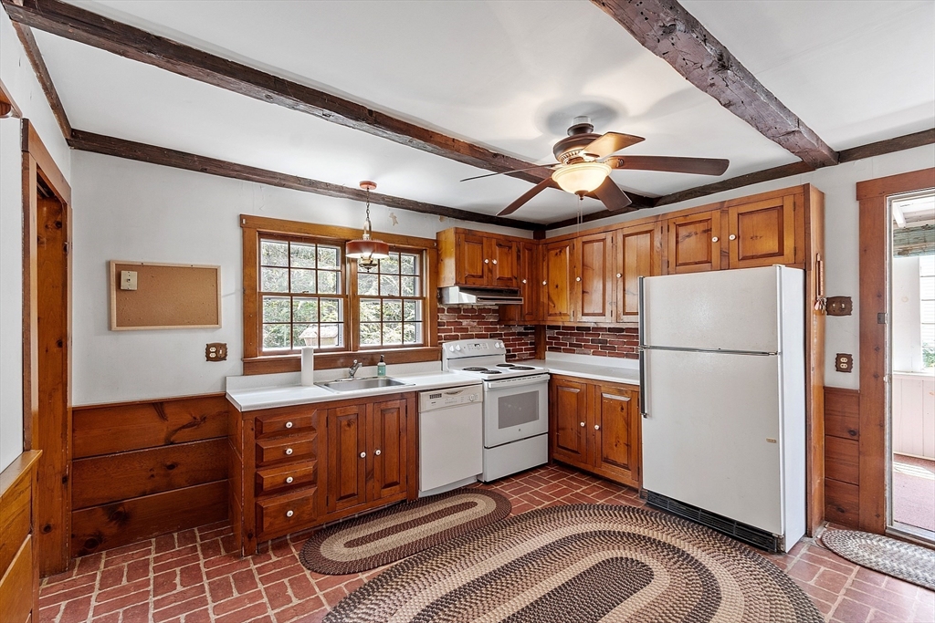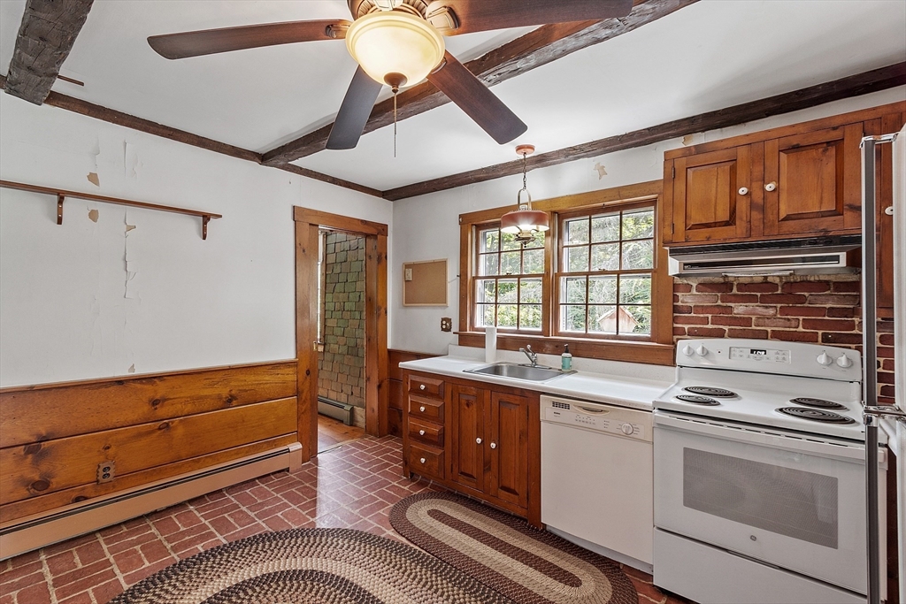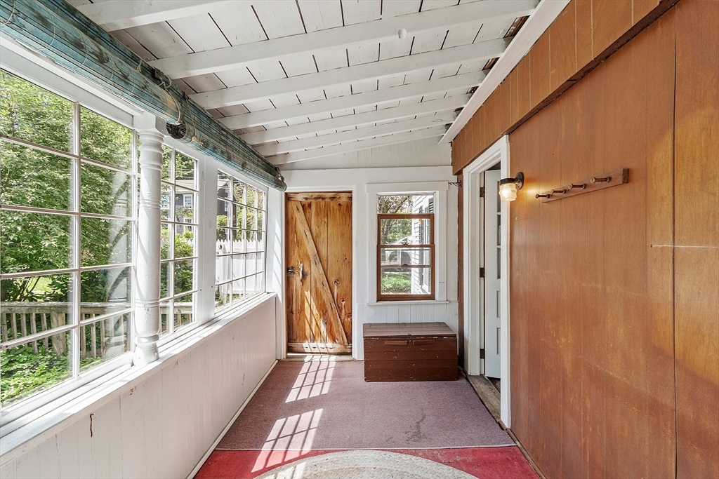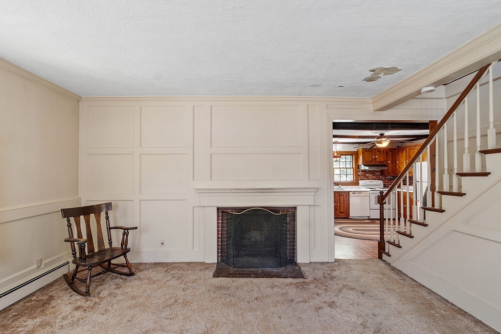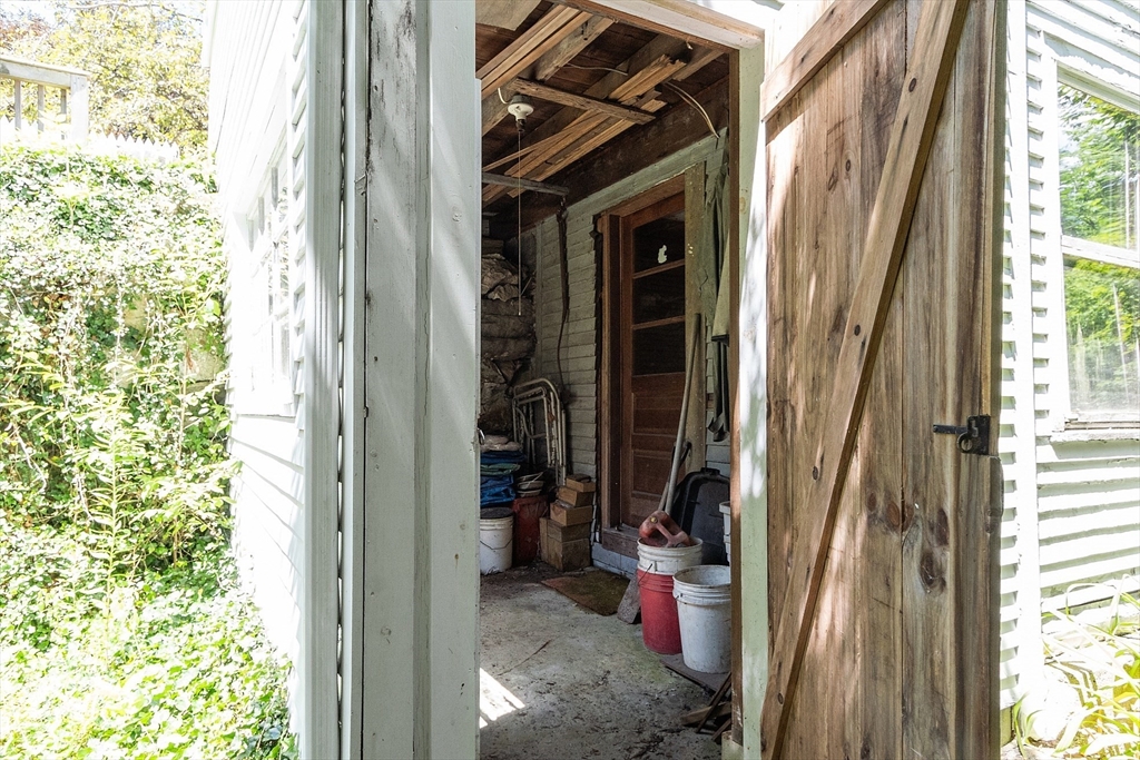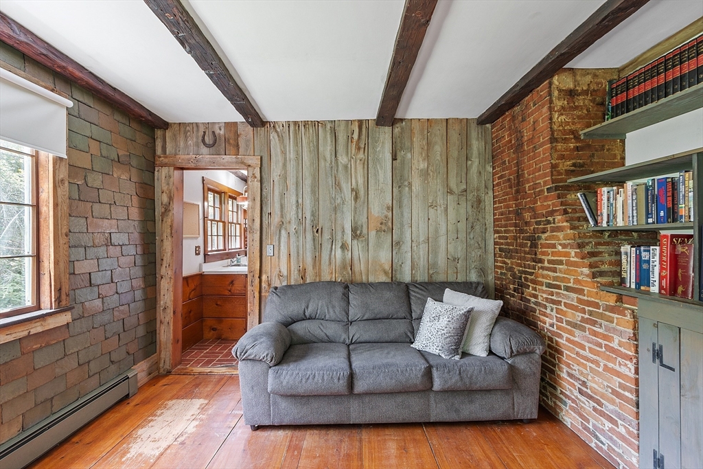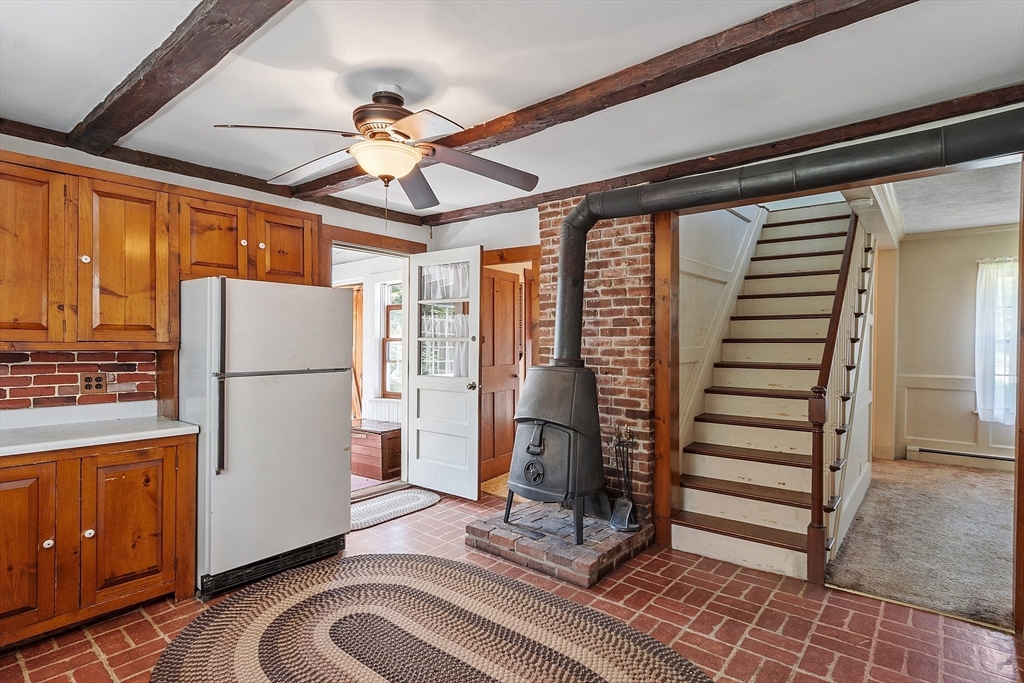 Charming in-town antique home, offered for the first time in 66 years! Built around 1834, this character-filled property offers a rare opportunity to restore and personalize. Features include an eat-in kitchen with a wood stove, a first floor bedroom overlooking the private backyard, and two original fireplaces—one is hidden with a Dutch oven. The living rooms fireplace and wood working detail adds warmth and charm. The upstairs bedroom offers wood floors and a lot of storage. The lower level has two mostly finished rooms with a slider to the side yard and brick patio. The sun filled three-season porch off the kitchen serves as a handy mudroom. A small greenhouse still holds the old coal furnac. There are several brick patios which add to the appeal. Not located in a historic district, giving you more flexibility for updates. Walk to Ashburnham's library, shops, restaurants and town center. Town water/sewer. Home needs work and is being sold As Is.