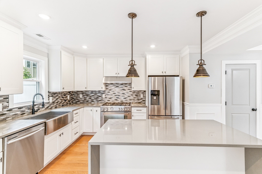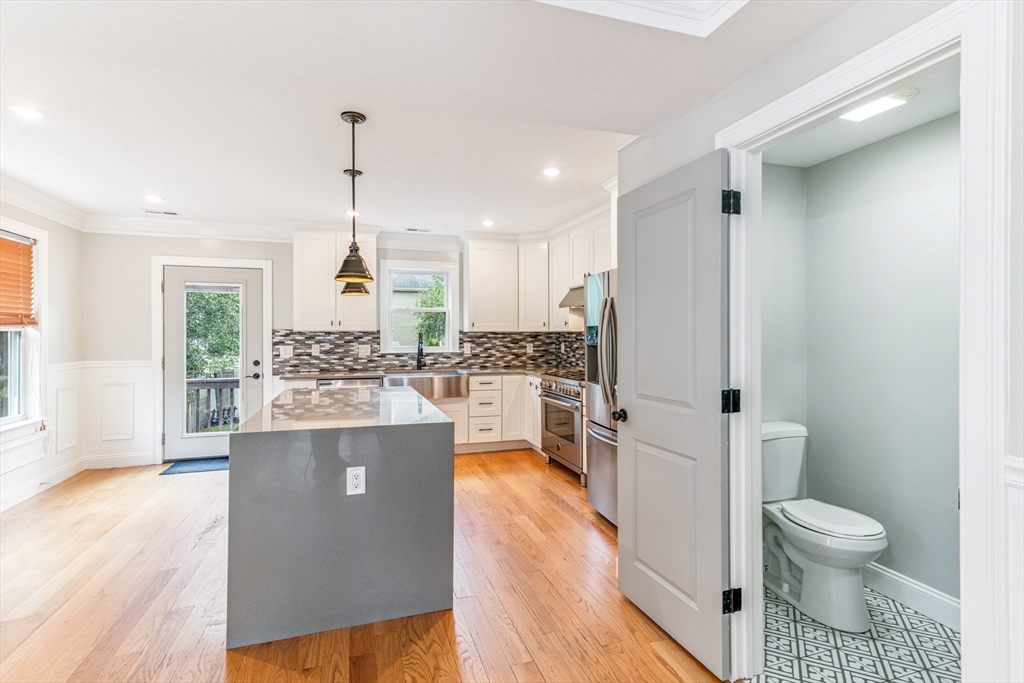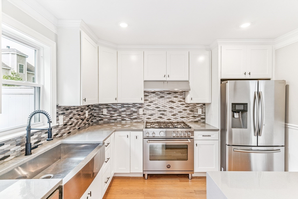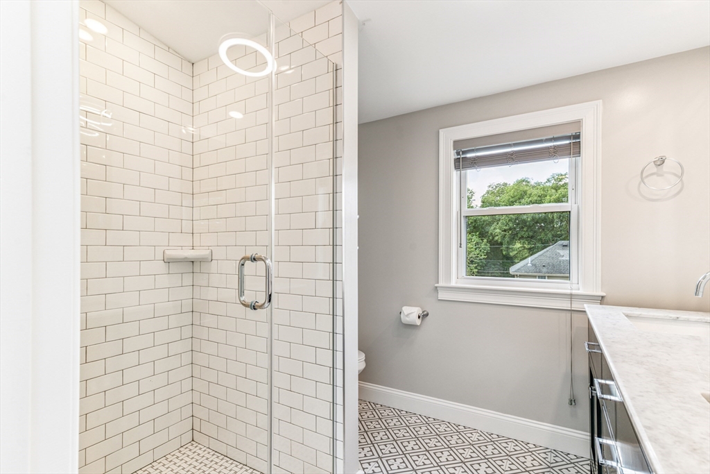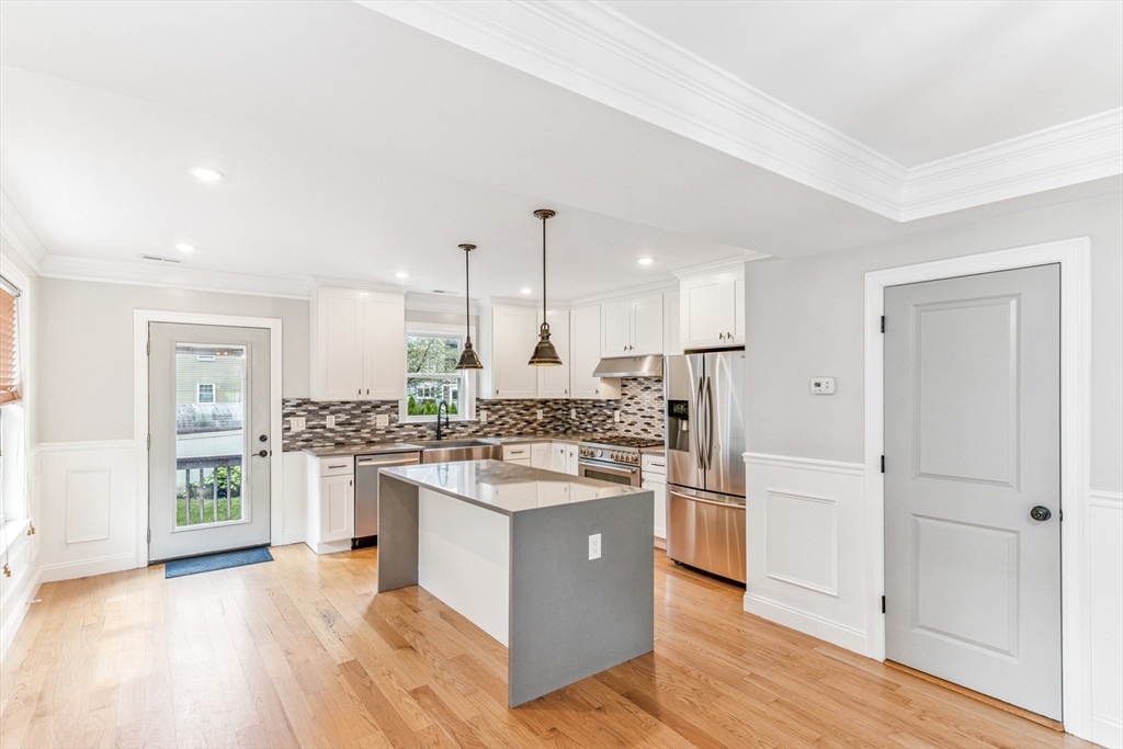 Welcome to a beautifully renovated condo on a quiet dead-end street in West Medford. This townhouse-style home offers the space and feel of a single-family home—without the upkeep. Fully gut renovated in 2018, it features an open-concept layout with a chef’s kitchen, quartz waterfall island, stainless appliances, farmhouse sink, and custom cabinetry. Hardwood floors run throughout the sunny living and dining areas, with a sleek half bath on the main level. Upstairs offers a spacious primary suite with spa-style bath and double vanity, two additional bedrooms, and a full hallway laundry station. Enjoy central air, garage parking, private outdoor space, and energy-efficient systems. Just minutes to the West Medford Commuter Rail, I-93, Route 2, Tufts, parks, trails, Medford Brewing, and Whole Foods. Walk to local shops and restaurants, enjoy weekend strolls along the Mystic River, and commute easily into Boston or Cambridge.