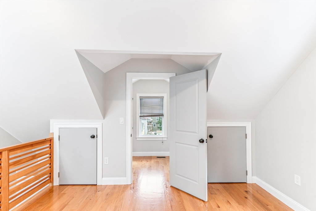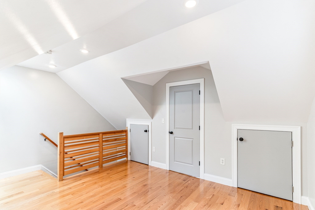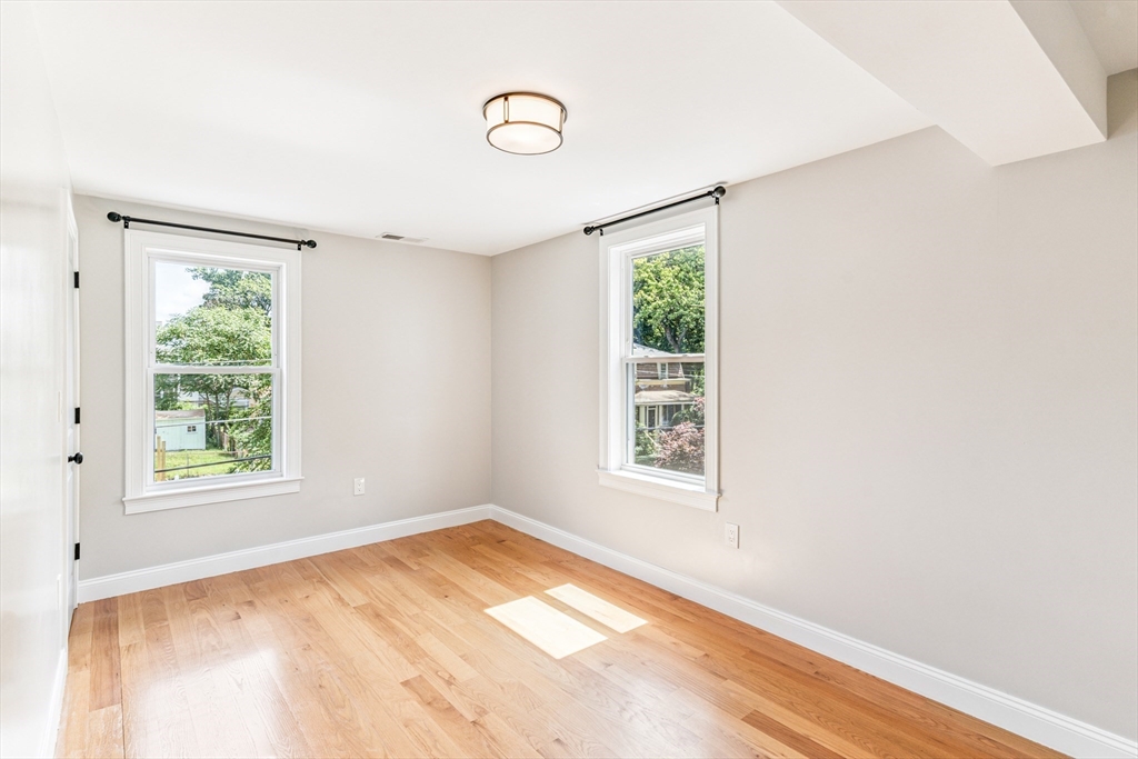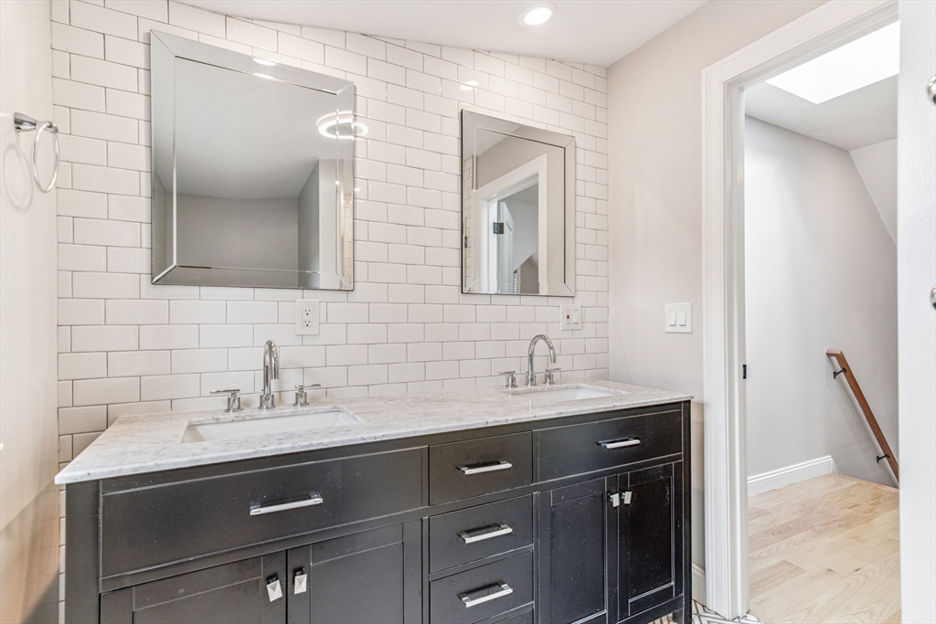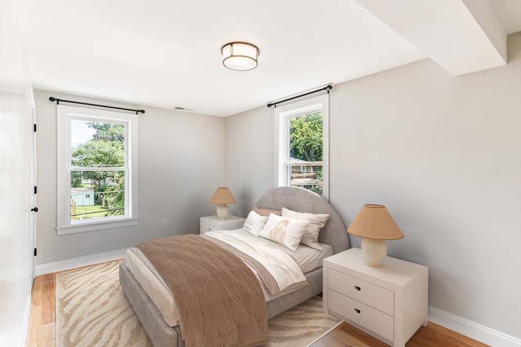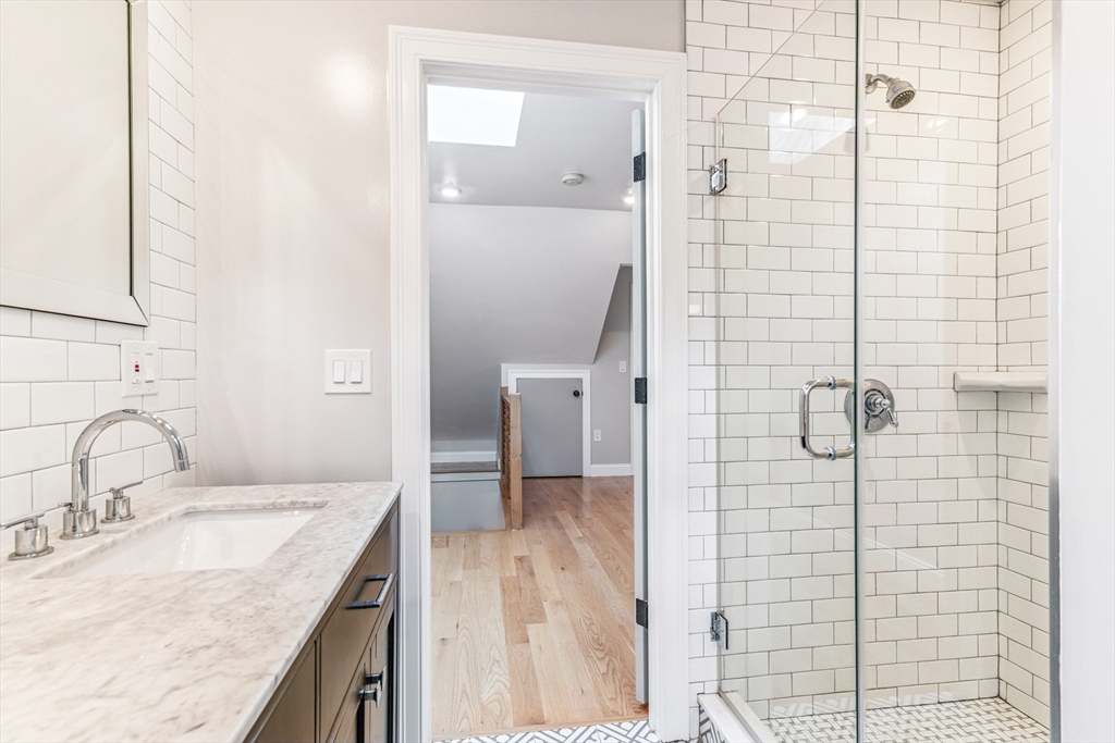 Welcome to a beautifully renovated condo on a quiet dead-end street in West Medford. This townhouse-style home offers the space and feel of a single-family home—without the upkeep. Fully gut renovated in 2018, it features an open-concept layout with a chef’s kitchen, quartz waterfall island, stainless appliances, farmhouse sink, and custom cabinetry. Hardwood floors run throughout the sunny living and dining areas, with a sleek half bath on the main level. Upstairs offers a spacious primary suite with spa-style bath and double vanity, two additional bedrooms, and a full hallway laundry station. Enjoy central air, garage parking, private outdoor space, and energy-efficient systems. Just minutes to the West Medford Commuter Rail, I-93, Route 2, Tufts, parks, trails, Medford Brewing, and Whole Foods. Walk to local shops and restaurants, enjoy weekend strolls along the Mystic River, and commute easily into Boston or Cambridge.