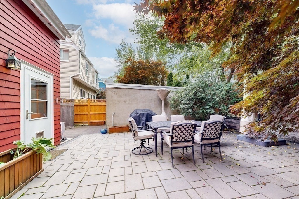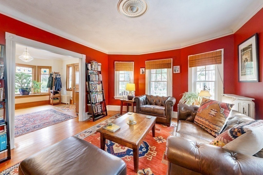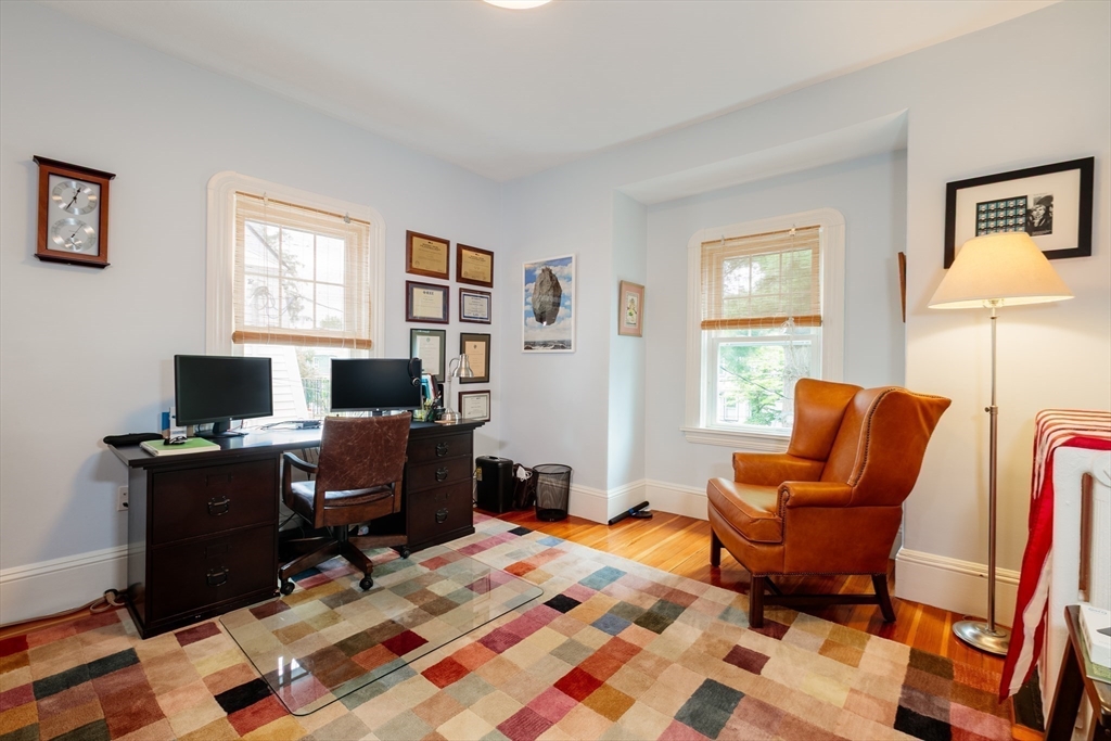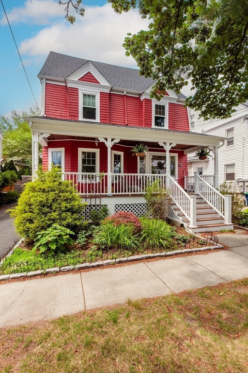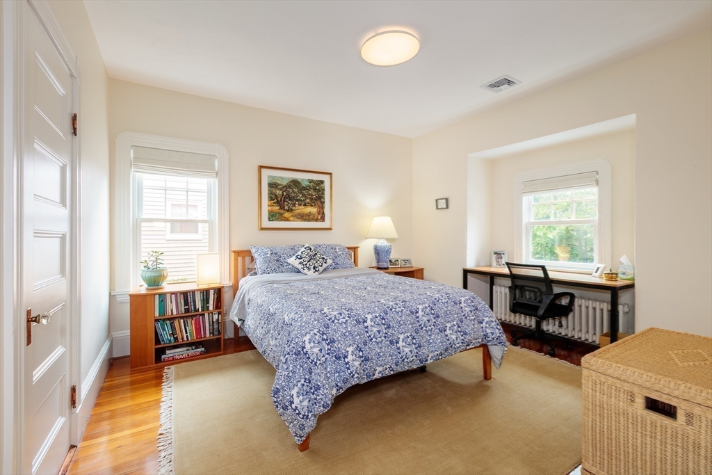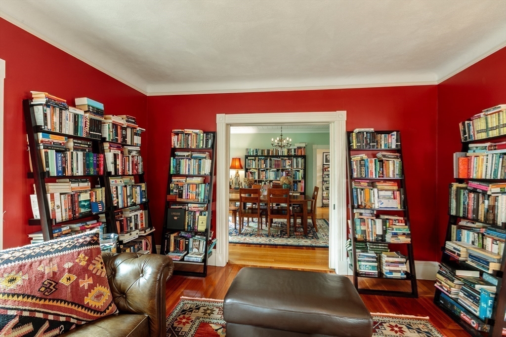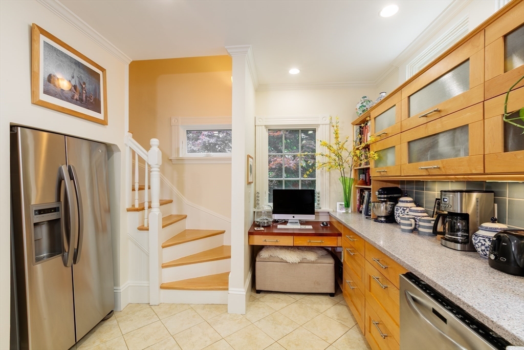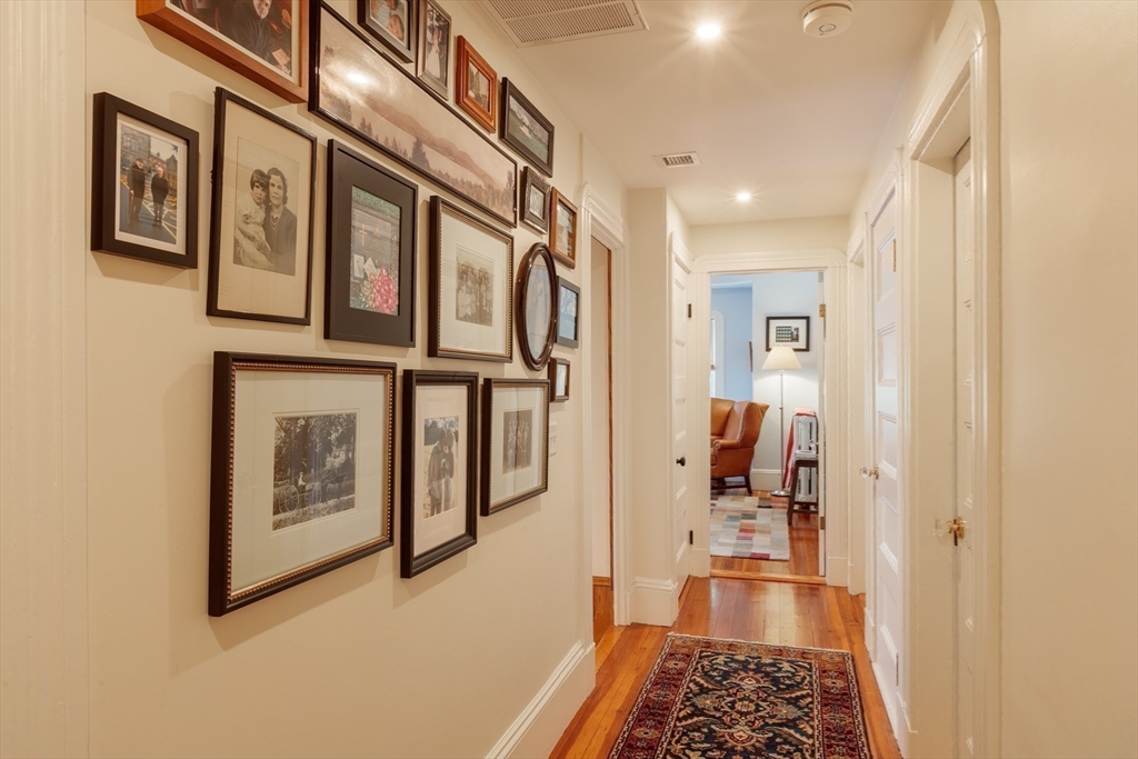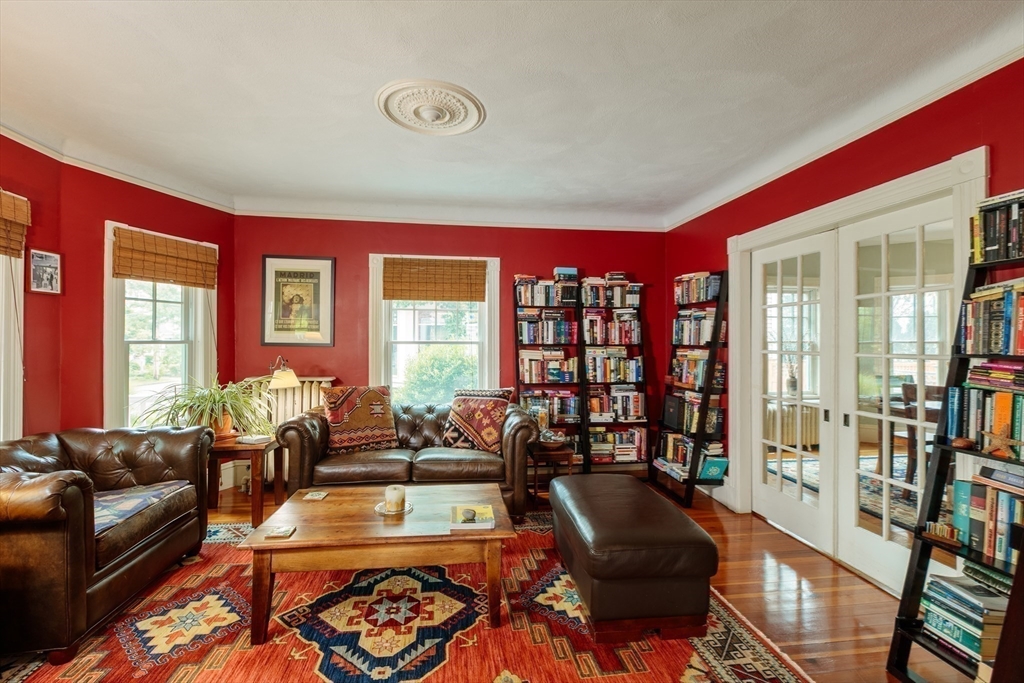 Highland Rd is known and loved for its wide median strip of grass and lg Col. Revival style homes. From the roomy front porch, original oak door w/stnd glass sidelights opens to beautiful foyer w/tin ceiling, bay windows w/stnd glass, hall closet, wd fl. LR features cove ceiling w/ctr medallion and French pocket doors to DR w/ tin ceiling. Spacious kitchen has tiled floor, ample light wd cabinets, ss appliances, multi windows, solid surface cntrs, tile bksplash, built-in desk, and backstair. Hall off kitchen leads to 1/2 bath and door to yd + bsmt. Front stair leads to 3 bdrms, linen clst, and full spa bath w/separate tub and walk-in shower. The entire top fl is a stunning flex space (bdrm/family room/studio) w/cathedral ceiling, electronic skylights, and ceiling fans. Cntrl air. Fenced yd has lg patio, curved retaining wall, perennials, garage, and tall gate to long driveway. W/d in bsmt. Walk to 2 RedLine + 2 GLX stops, bike path, Lex. Park, shops, eateries, theaters, universities.