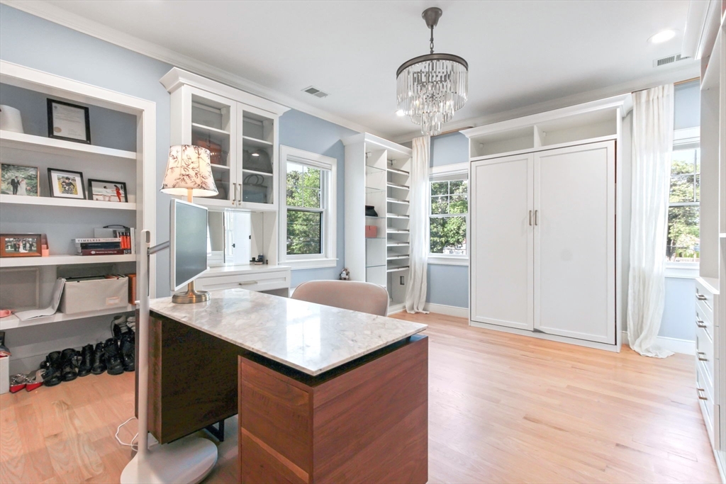 Luxury built in 2019 by Trio Builder and Architecture McKay! !–Located on a large corner lot in the sought-after Oak Hill Park neighborhood, this stunning custom-built home offers spacious three levels—ideal for growing or multi-generational families. Enjoy 10’ ceilings on the main level, a chef’s kitchen with Jenn-Air appliances, custom cabinets, quartz countertops, double ovens, and a wet bar—open to a bright family room with gas fireplace and access to a fenced yard and stone patio, gleaming white oak floor through out. Upstairs, you’ll find 4 en-suite bedrooms, including a luxurious primary suite with a custom walk-in closet and spa-like bath. A convenient 2nd-floor laundry adds everyday ease.The walkout lower level features 2 more bedrooms, full bath, gym, and entertainment space with wine fridge—great for guests, teens, or in-laws.Additional highlights: Heated 2-car garage with epoxy floors, central vacuum, and beautifully crafted living spaces throughout!