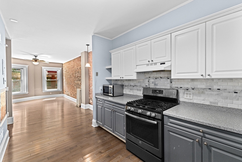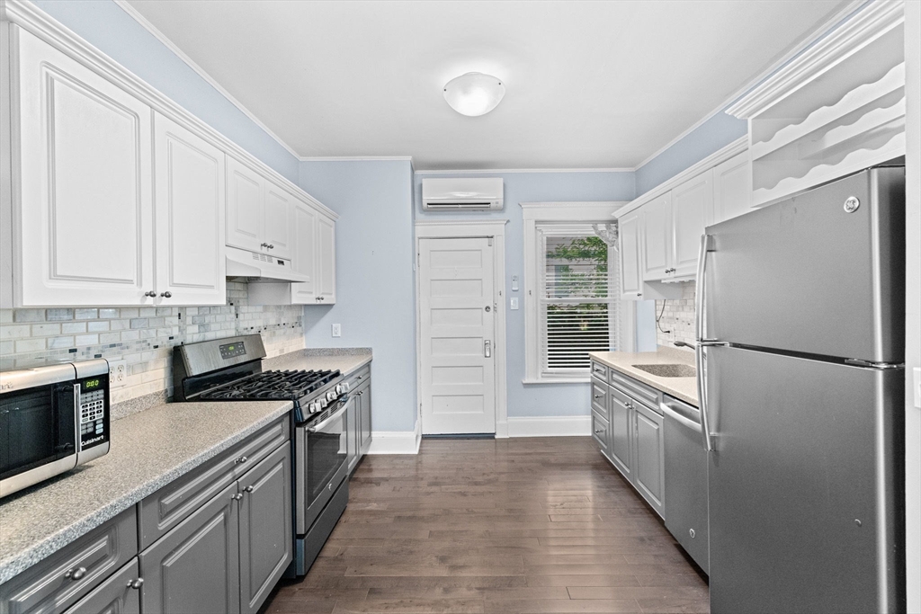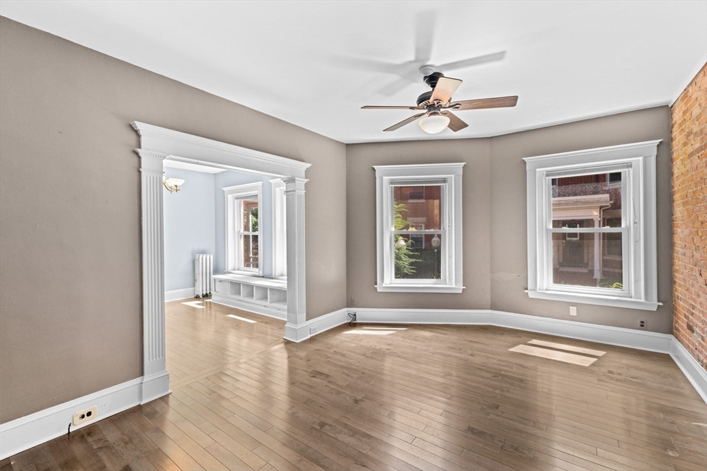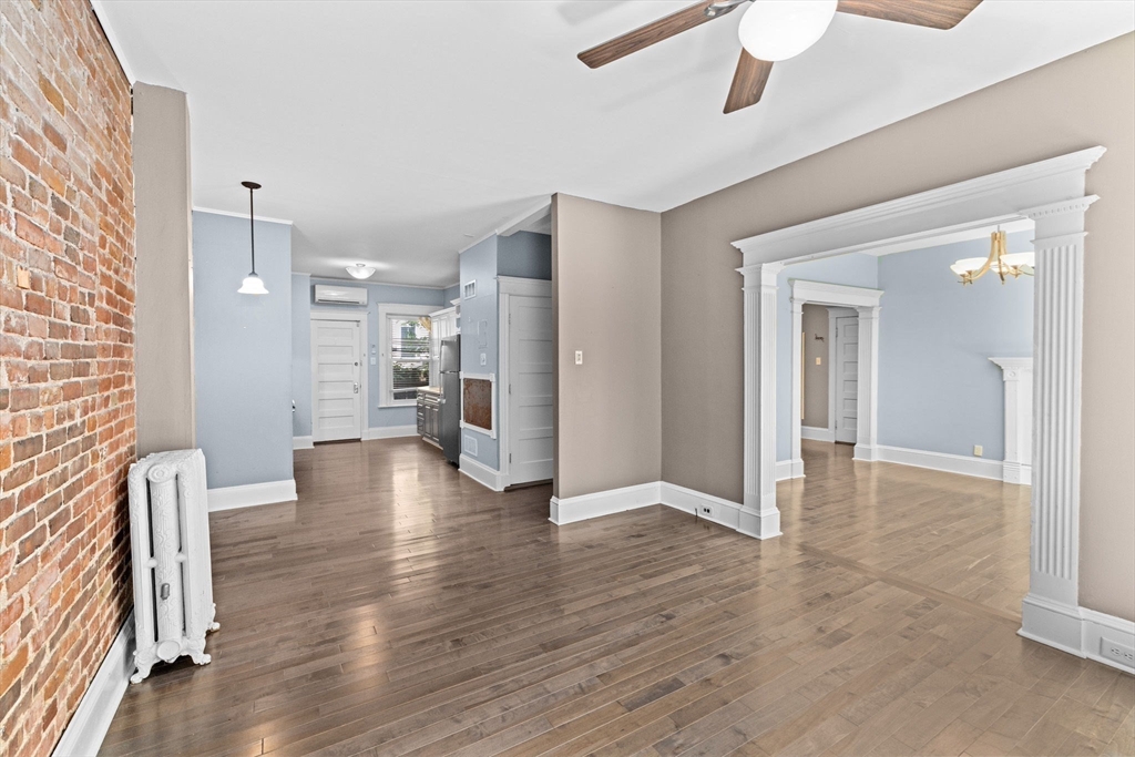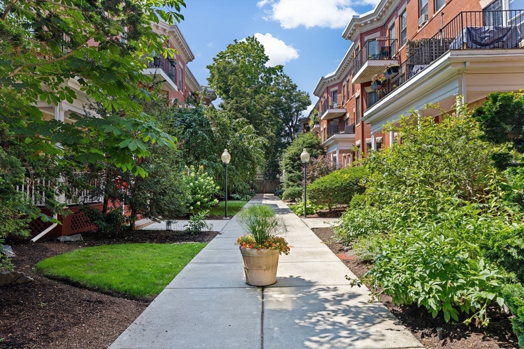 Set within a beautifully landscaped courtyard between Coolidge Corner and Brookline Village, this spacious and sunlit 3-bedroom blends charm, function, and location. Featuring a thoughtful floor-through layout with high ceilings, gleaming hardwoods, and period details throughout, this home offers a large living area with exposed brick, a formal dining room, and a spacious updated eat-in kitchen with custom cabinets, Corian counters and SS appliances. The newly updated bathroom, front porch and rear deck add comfort and character. Central-air, deeded storage and In-Unit laundry, plus rental parking nearby. Ideally located near the C and D lines, multiple bus routes, Trader Joe’s, shops, restaurants, parks, and top-rated Pierce School. A rare opportunity in one of Brookline’s most sought-after neighborhoods.