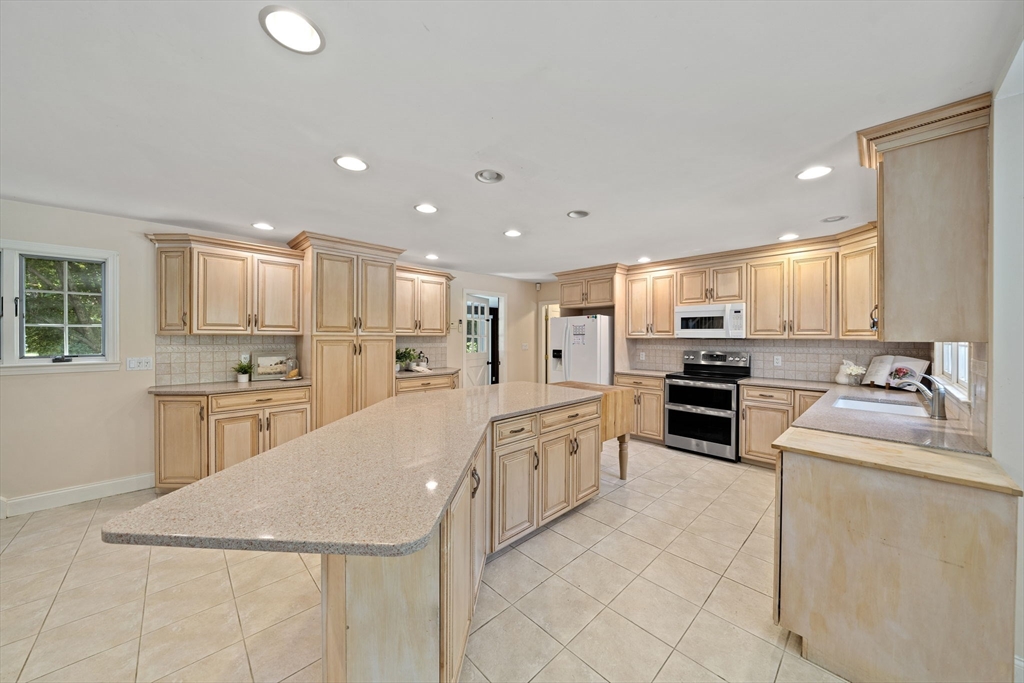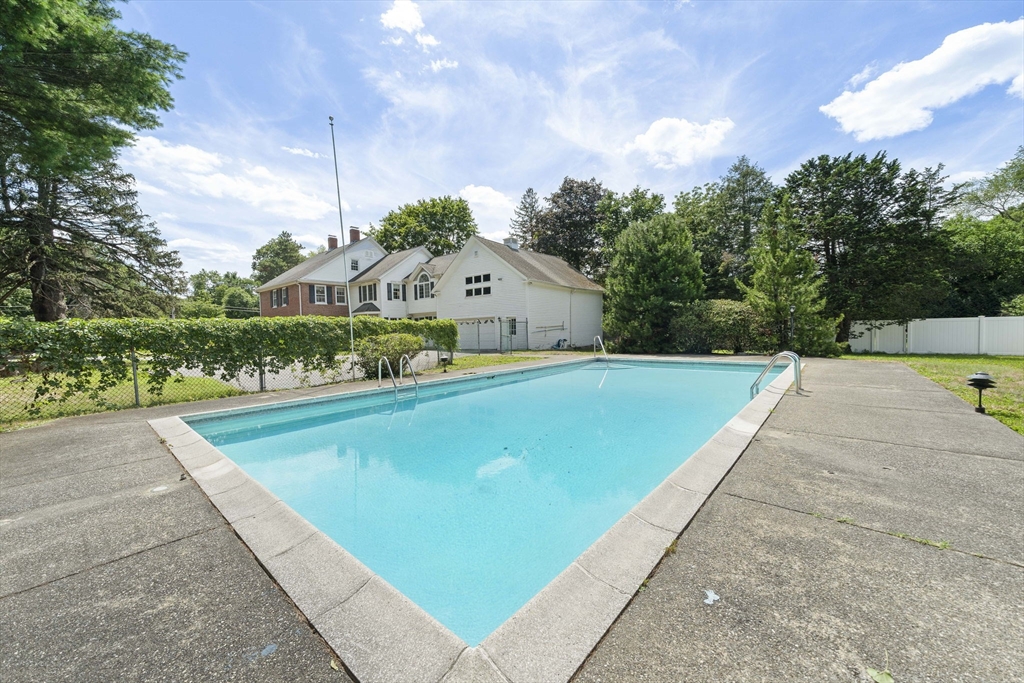 Rare opportunity to own one of Northboro’s distinctive Federalist homes. Set on a desirable street close to the town center and commuter routes, this property boasts timeless character, generous space, and lots of potential. The almost 1 acre level lot features a private in-ground pool and room for outdoor living, or the option for an ADU (accessory dwelling unit). 1st fl offers a formal library with fireplace, expansive living room with 2nd fireplace, formal dining room, and large country-style kitchen with wood cabinetry, large island and stone counters. 2nd fl has a spacious primary bedroom ensuite with a large whirlpool bath illuminated by a Palladian window, double vanity, and separate shower. 3rd fl includes bonus rooms ideal for an office or hobby area. An oversized barn-style two-car garage with EV charger outlet leads to a huge loft above that could be a working studio. Full of charm, flexible space, and set on an exceptional lot—this is a home with room to make your own!
