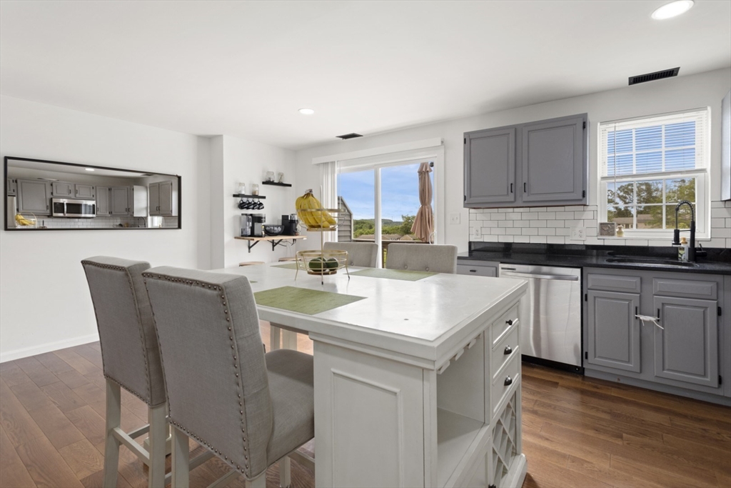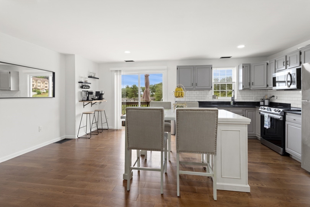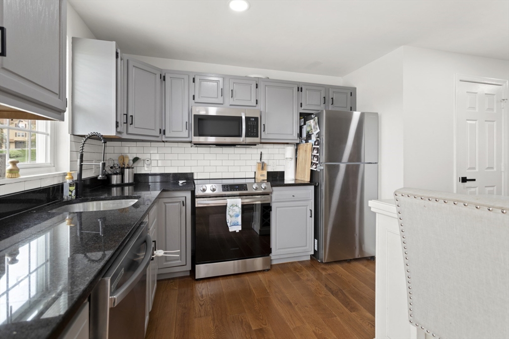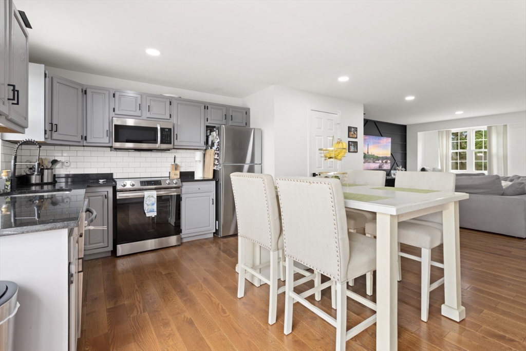 Spacious and sunlit renovated Mercury Terrace condo. Located in Haverhill right off of 495 is a commuter's dream. Amazing open concept kitchen, dining, and living room. The main level has an updated kitchen with high quality appliances and a half bath that is perfect for guests. The upper level has two generous sized bedrooms with large closets. The bathroom is spacious and includes in unit washer/dryer. Bonus room off of the garage perfect for a home office. Some of the updates include hardwood, granite counter tops, updated vanities, HVAC and water heater in 2023. Low HOA. Plenty of storage with attic access and garage space. An abundance of guest parking.