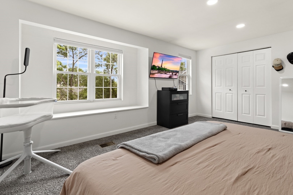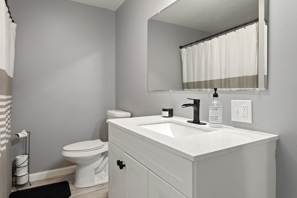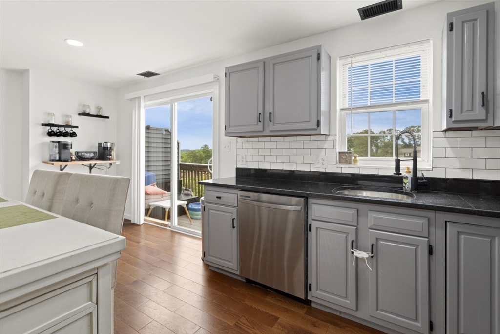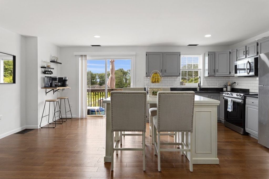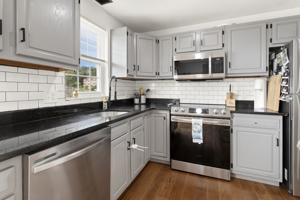 Spacious and sunlit renovated Mercury Terrace condo. Located in Haverhill right off of 495 is a commuter's dream. Amazing open concept kitchen, dining, and living room. The main level has an updated kitchen with high quality appliances and a half bath that is perfect for guests. The upper level has two generous sized bedrooms with large closets. The bathroom is spacious and includes in unit washer/dryer. Bonus room off of the garage perfect for a home office. Some of the updates include hardwood, granite counter tops, updated vanities, HVAC and water heater in 2023. Low HOA. Plenty of storage with attic access and garage space. An abundance of guest parking.