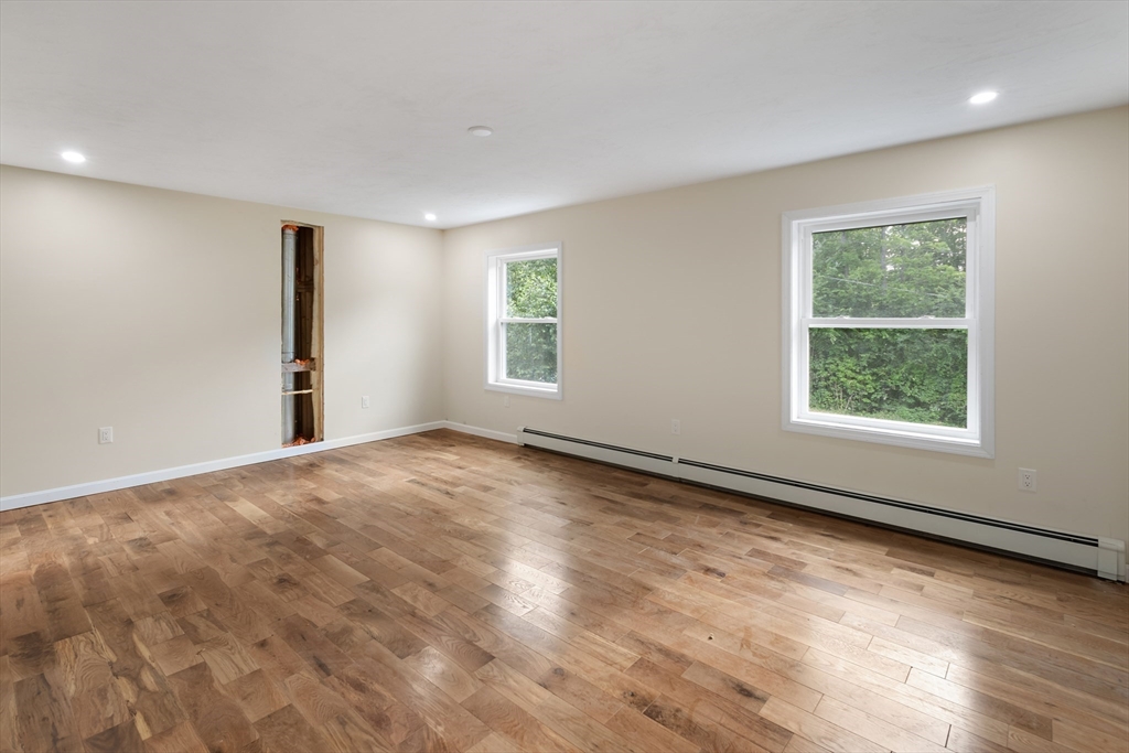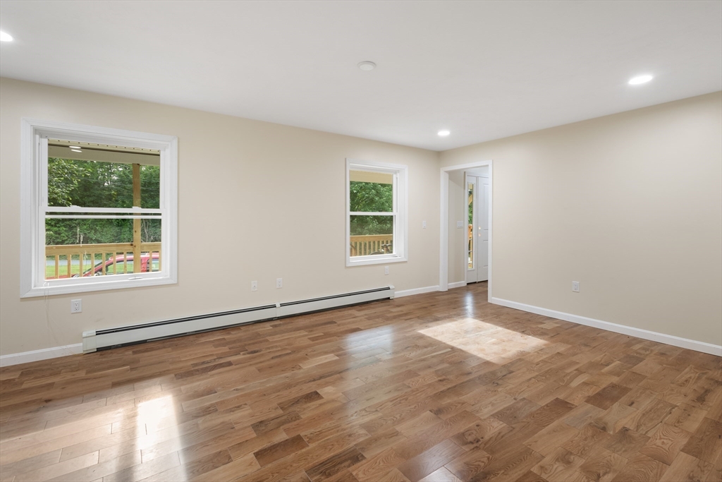 So many living arrangement options here with 2 main BR suites in opposite ends of the home & 3 1/2 baths! Finished area w full bath & walk in storage above oversized garage could be in-law area or huge game room. Additional living space in finished, heated walk-out basement. All new hardwood floors throughout with tiled bathrooms. The 28' long covered front porch is a warm welcome that leads into a cathedral family room. All new wood cabinets in kitchen with island, dining space and sliders to a large deck. If you act quickly, you will have time to choose your granite countertops. The yard is huge! There is room for all activities and gardening! The location is on a dead-end street that was a treasured family farm. It's just minutes to all schools, highways & shopping. Finishing touches being completed & occupancy should be available for end of July. Patio & porch stairs being done. Appointment required with showingtime.