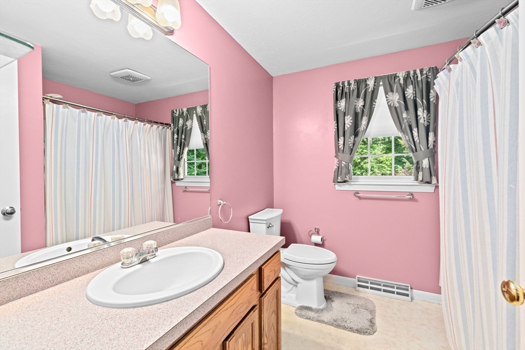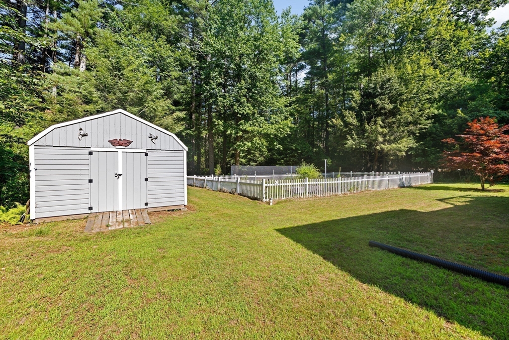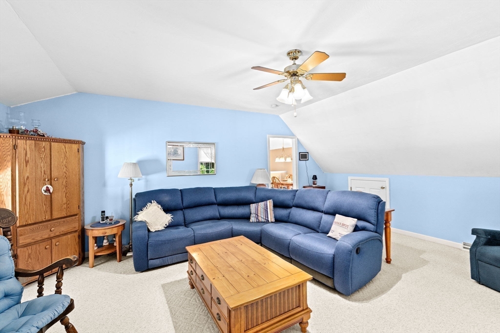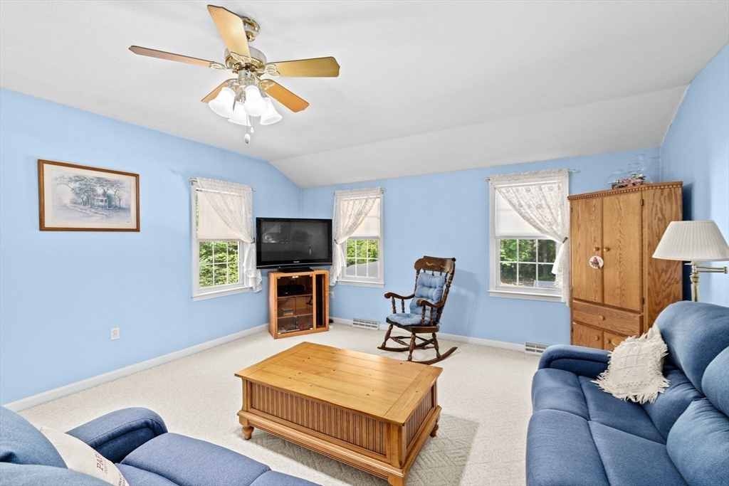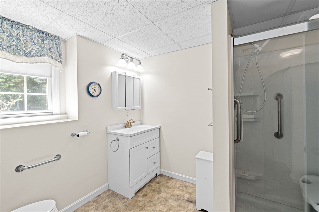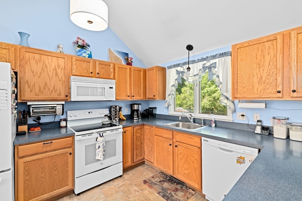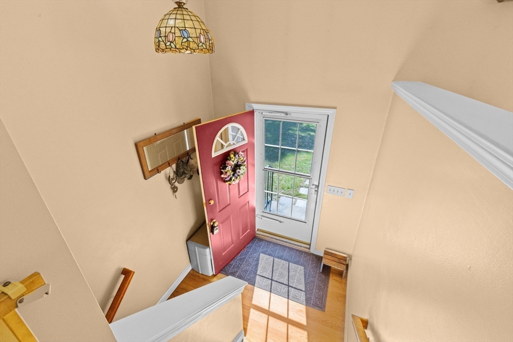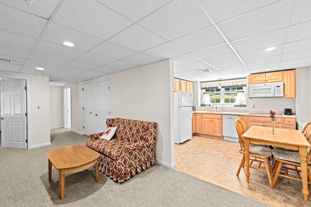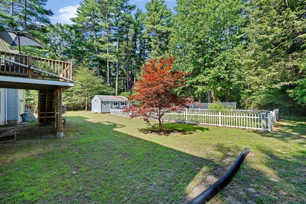 Impeccable, well-maintained, bright home featuring an open layout with cathedral ceilings. Set far back from the road on a beautiful level lot spanning over one acre, the main level of the home features three bedrooms, a full bathroom, a living room with vaulted ceiling, and an open kitchen/dining room with cathedral ceilings. The spacious kitchen has a peninsula for additional counterspace, and a sliding door that leads to the lovely deck overlooking the private, expansive backyard. The lower level has an expansive in-law suite with an oversized full bathroom and complete kitchen, family room, and a bonus room that can be used as a 4th bedroom, home office or playroom. The expansive level yard includes a large, fenced garden perfect for home-grown vegetables. Additional special features include a large one-car attached garage, whole house water filter, central AC, spacious outdoor shed, and generator hookup. A bright, airy home in a beautiful, tranquil, private setting.