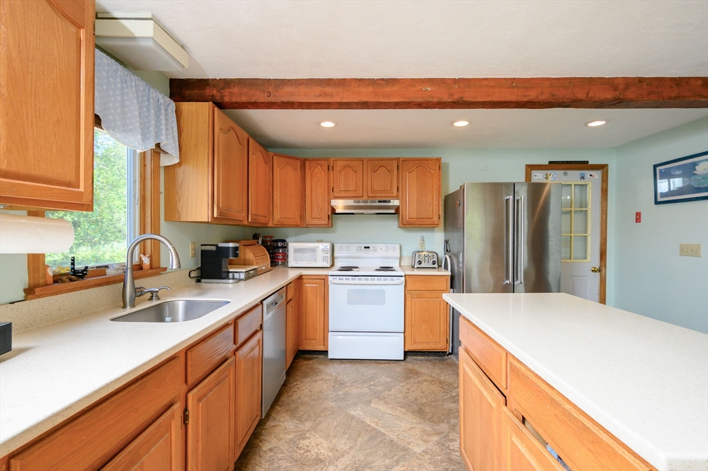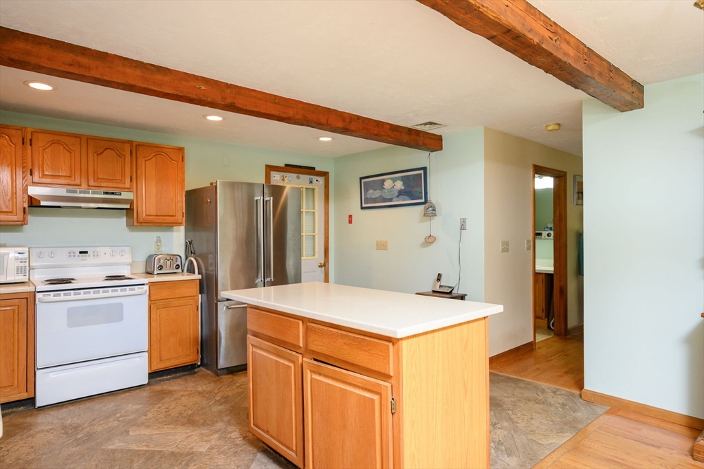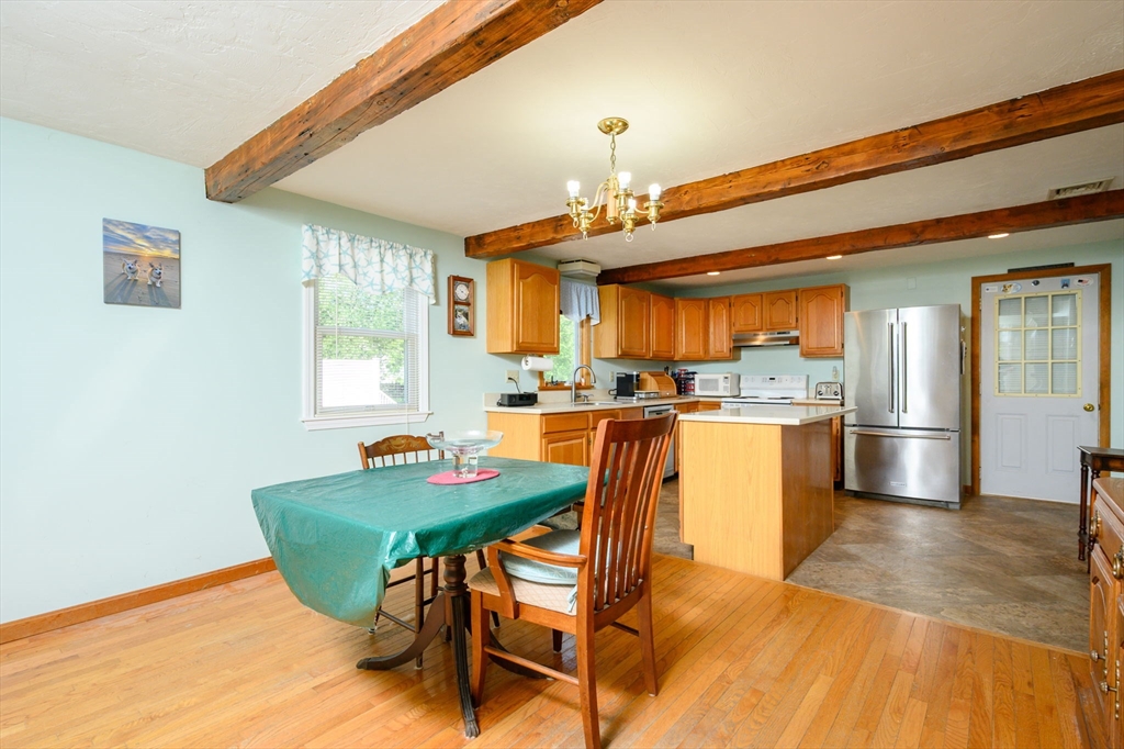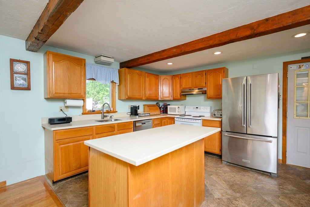 Welcome to 54 Katherine St – where comfort, character, and convenience come together! This well-maintained 3-bedroom, 2-bath Colonial offers 2,000 sq ft of living space and sits on a private, beautifully landscaped 0.40-acre lot. The center island kitchen features recessed lighting and flows seamlessly into a spacious front-to-back living room highlighted by charming exposed beams—perfect for everyday living and entertaining.Enjoy the comfort of central air, a whole-house generator, and the added bonus of a bright sunroom overlooking the peaceful backyard. The updated upstairs bathroom, hardwood flooring, and eat-in kitchen add warmth and functionality throughout. Outside, you'll find a large storage shed for all your tools and toys, and an attached garage with a mini split system—ideal as a workshop, gym, or additional flex space.Located just minutes from shopping, parks, the bus line, restaurants, and scenic Wessagusset Beach,