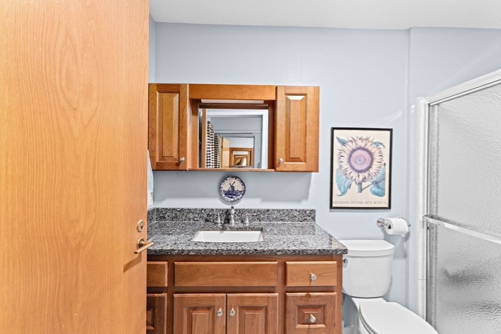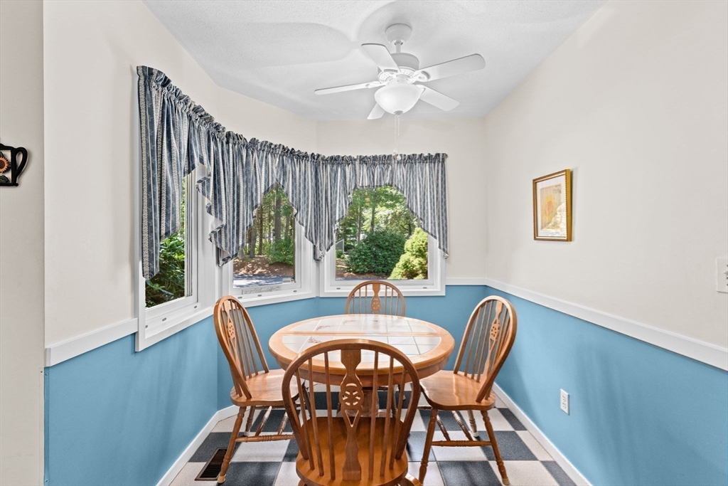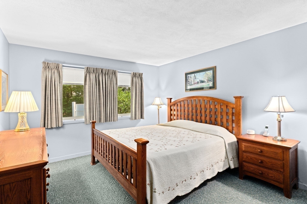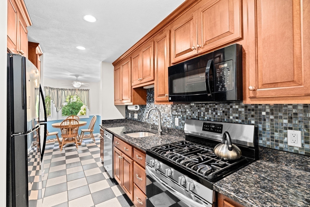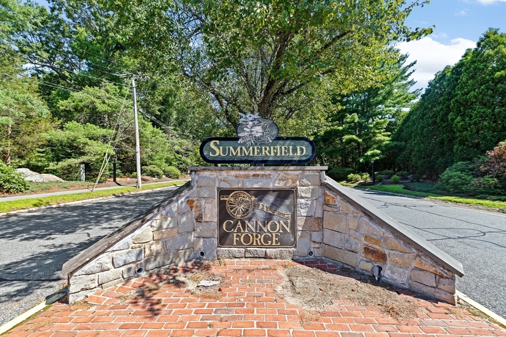 Ranch-style condo you’ve been waiting for—ideal in size, location, and value. This immaculate detached single-level property is tucked on a cul-de-sac in the desirable Cannon Forge community. Featuring an updated galley-style kitchen with granite counters, tile backsplash, upgraded cabinetry, that opens into a bright eat-in dining area with charming bump-out window. Enjoy a vaulted living room with hardwood flooring, stylish accent wall, and access to a private deck framed by a tree-lined backyard. The spacious primary suite offers wall-to-wall carpeting, ample closets, and updated bath with walk-in shower and granite vanity. The second bedroom/den is set up now as an office with built-in closet shelving. A finished lower level provides versatile bonus room and abundant storage. The community offers maintenance-free living with included amenities : inground pool, tennis, pickleball, playground, and a renovated clubhouse.Only minutes from I-95, Patriot Place, & shopping. Come see.