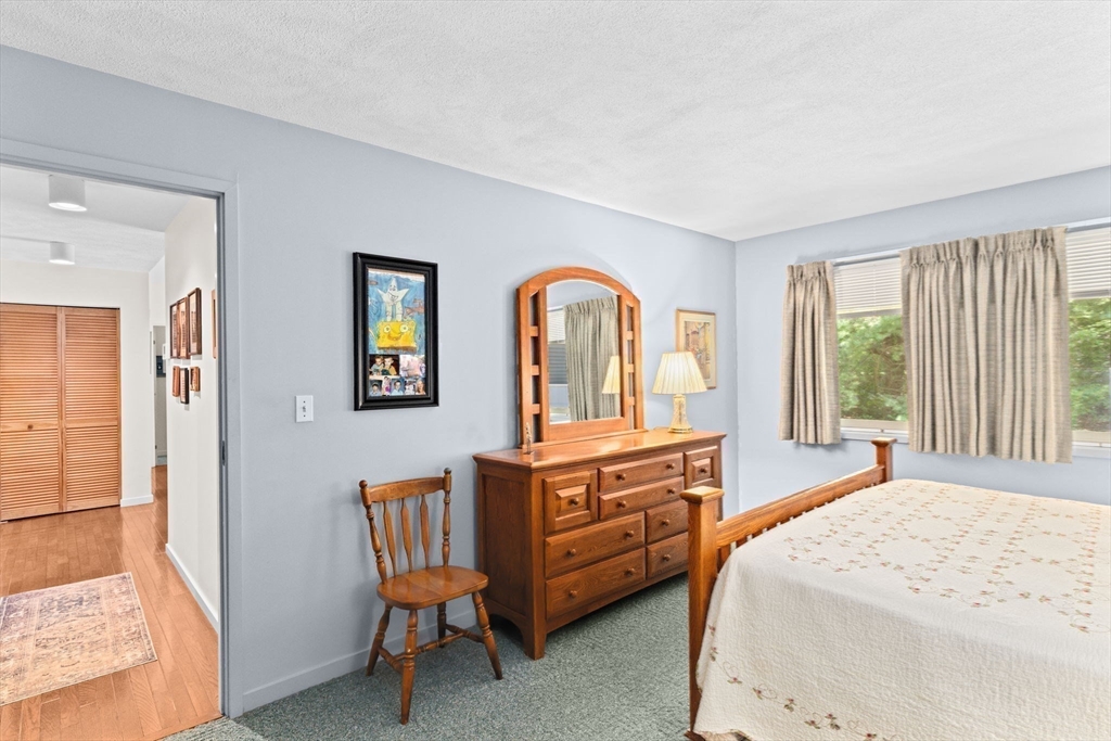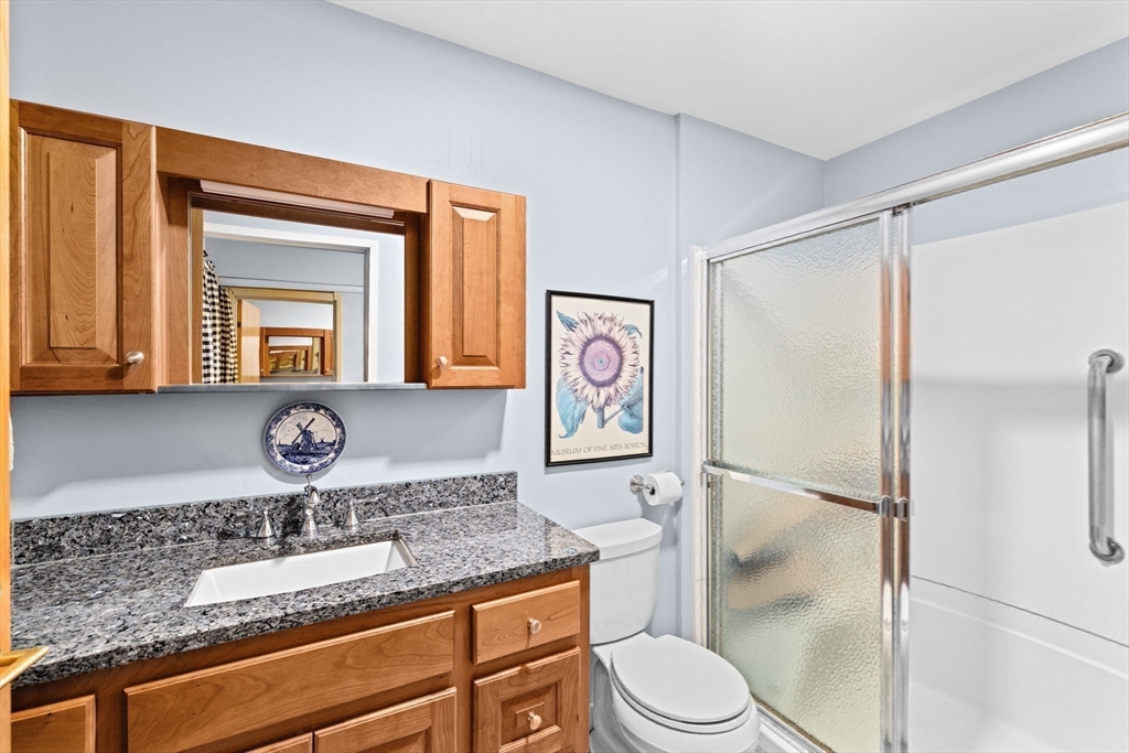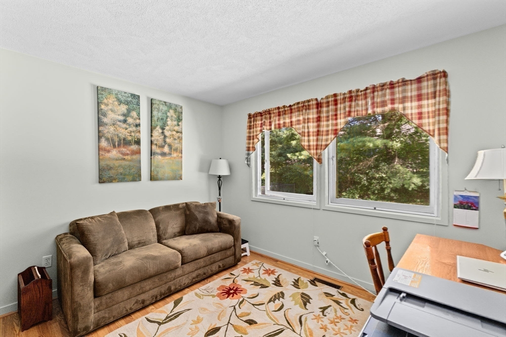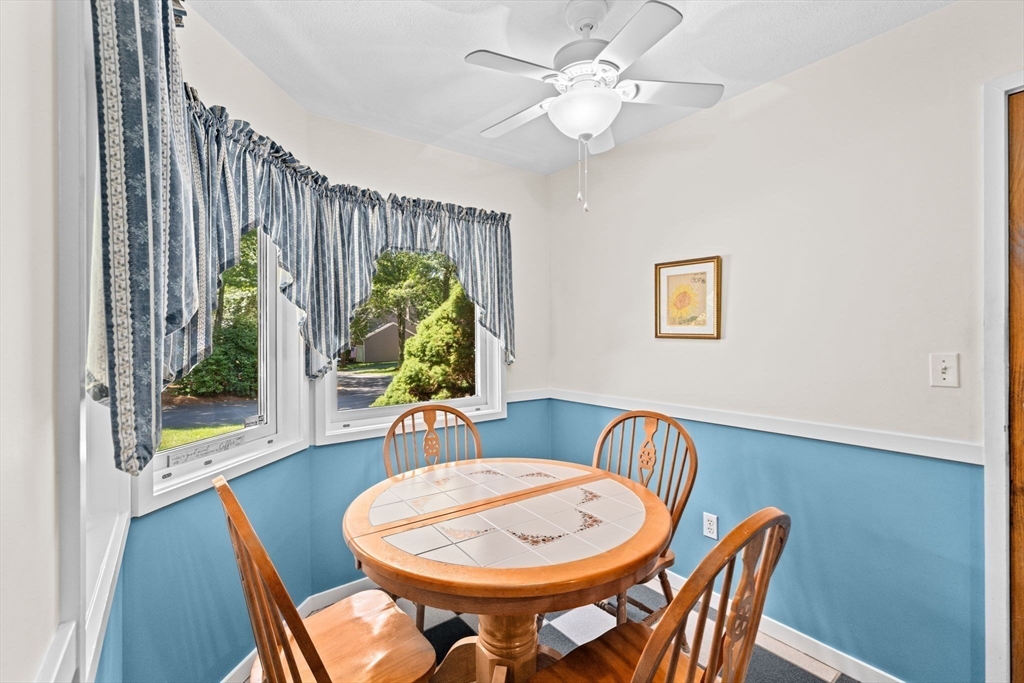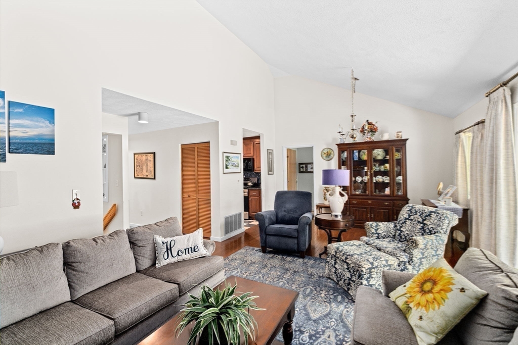 Ranch-style condo you’ve been waiting for—ideal in size, location, and value. This immaculate detached single-level property is tucked on a cul-de-sac in the desirable Cannon Forge community. Featuring an updated galley-style kitchen with granite counters, tile backsplash, upgraded cabinetry, that opens into a bright eat-in dining area with charming bump-out window. Enjoy a vaulted living room with hardwood flooring, stylish accent wall, and access to a private deck framed by a tree-lined backyard. The spacious primary suite offers wall-to-wall carpeting, ample closets, and updated bath with walk-in shower and granite vanity. The second bedroom/den is set up now as an office with built-in closet shelving. A finished lower level provides versatile bonus room and abundant storage. The community offers maintenance-free living with included amenities : inground pool, tennis, pickleball, playground, and a renovated clubhouse.Only minutes from I-95, Patriot Place, & shopping. Come see.