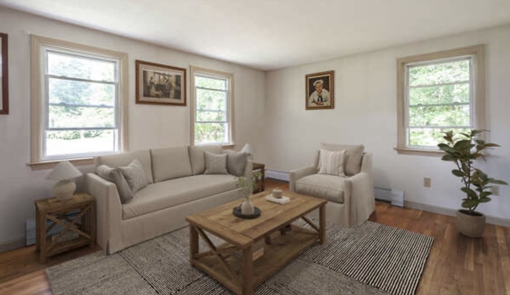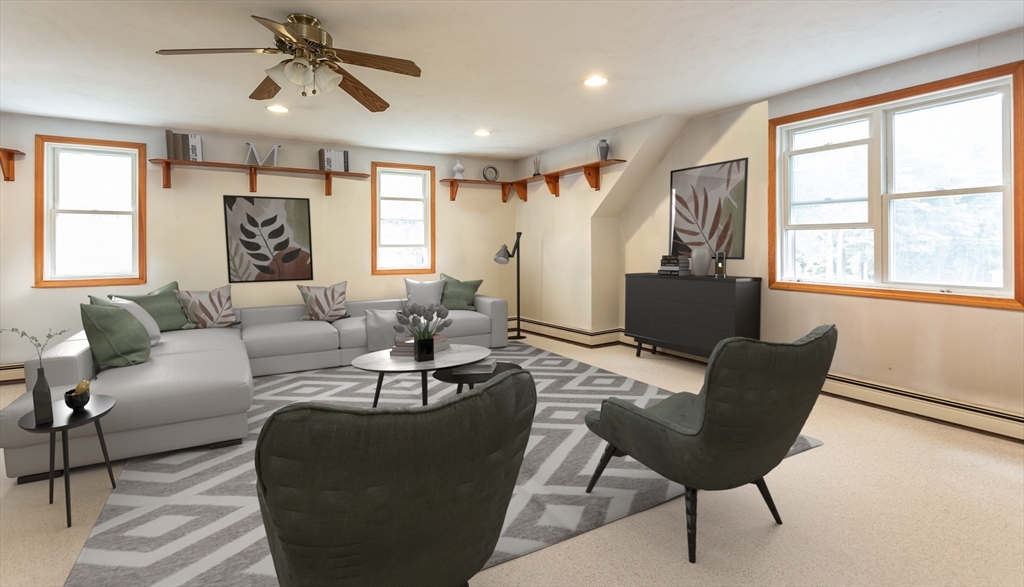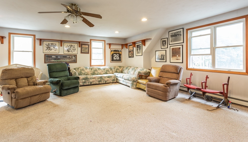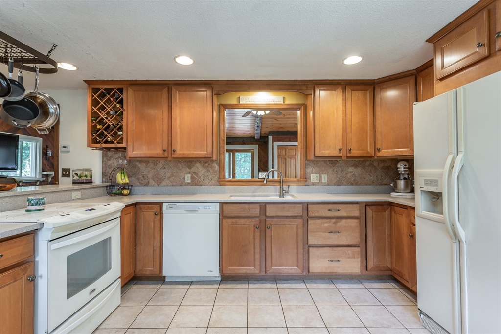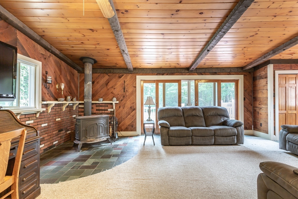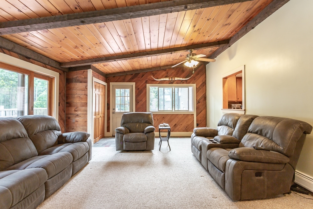 Welcome to this beautiful Cape Cod style home nestled in a desirable residential neighborhood. Offering 3 to 4 bedrooms and 2.5 bathrooms, this home is perfect for families of all sizes. The kitchen boasts a large counter bar, perfect casual dining, or entertaining guests. A pass-through window connects the kitchen to the generously sized family room, making it easy to serve food and stay connected with family or guests while cooking. This oversized Family Room opens onto an extra-large deck — ideal for outdoor gatherings, barbecues, or simply unwind and enjoy the peaceful surroundings Upstairs, you'll find a versatile GREAT ROOM located over the garage, offering plenty of space for a game room, home theater, or additional living area. This great room also includes a convenient 1/2 bath. This home combines classic charm with generous living spaces, creating a warm and welcoming environment inside and out. Oil tank and Rood new - 1 year.