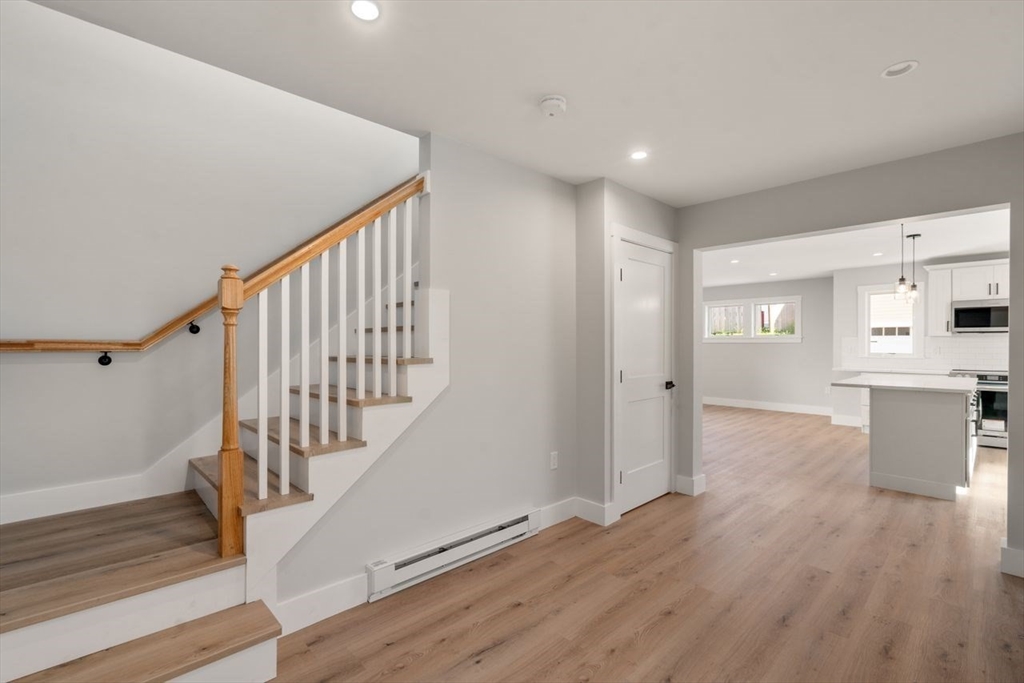 NEW CONSTRUCTION in the heart of downtown Gloucester. This beautifully crafted townhouse offers the perfect blend of fresh modern elegance and coastal charm. Enjoy a gourmet kitchen featuring stainless appliances, open concept layout and abundant natural light. Large living room with slider to your own private outdoor area. The one car garage offers parking below and additional large space above for storage, home office, gym, art studio etc., Just a short stroll from the train, shopping, and Gloucester's renowned beaches, the location could not be more convenient. No HOA fees make this a rare find. Whether your looking for a low maintenance year-round home or a weekend getaway by the sea, this move in ready property checks all of the boxes.
