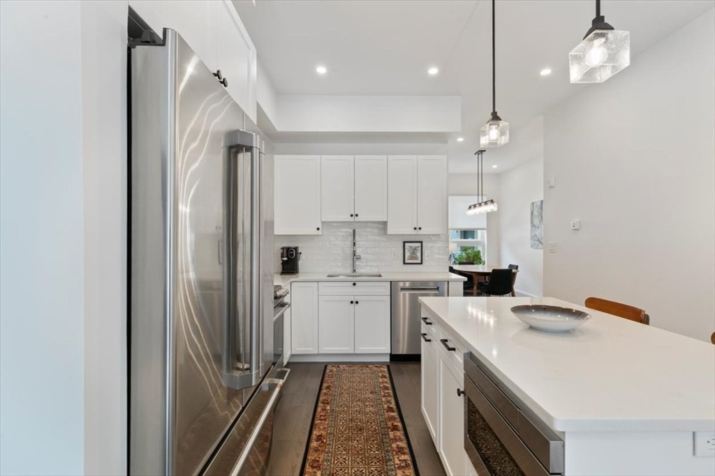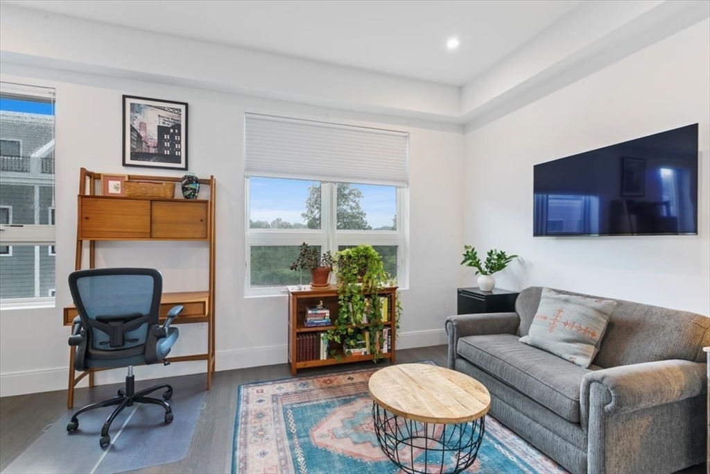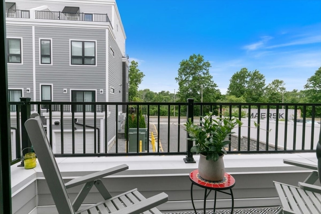 Beautiful Charles Park townhome in West Roxbury with many neighboring developments! Built in 2022, this stunning 3 bed, 2.5 bath home offers open concept living with high-end finishes. The center-island kitchen with quartz counters and Café & Bosch appliances flows into spacious living/dining areas and a private deck. The main bedroom suite feat. a luxurious, spa-like bath with a skylight, 9' ceiling, juliet balcony and a large, walkout deck for watching beautiful sunsets over the Charles River. A LEED Silver certifiable home with custom shades, Lutron dimmers and designer lighting. Other features include hardwood floors throughout, a fireplace, 3-zone HVAC, Anderson windows, central vacuum, attached, heated 2-car garage, and a second floor laundry area that accommodates a full size washer/dryer. Easy access to Millennium Park, commuter rail, Legacy Place, The Street at Chestnut Hill Mall, Longwood Medical Area, day care, the VFW Parkway, conservation land, Routes 1 & 128.