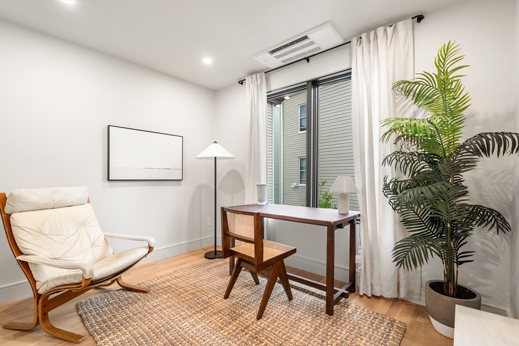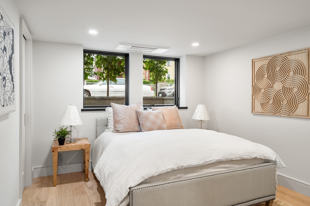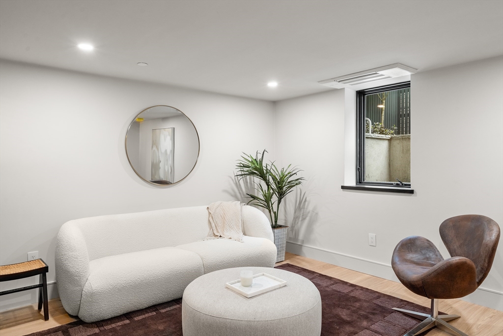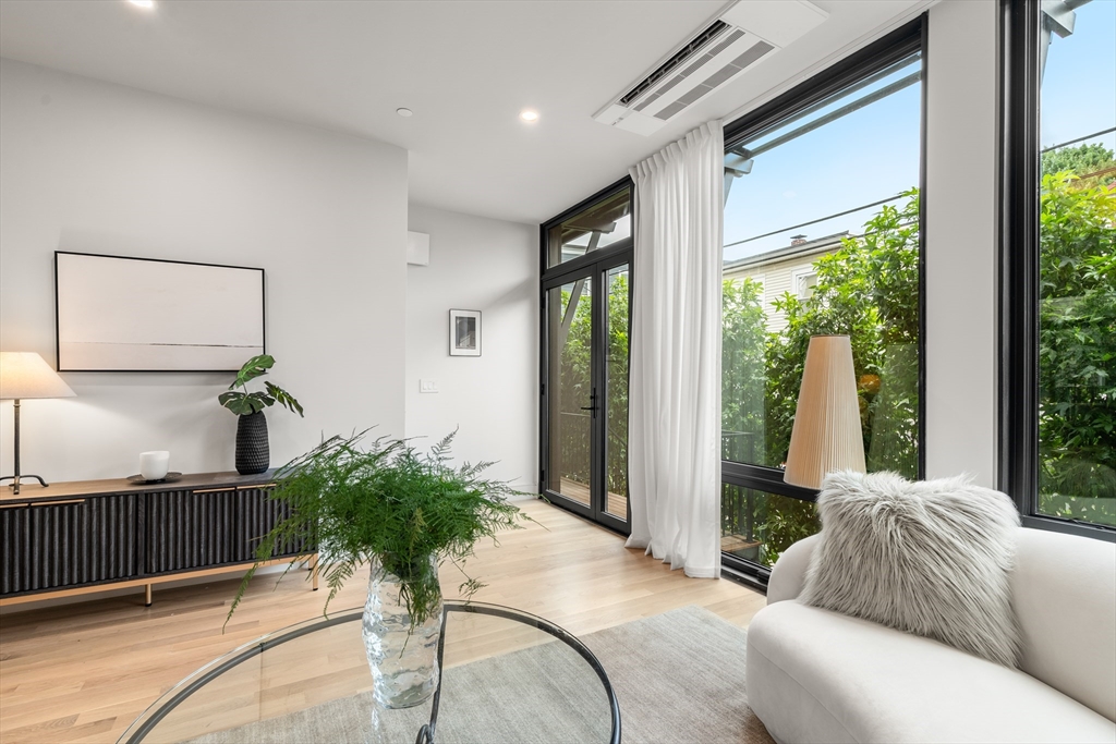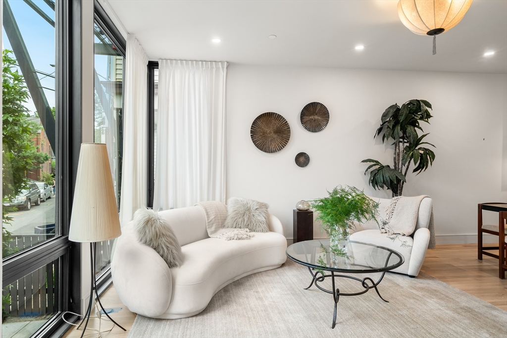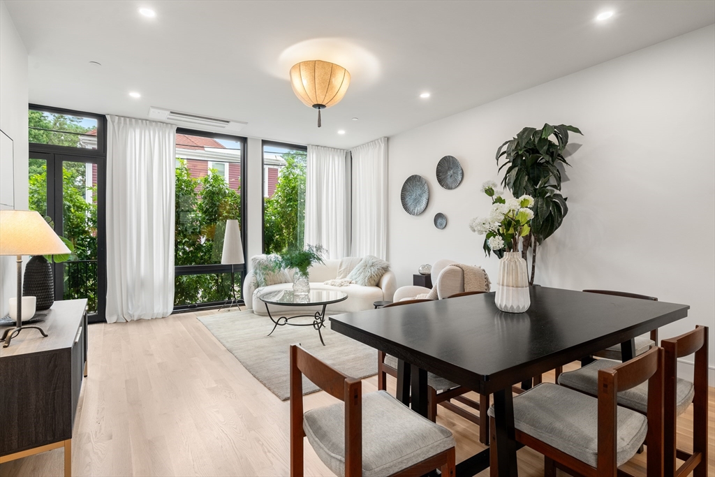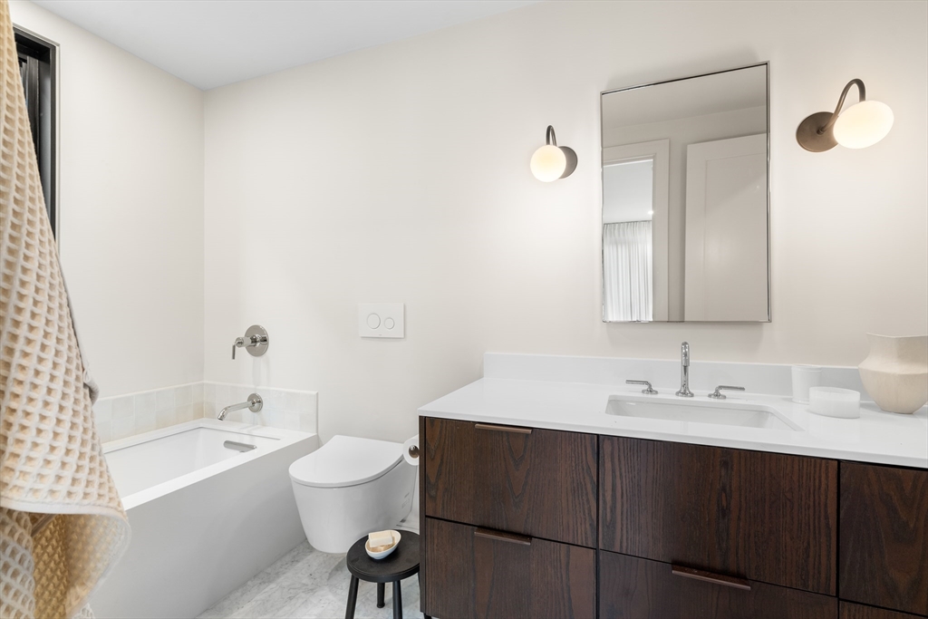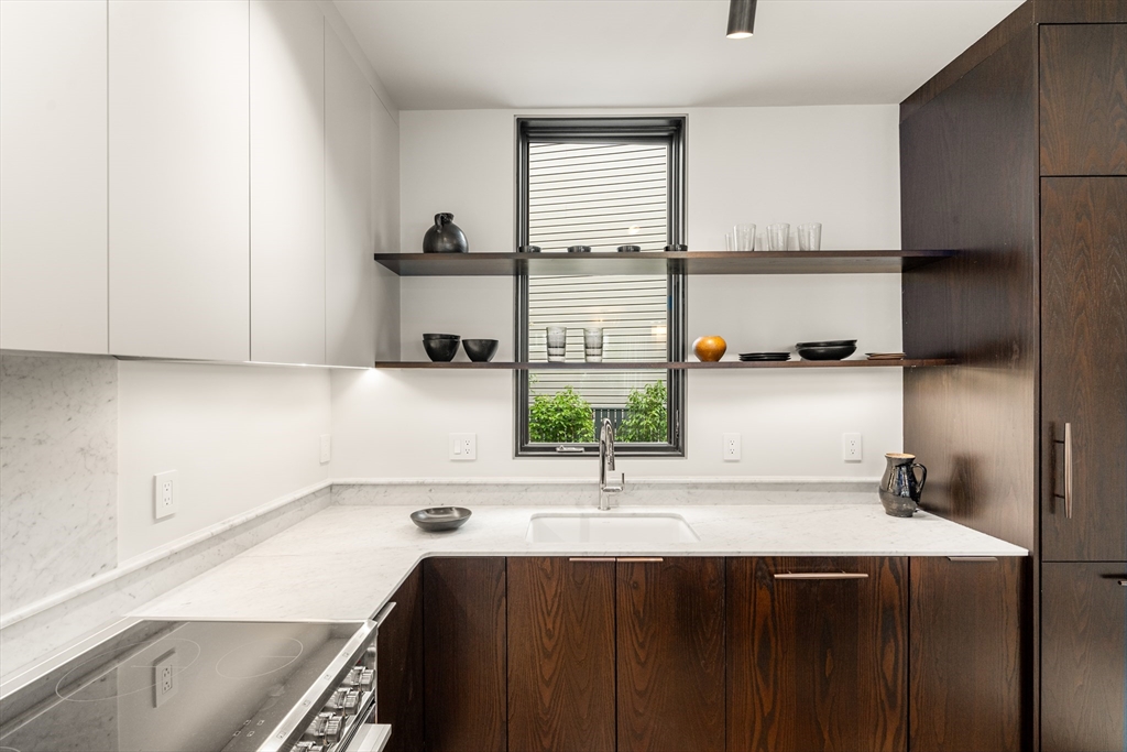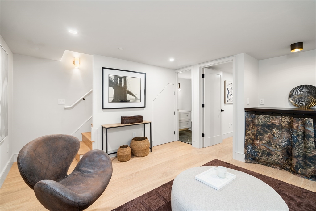Expertly renovated & thoughtfully reimagined by a respected local builder, this end-unit home offers 4 levels of bespoke design. The main floor features an open-concept living and dining area that flows into a stunning kitchen with custom cabinetry, an induction cooktop, center island, and sliding glass doors to the 21' private patio with a landscaped garden. The second level offers 2 bedrooms: one with dual walk-in closets & access to a stylish four-piece hall bath, and another with a double closet. At the top of a skylit stairway, the serene primary suite is complete with 2 closets, an en-suite bath, and an 18' private porch beyond sliding glass doors. The versatile lower level includes a family room with laundry, full bath, and an office/guest space with a walk-in closet. Other comforts include 4-zones of heat, central air conditioning, a fire sprinkler system, and association snow removal. Located just a few blocks to Kendall Square and sited near multiple parks & swimming pools.