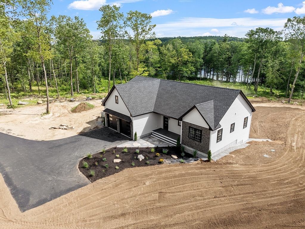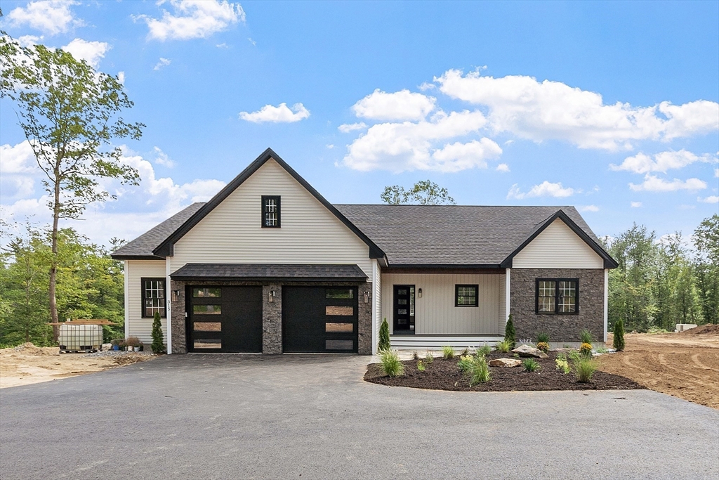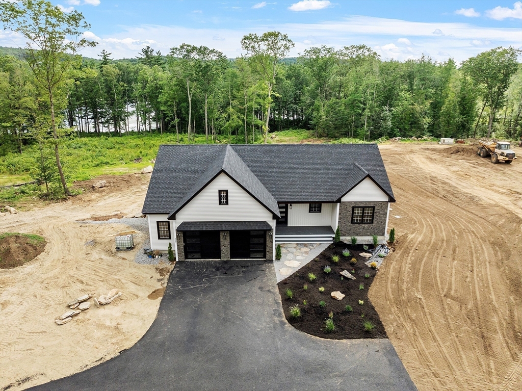 Brand NEW CONSTRUCTION! This 3-bedroom, 2-bath ranch is beautifully situated on over 3 acres, set back from the road for privacy and overlooking the reservoir—offering a peaceful, scenic setting to come home to. Designed with comfort and style in mind, the home features an inviting front porch, back deck, and a walkout basement with potential for future expansion. Inside, you’ll love the open floor plan with solid hardwood flooring, a gas fireplace in the living room, and a kitchen with granite countertops, upgraded cabinets, center island and a seamless flow into the dining area—perfect for entertaining. The main bedroom suite includes a tiled shower in the private bath, while two additional bedrooms and a second full bath complete the main level. First-floor laundry adds everyday convenience, and the attached 2-car garage makes coming and going a breeze. Don’t miss this opportunity to enjoy the comfort of new construction with modern finishes and a serene location!