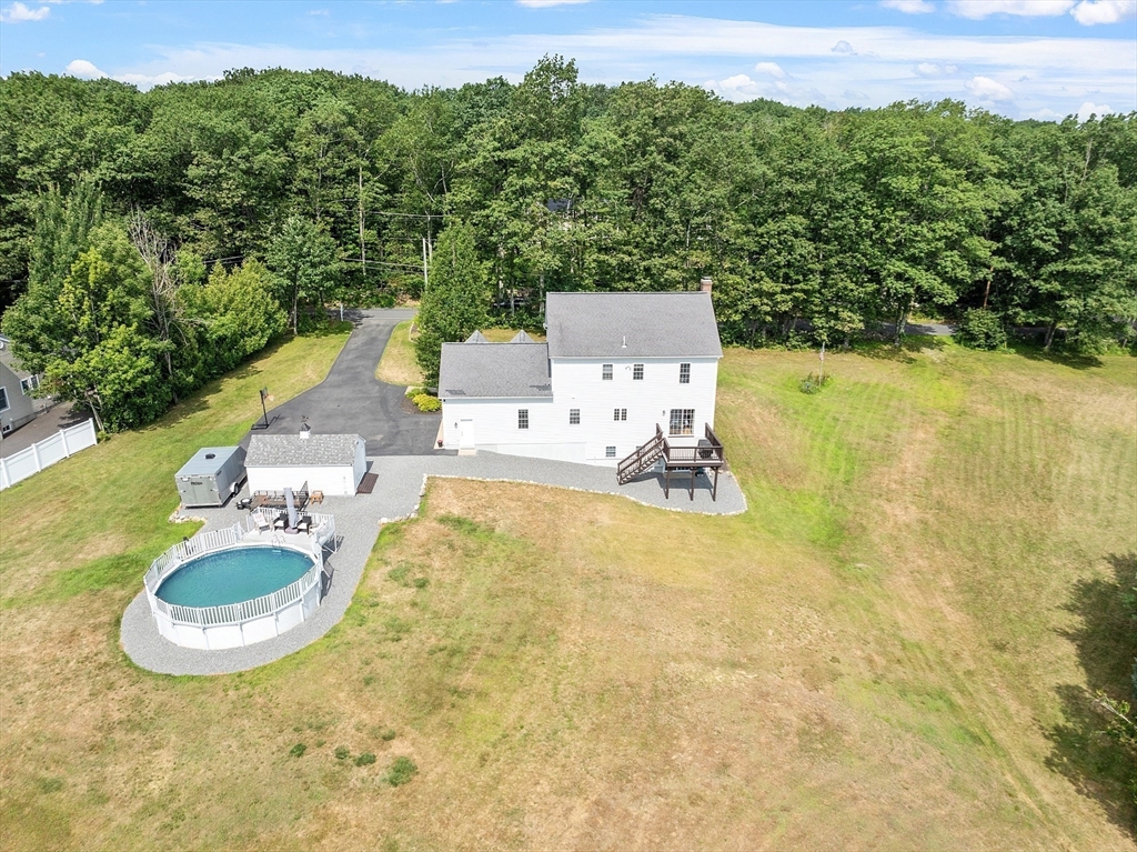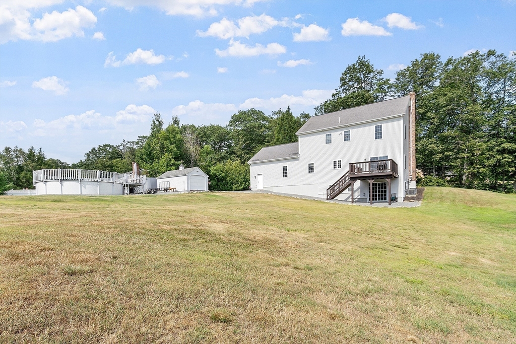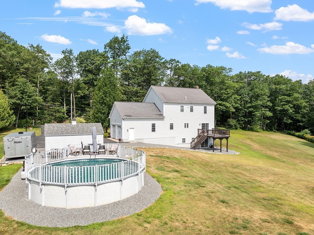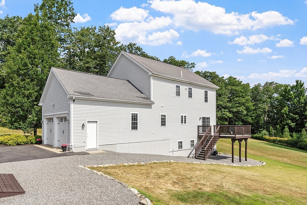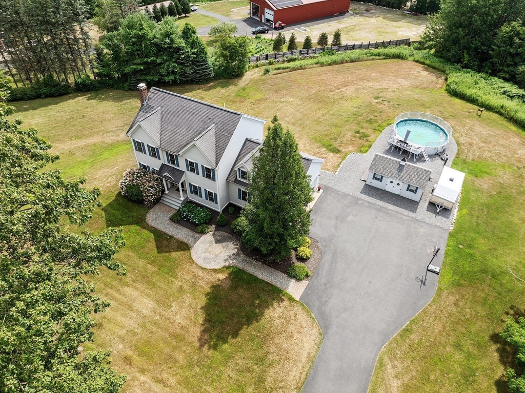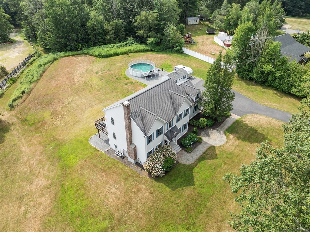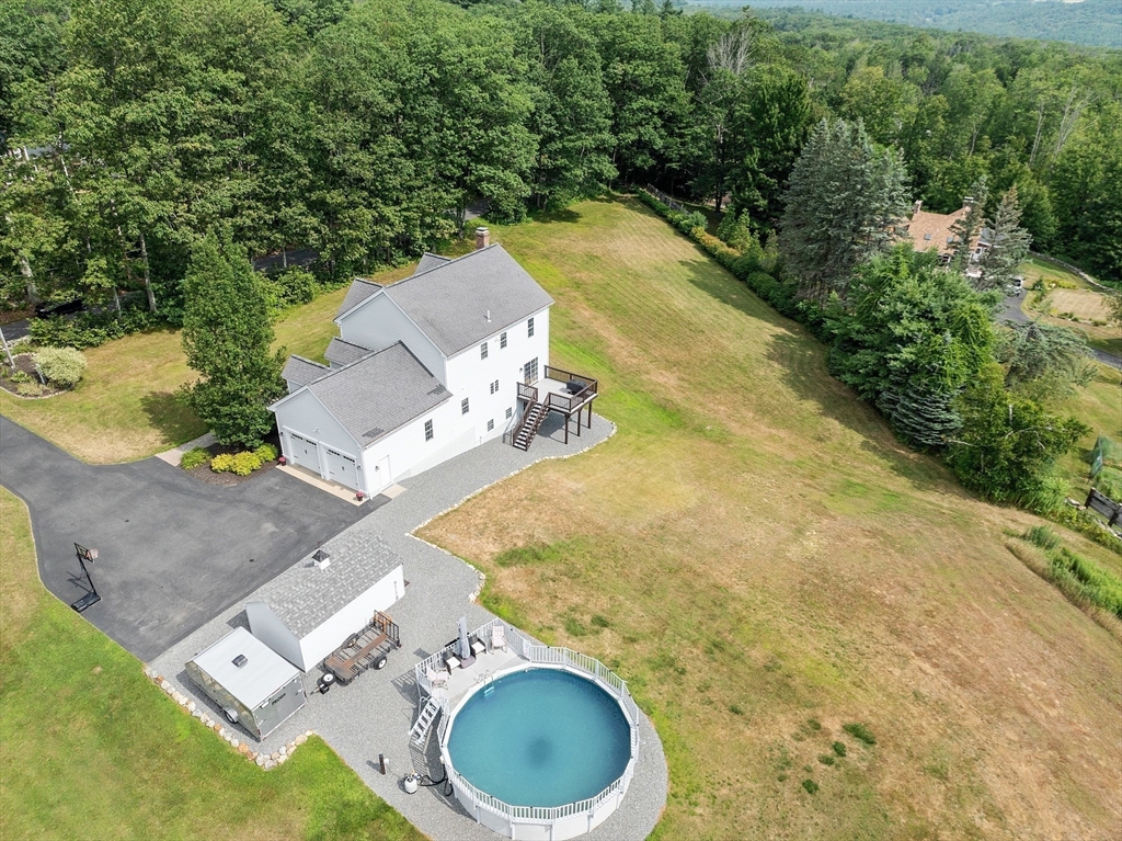 Move-in ready 3-bed, 2.5-bath colonial on nearly 3 acres with 350’ of road frontage. Walk into a welcoming foyer with a living room on the left, open dining/kitchen ahead, and large family room to the right. First floor also includes a spacious half bath, pantry, and laundry. Upstairs features 2 large bedrooms, shared full bath, and an expansive primary suite with vaulted ceilings, en-suite bath with jetted tub & shower, and walk-in closet. Bonus room offers flexible use. Hardwood floors throughout and tiled baths. Finished playroom, ample storage, and high-end water filtration system in basement. Outside: paver walkway, above-ground pool with deck, 12x20 shed with electricity, and second driveway for expansion. Quality 2x6 construction, 9’ ceilings, fireplace, stone counters, central air. Attic has Plywood floor for additional storage. Close to Routes 2, 2A, 140, MBTA rail, Mount Wachusett & Wachusett Brewing Co. and access to Crocker Pond.