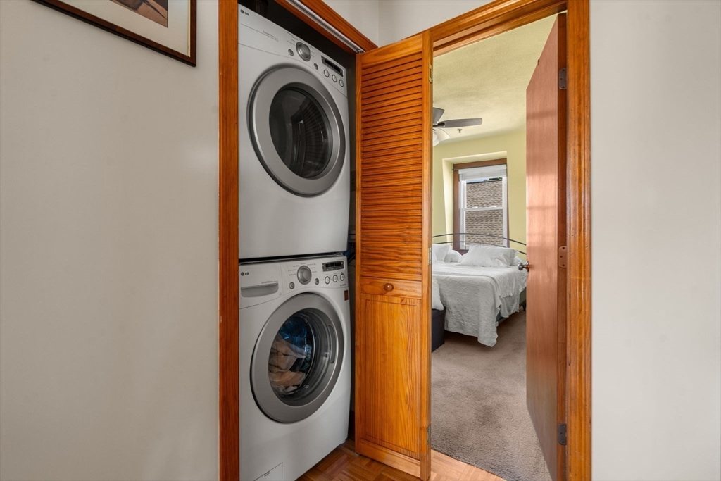 Welcome to your dream home in the heart of Somerville. Pride of ownership throughout. This updated two-bedroom, with bonus loft, one full bath condo, complete with central air conditioning, offers the perfect blend of modern convenience and classic charm. The updated kitchen features quartz counter tops, stainless steel appliances and high end finishes. Both bedrooms are generously sized providing comfort and tranquility, while the ceramic tiled full bath features modern fixtures. In unit washer and dryer, custom closets, as well as a lower level bike storage room and private storage. Automatic sprinkler system throughout the building and outdoor sprinkler system. STUNNING PANORAMIC BOSTON VIEWS FROM YOUR TWO PRIVATE ROOF DECKS.... Minutes to Davis Sq, Porter Sq, Green Line extension stop, RT93/ Assembly Row, local shops, Town Hall and downtown Boston. Easy access to Somerville's trendy bars, restaurants, cafes, and community/bike paths, you'll love the vibrant community.