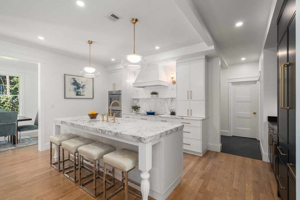 Experience the pinnacle of luxury living in this fully gut-renovated single-family home on prestigious Naples Road in the heart of Coolidge Corner, Brookline. Blending timeless architectural charm with modern sophistication, this residence showcases exquisite details including copper gutters, elegant turrets, and designer finishes throughout. A private elevator provides effortless access across three levels, complementing a thoughtfully designed floor plan featuring a chef’s kitchen with butler’s pantry, expansive living and dining areas, and seamless indoor-outdoor flow. The home offers a private deck and landscaped yard, perfect for entertaining or quiet retreat. With a one-car garage plus additional outdoor parking, convenience is built in. A rare opportunity to own a high-end, turn-key home that captures both Brookline’s historic character and today’s most desired amenities—all just steps from the vibrant shops, dining, and transit of Coolidge Corner.