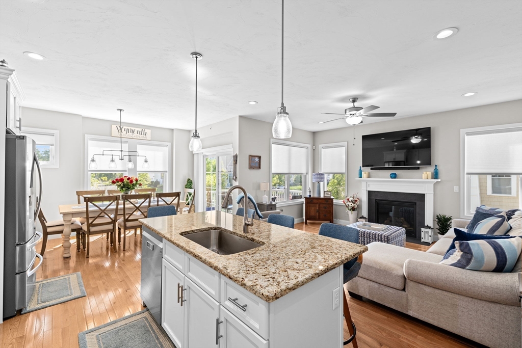 Discover unparalleled comfort in this end-unit Emerald Townhome by Whitman Homes, nestled on a unique spacious corner lot with spectacular Sunset Views! This elegantly designed two-level residence features an open upper floor with hardwood floors throughout. The modern kitchen boasts granite counters, stainless steel appliances, a custom tile backsplash, and a large island. Relax in the inviting living room with its cozy gas fireplace or dine in the space that leads to a covered rooftop deck oasis—ideal for morning coffee or an evening glass of wine. The main level also includes a half bath, a separate laundry room, and a bright primary suite with a large closet and ensuite full bath with tiled shower. The versatile lower level offers a family room, study with custom built ins, second bedroom, full bath, and direct access to a two-car garage with additional added storage. Enjoy the ease of turnkey living and the Redbrook lifestyle!