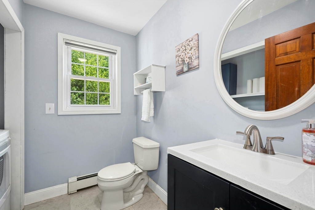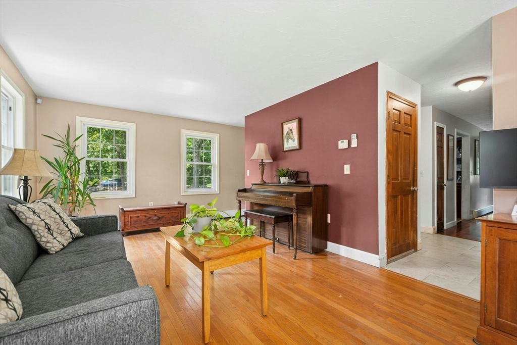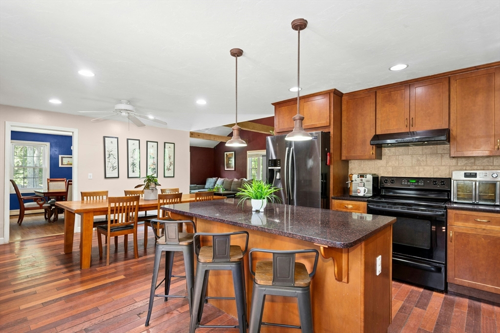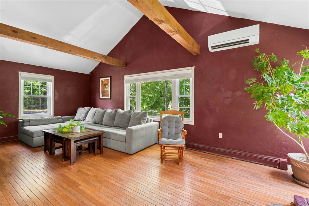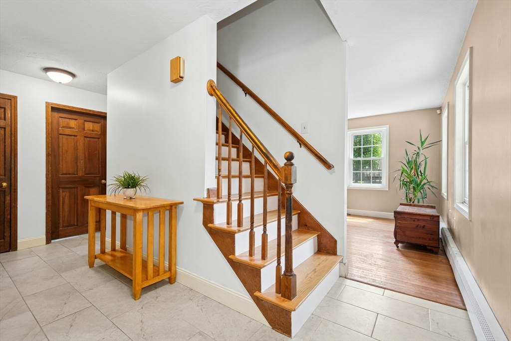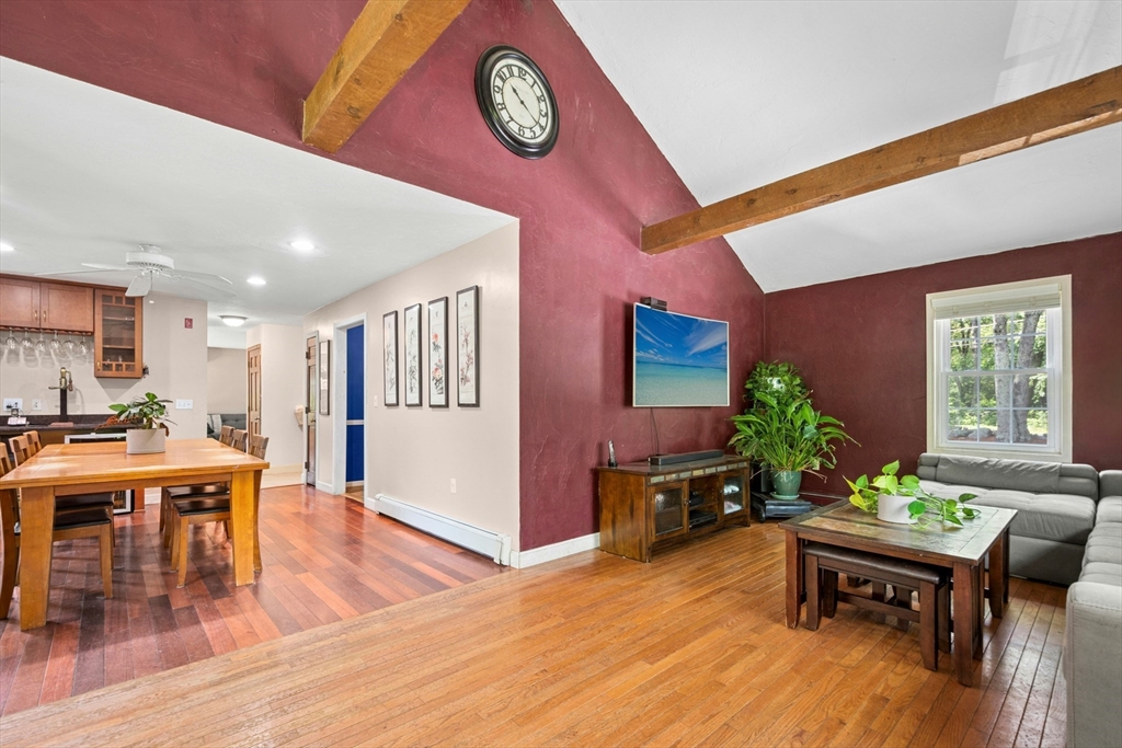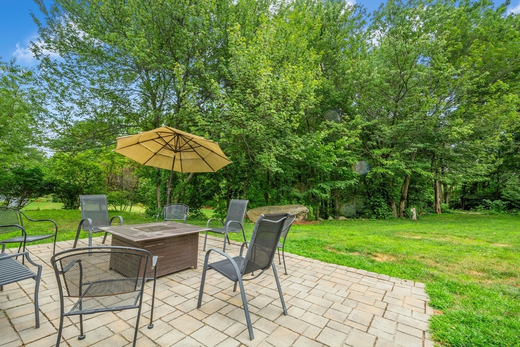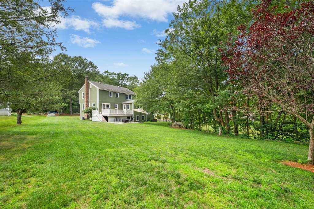 Tucked away from the road & w/ just under 3/4 acres, this inviting 4-bedroom colonial blends space, style & warmth in a prime location. The tiled foyer flows effortlessly into the dining & formal living room, which leads out to a level backyard w/ low-maintenance composite deck-ideal for entertaining or enjoying quiet mornings. At the heart of the home is a generous island kitchen that seamlessly connects to a welcoming fam rm featuring wood beams, cathedral ceiling, & cozy fireplace-the perfect spot to unwind or gather w/ loved ones. A half bath w/ laundry completes this level. Upstairs, the primary suite offers a full bath & closet. 3 add’l bedrooms & 2nd full bath provide comfortable accommodations for fam and/or guests. The finished lower level adds impressive versatility w/ media room, game area & dedicated workout space, plus a bonus room ideal for a home office or extra storage. Minutes from commuter routes, local dining, shopping & scenic bike trails!