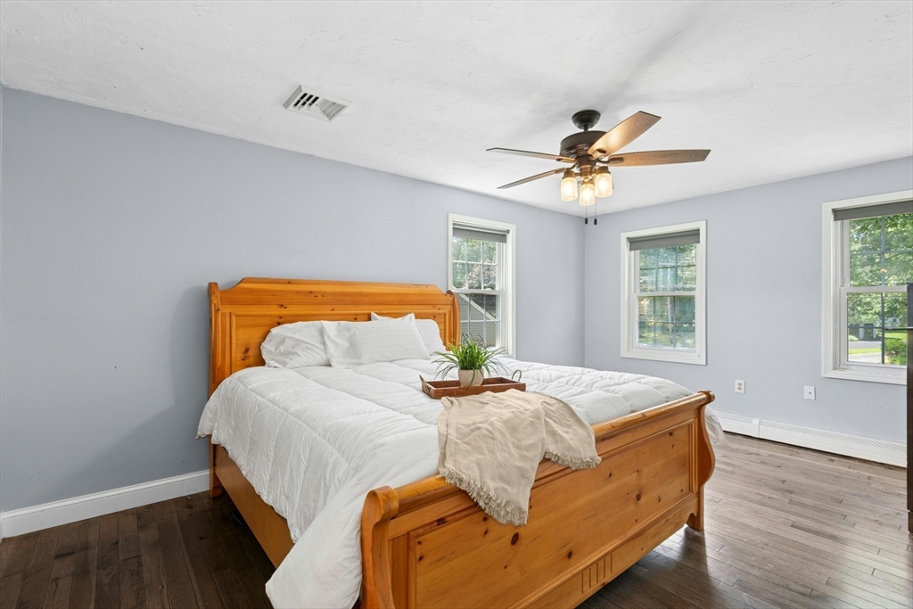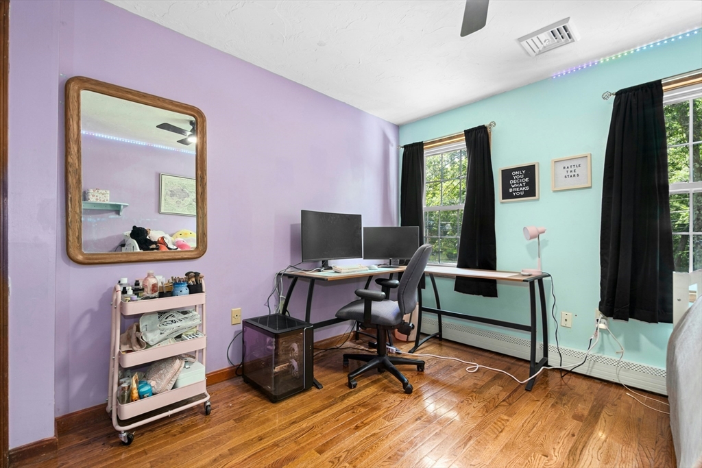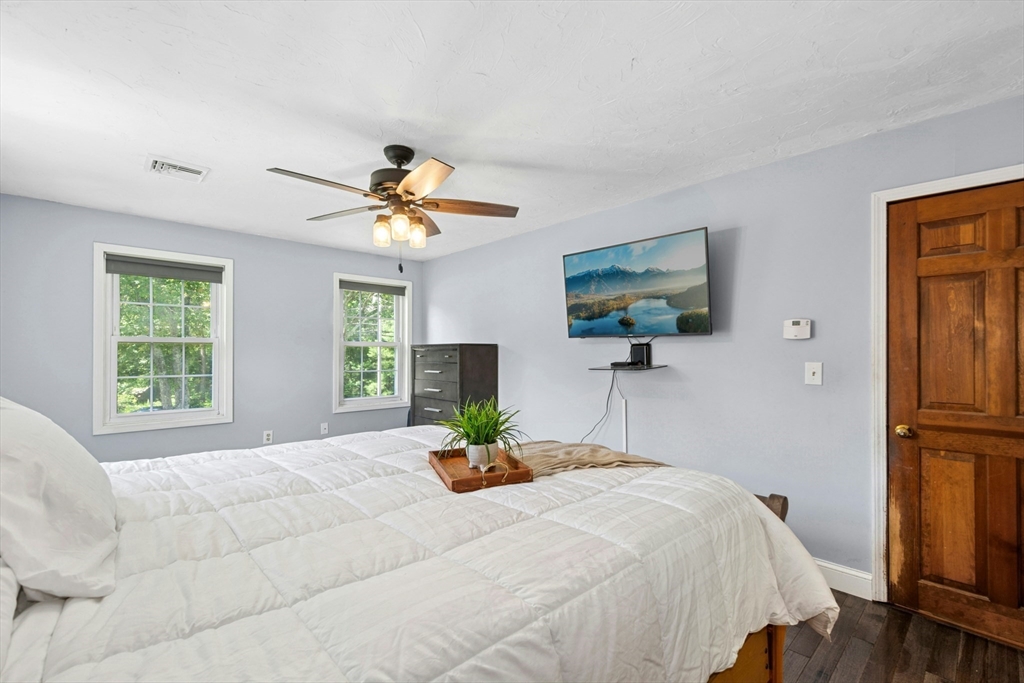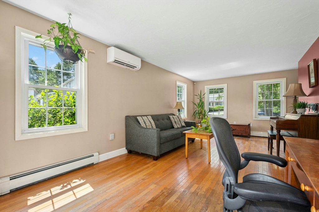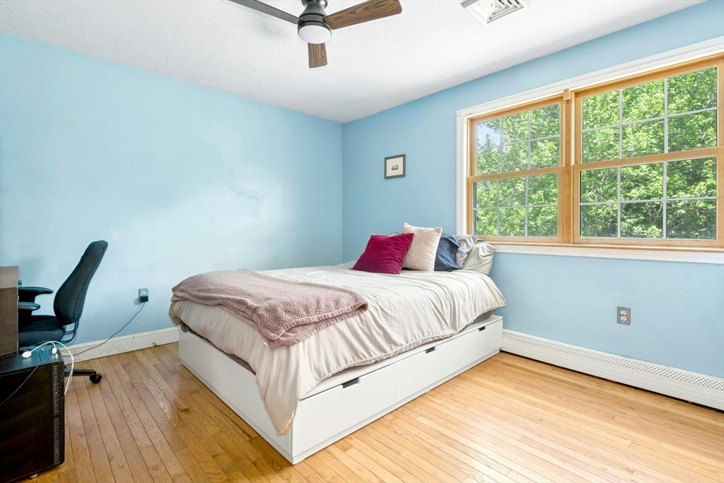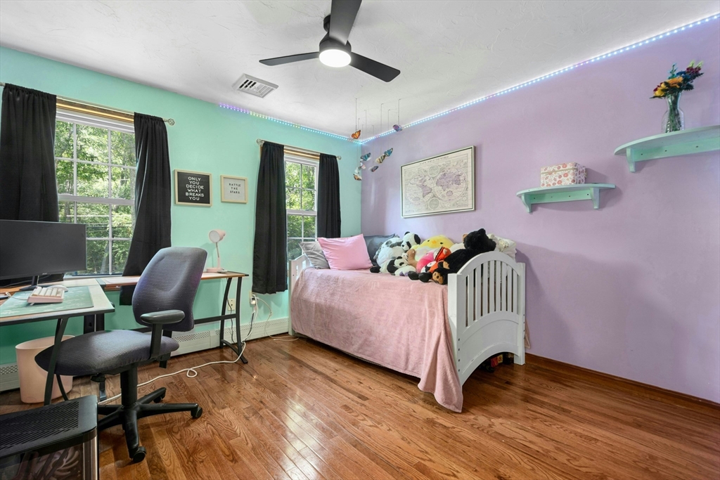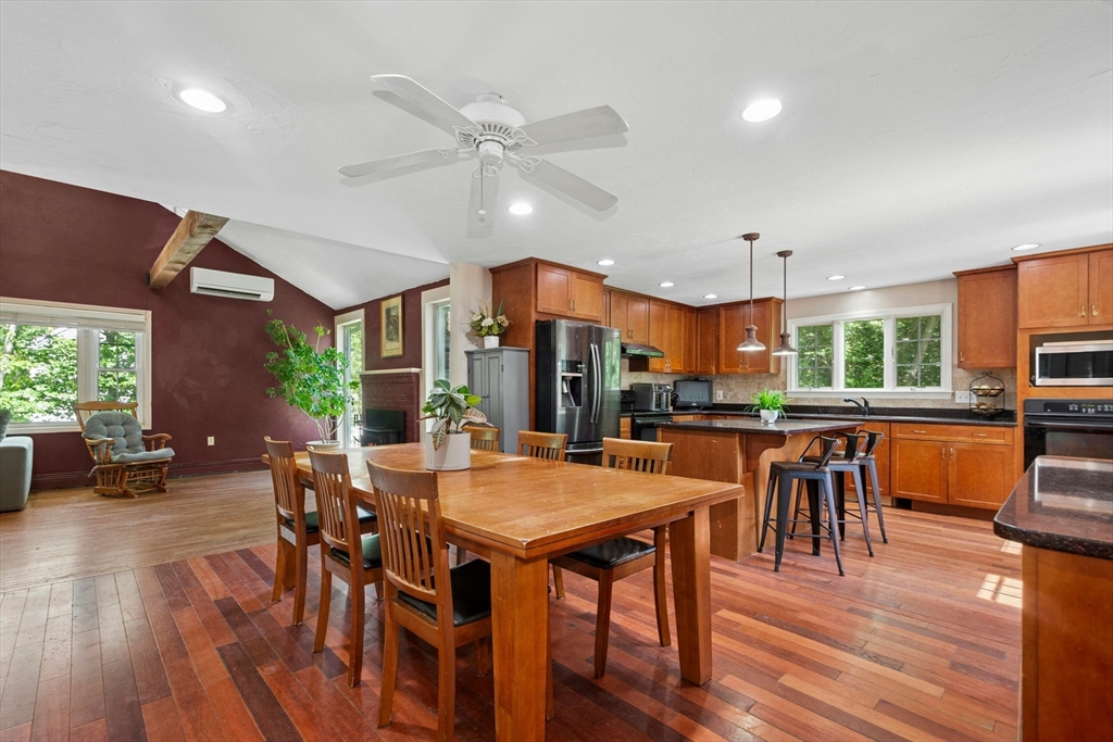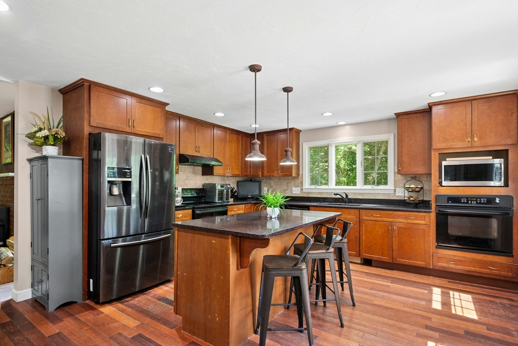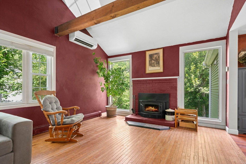 Tucked away from the road & w/ just under 3/4 acres, this inviting 4-bedroom colonial blends space, style & warmth in a prime location. The tiled foyer flows effortlessly into the dining & formal living room, which leads out to a level backyard w/ low-maintenance composite deck-ideal for entertaining or enjoying quiet mornings. At the heart of the home is a generous island kitchen that seamlessly connects to a welcoming fam rm featuring wood beams, cathedral ceiling, & cozy fireplace-the perfect spot to unwind or gather w/ loved ones. A half bath w/ laundry completes this level. Upstairs, the primary suite offers a full bath & closet. 3 add’l bedrooms & 2nd full bath provide comfortable accommodations for fam and/or guests. The finished lower level adds impressive versatility w/ media room, game area & dedicated workout space, plus a bonus room ideal for a home office or extra storage. Minutes from commuter routes, local dining, shopping & scenic bike trails!