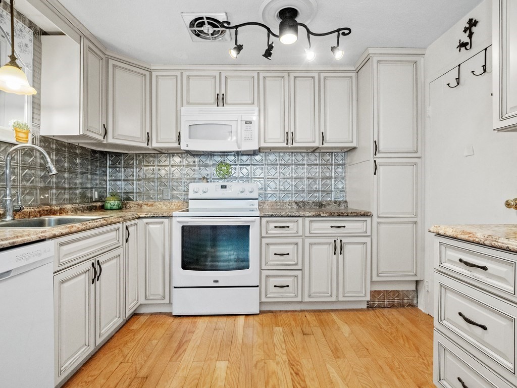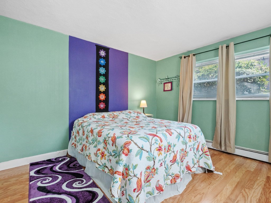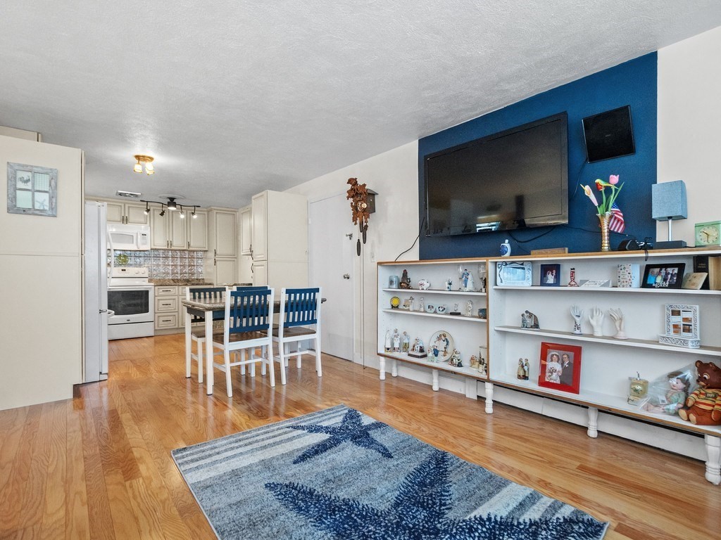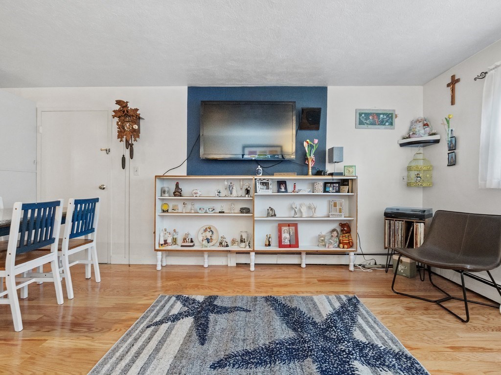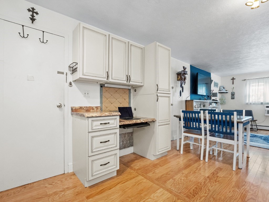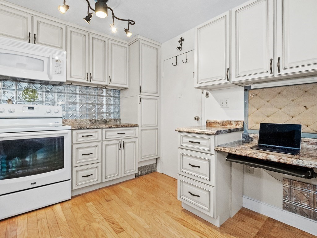 Highly desirable Garden Grove Condominiums located in the heart of Warrendale! This beautifully maintained first-floor unit offers a unique private entrance and a thoughtfully updated layout. The 2017 custom kitchen features stylish cabinetry and a dining area that opens to a bright, oversized living room with built-in shelving and a mounted TV. Two spacious queen-sized bedrooms offer ample closet space. Additional features include full-size newer windows, gleaming hardwood floors throughout, a tiled full bath, and freshly painted interior. Enjoy the convenience of private storage, on-site coin-op laundry, and professionally managed grounds with a seasonal in-ground pool. Low condo fee includes heat and hot water. New roof installed in 2022. Ideally located just steps to public transportation, shops, restaurants, and all that Waltham has to offer. A great opportunity for first-time buyers, downsizers, or investors!