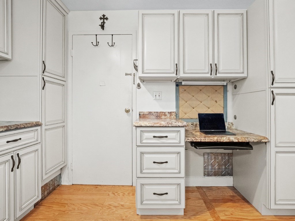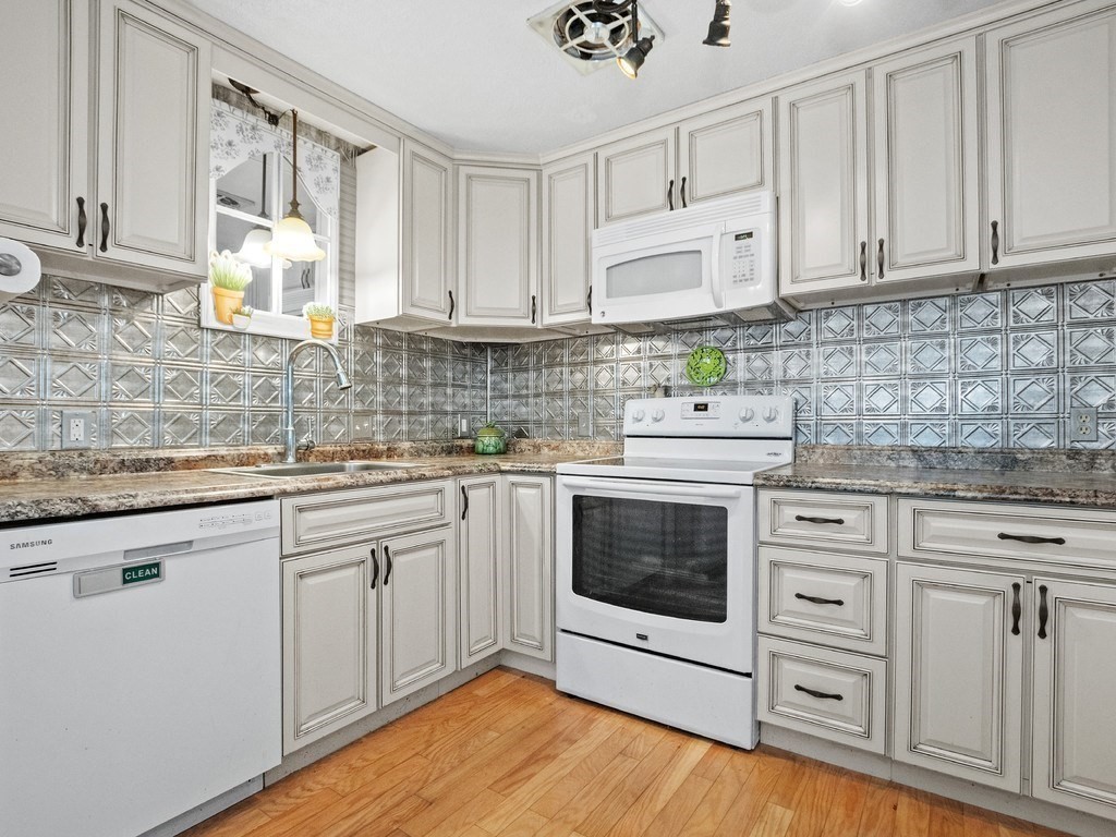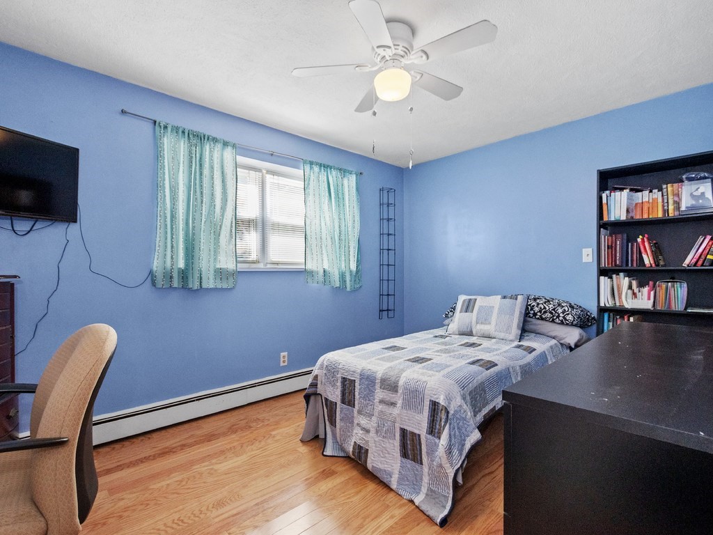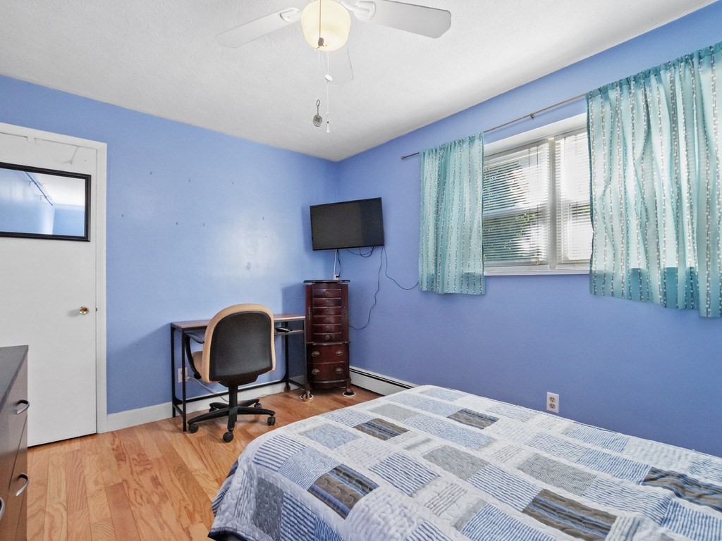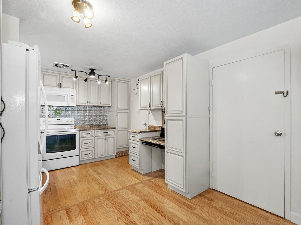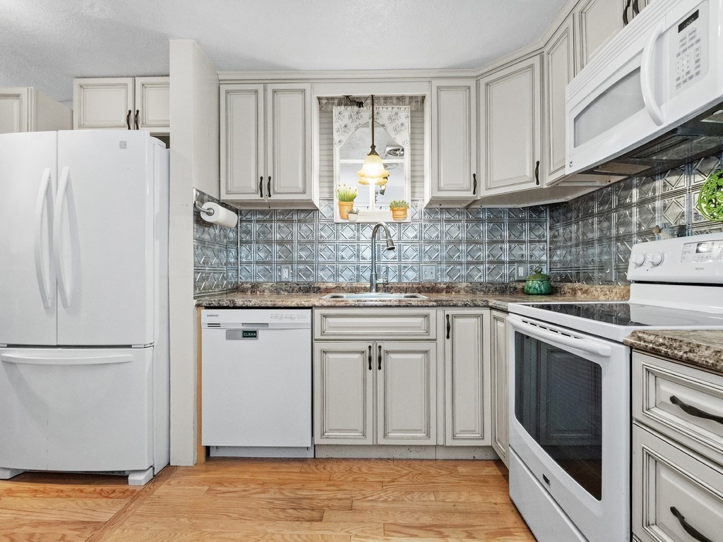 Highly desirable Garden Grove Condominiums located in the heart of Warrendale! This beautifully maintained first-floor unit offers a unique private entrance and a thoughtfully updated layout. The 2017 custom kitchen features stylish cabinetry and a dining area that opens to a bright, oversized living room with built-in shelving and a mounted TV. Two spacious queen-sized bedrooms offer ample closet space. Additional features include full-size newer windows, gleaming hardwood floors throughout, a tiled full bath, and freshly painted interior. Enjoy the convenience of private storage, on-site coin-op laundry, and professionally managed grounds with a seasonal in-ground pool. Low condo fee includes heat and hot water. New roof installed in 2022. Ideally located just steps to public transportation, shops, restaurants, and all that Waltham has to offer. A great opportunity for first-time buyers, downsizers, or investors!