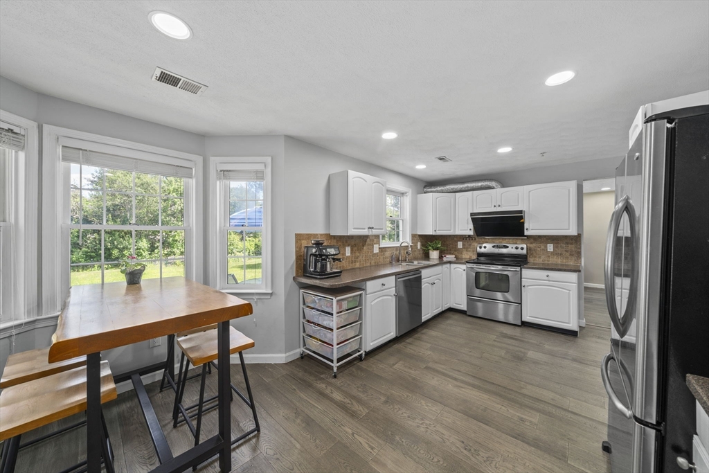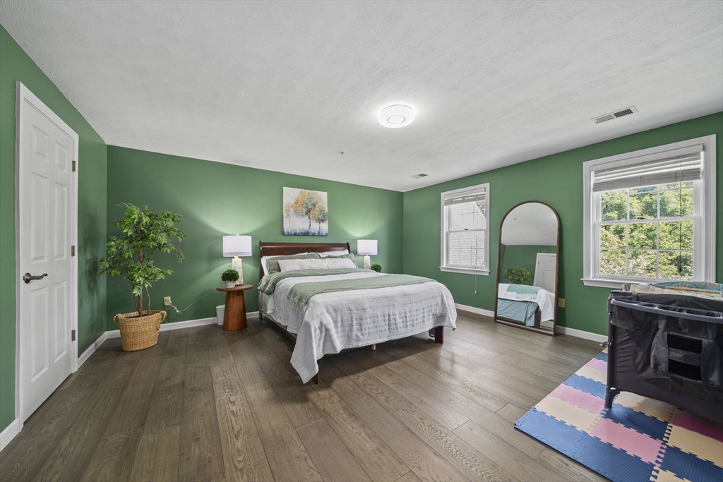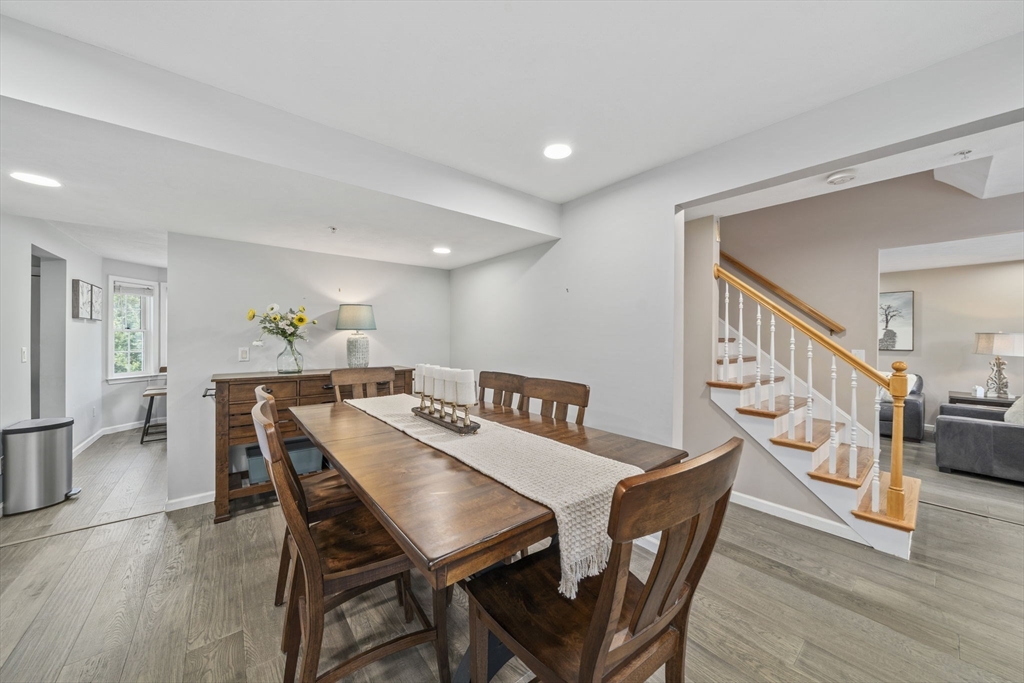 Beautifully maintained Colonial in an idyllic community! Perfect entertaining space with a great floor plan and newly upgraded hardwood flooring. The large, airy front to back living room is filled with light and has a slider to the beautiful backyard set with mature trees and with a serene pond view. The formal dining room leads through to an upgraded kitchen offering stainless steel appliances and breakfast nook. Upstairs features a main suite and 4 further bedrooms, sharing a full bath, as well as a laundry area. Need more room? The fully insulated walk up attic offers the potential for more finished space alongside extra storage. Top up your tan by one of the two in ground pools or use other association amenities such as the tennis/pickleball courts or clubhouse. A double garage and double wide drive ensures plenty of parking and there is extra guest parking should you need it. The home is in a superb location being close to downtown Walpole, the commuter rail and highway access!