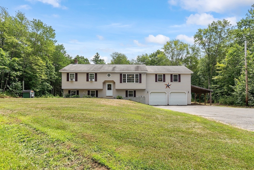 This 3 bedroom split-level home offers the perfect blend of privacy and functionality. Set on almost 8 acres, the property features a sprawling yard. Inside, the kitchen is equipped with new stainless steel appliances and a cozy dine-in seating area. The spacious family room showcases wood flooring, while a formal dining area offers flexibility to serve as an additional living space. Step outside to a large deck that overlooks an above-ground pool - perfect for summer relaxation and entertaining. The basement includes great potential for future finishing, with a half bath already installed, offering the opportunity to expand your living space to suit your needs. Additional highlights include a heated two-car garage plus additional covered parking as well as a generator hookup. This property combines comfort, space, and potential all in a serene, private setting. A rare find with room to grow both inside and out!