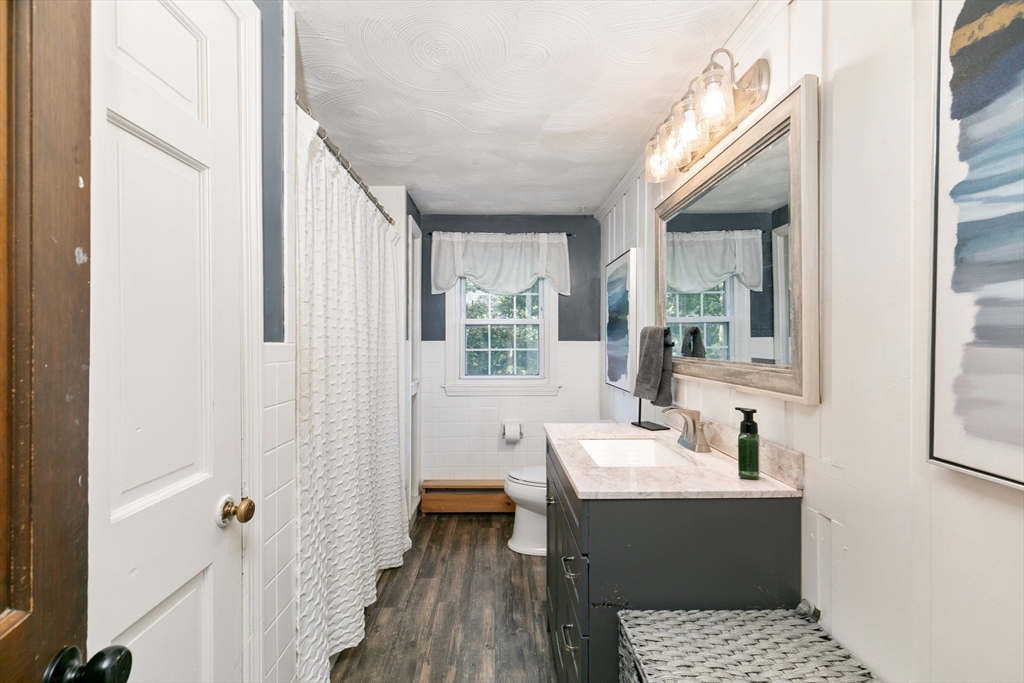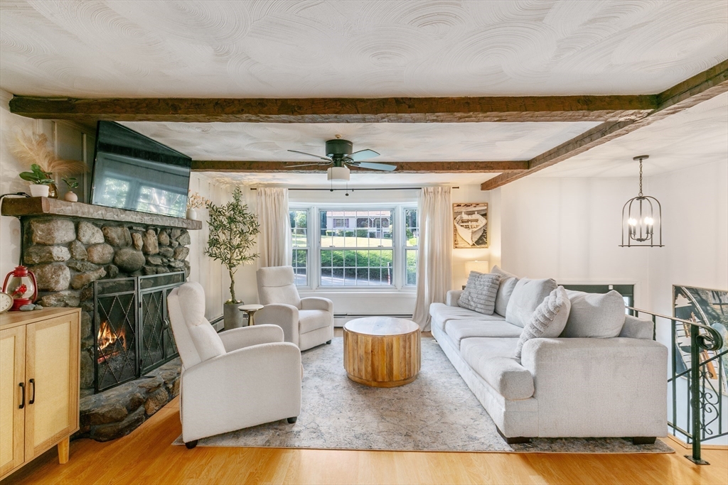 Welcome to this well-maintained 3-bedroom, 1.5-bath single-family home located in a desirable neighborhood of Methuen. Offering a perfect blend of comfort and functionality, this home features a spacious living room with a wood burning fireplace, a bright eat-in kitchen with ample cabinet space, and a wonderful 3 season porch. Upstairs, you’ll find three generously sized bedrooms with a full bathroom with a tub/shower combo. Additional highlights include a partially finished basement for extra storage, a home office, or an additional family room, a private backyard ideal for entertaining or gardening, and a driveway that accommodates multiple vehicles. Located minutes from The Loop, local schools, and I-495/I-93 for easy commuting, this home is a fantastic opportunity for first-time buyers or those looking to downsize without sacrificing space. First showings at OPEN HOUSES 8/2 and 8/3 12-2pm.