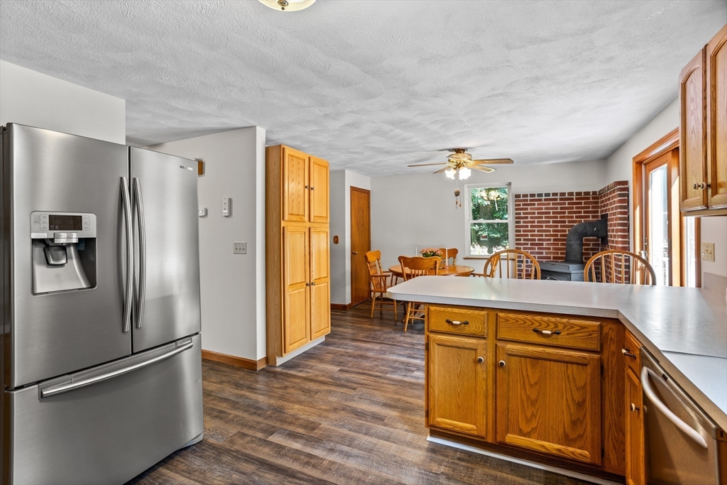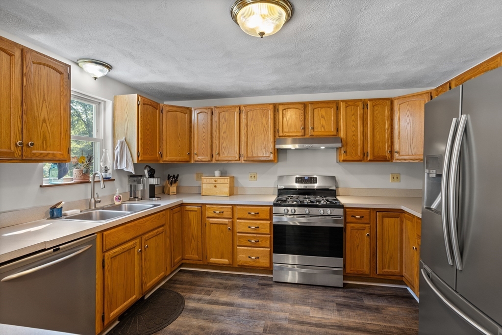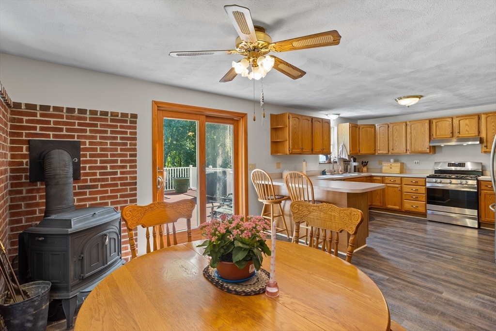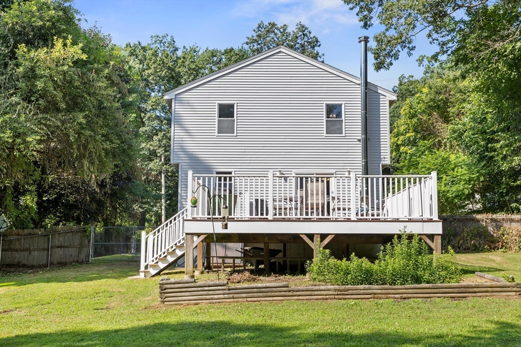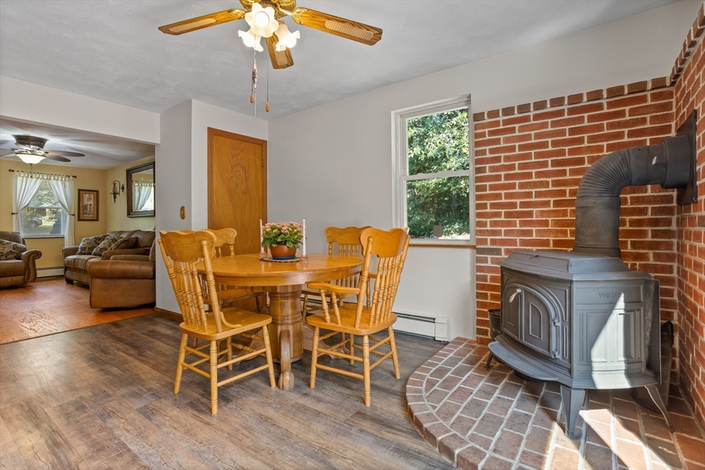 Charming 3-bed, 2.5-bath home with great space inside & out! Features include a large living room, dining room, and updated kitchen with 2024 laminate flooring, stainless steel appliances (all to stay), gas stove, dishwasher, and working wood stove. Primary bedroom has walk-in closet and private ¾ bath. Main bath includes tile flooring, tub, shower, and laundry. Half bath has new vanity, toilet, and flooring. Bonus first floor room with hardwood floors and mudroom entry add functionality. Backyard is fenced-in with an upgraded deck. 8+ driveway parking. Roof is about 10 years young, attic well insulated, water heater is approximately 2 yrs, new sump pump (2025), 200-amp electrical, and efficient original heating system (natural gas, forced hot water baseboard). Bulkhead and interior access to basement. A well-cared-for home with space, updates, and character!