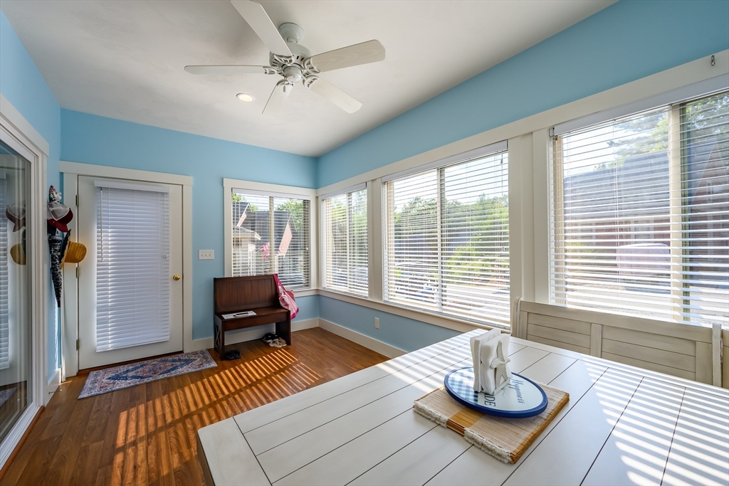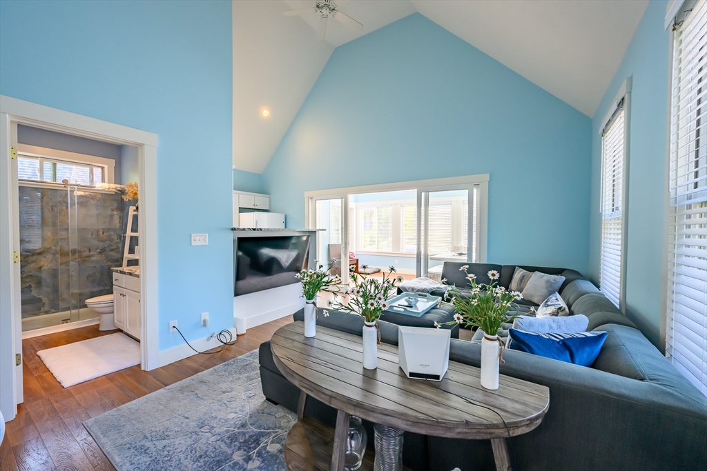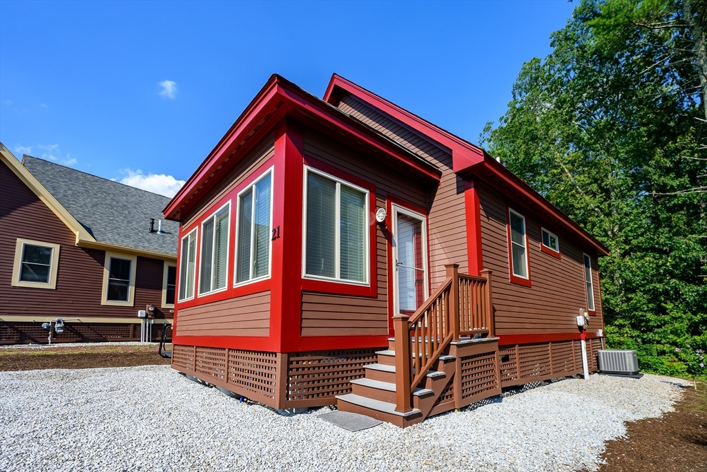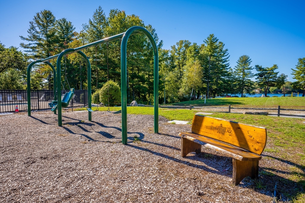 Welcome to your Perfect Summer Home! Formerly Wyman's Beach, this property has been transformed into Summer Village Westford; a gated seasonal condo community of single-family cottages nestled around Long Sought for Pond. Ideally located about an hour from Boston & minutes to NH this perfect lakeside retreat is truly the hidden gem you've been looking for. This custom Balsam Style cottage boasts an expansive entertainment wall, great storage & coveted extra 1/2 bath! You'll love the updated granite kitchen w/ extended counter space, updated baths also w/ granite & the beautifully tiled shower. Laminate flooring throughout the living space & cozy carpets in the bedrooms. Other features include vaulted ceilings, wood blinds, recessed lighting, in-unit laundry, central heat/ac, large storage loft & attached shed. Fresh landscape makes the cottage truly move in ready. Conveys fully furnished w/ a golf cart. Amenities galore: beach, boats, fishing, sports, pools, gym & activities for all.