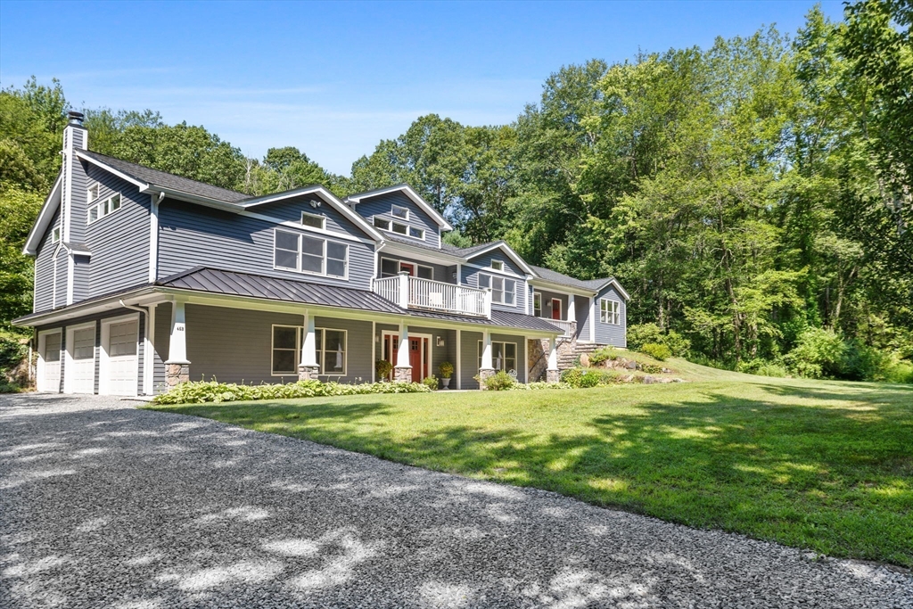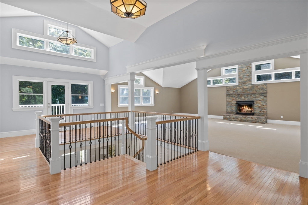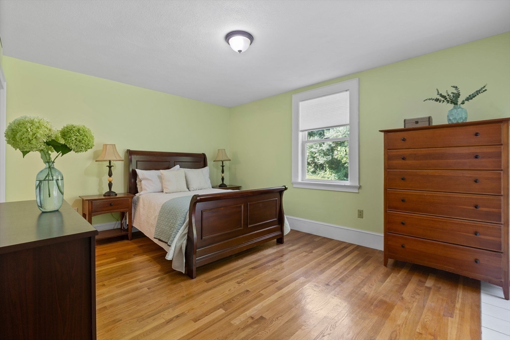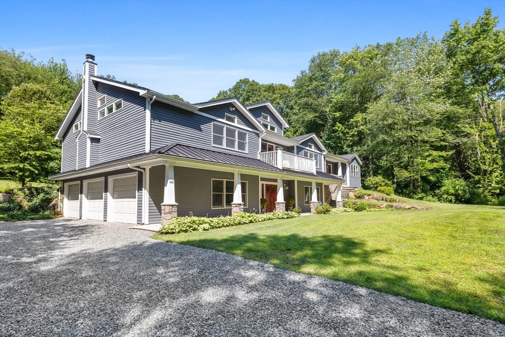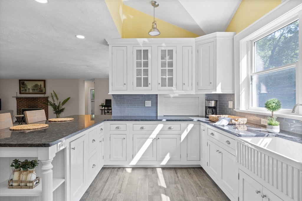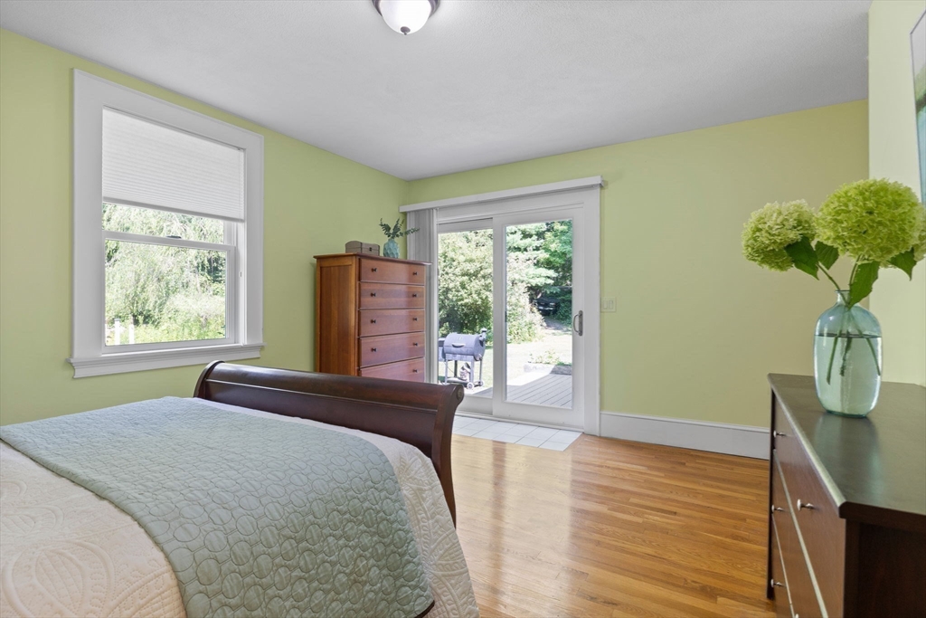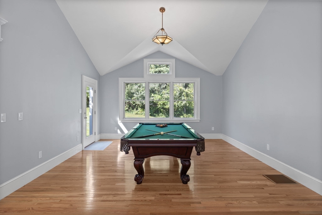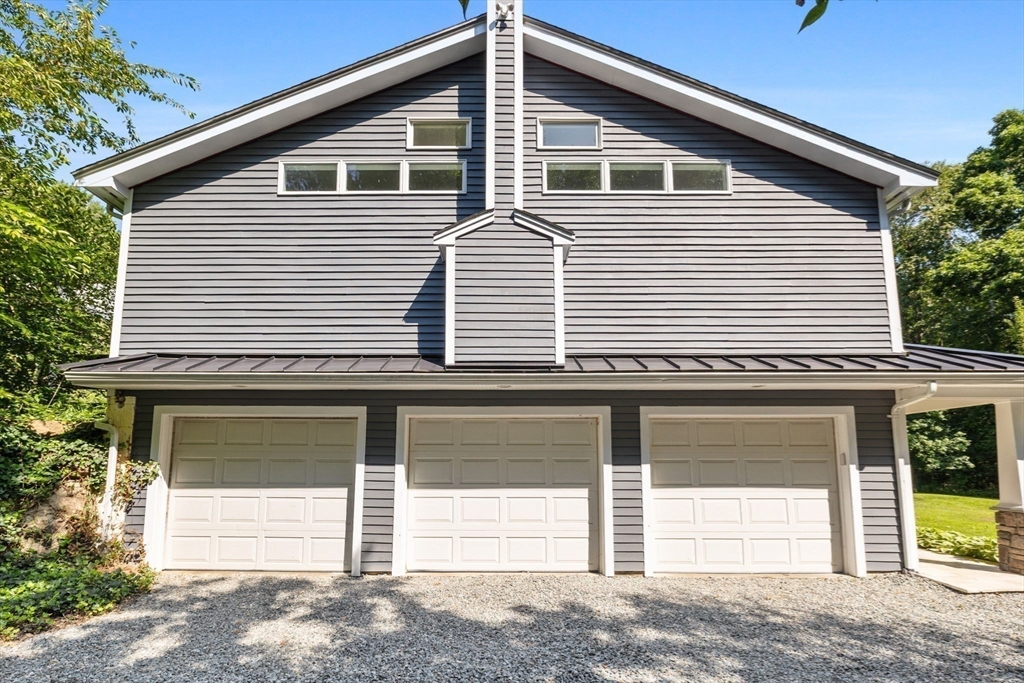 Nestled in the bucolic woods of Boxford, this beautifully updated 4 bed, 3 bath ranch is set on over 9 acres of serene privacy and natural beauty. Thoughtful craftsmanship is evident throughout, offering timeless charm and modern convenience. Live comfortably on the main level with the option to expand into the finished lower level-perfect for guests, recreation, or a home office. The oversized living room is ideal for entertaining and features a striking floor-to-ceiling stone fireplace w/brand-new carpeting. The updated kitchen boasts granite counters, all SS appliances, including brand new stove and refrigerator, a charming farmer's sink, soft lighting above the cabinets, and a spacious walk-in pantry. The inviting family room with a wood-burning stove offers a more intimate gathering space. The primary suite features HDWD flrs and an updated en-suite bath, while 2 more bedrms round out the 1st floor with HDWD flooring. Enjoy the backyd oasis with ovrszd firepit & patio w/pergola!